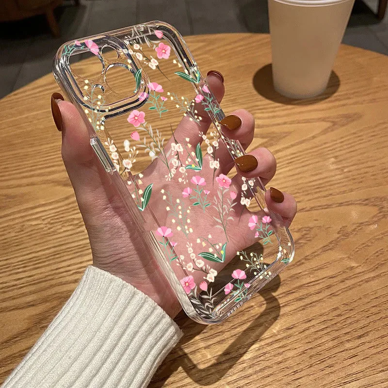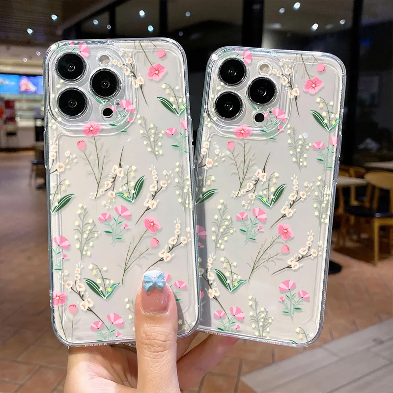 Comprar Funda transparente de silicona TPU suave para iPhone, carcasa con flores para modelos 13, 11, 14, 15 Pro Max, 12, XR, X, XS, 7, 8 Plus, SE 2020, 15 Pro Max, 13Pro Max