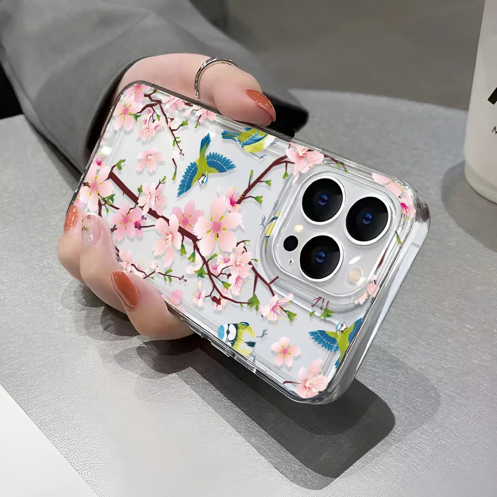 Funda transparente Simple con diseño de pájaro y flor fina rosa para iPhone 16 15 14 11 13 12 Pro Max Mini 15 14 16 Plus, funda a prueba de golpes para iPhone 16e