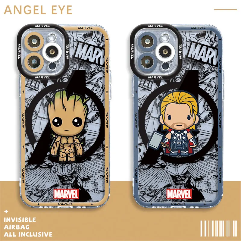 Comprar Funda transparente suave para iPhone 14 Plus X 12 Mini 13 Pro Max SE 11 Pro XR XS 12Pro, funda con dibujos animados de Marvel Groot Thor
