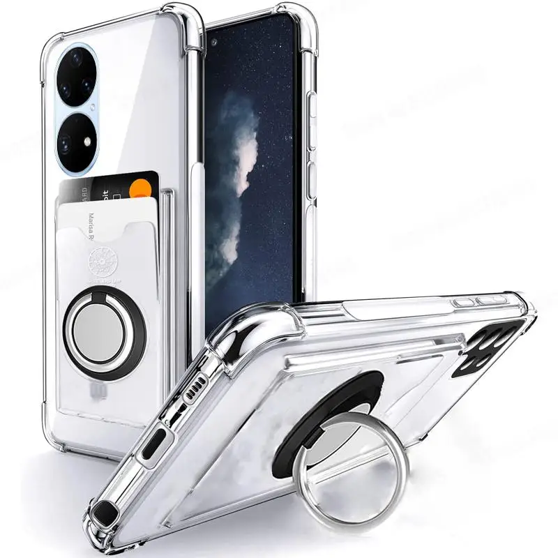 Funda suave transparente a prueba de golpes para Huawei P50 P40 P30 Pro, funda con ranura para tarjeta para Mate 40 30 Pro, funda con soporte de anillo magnético