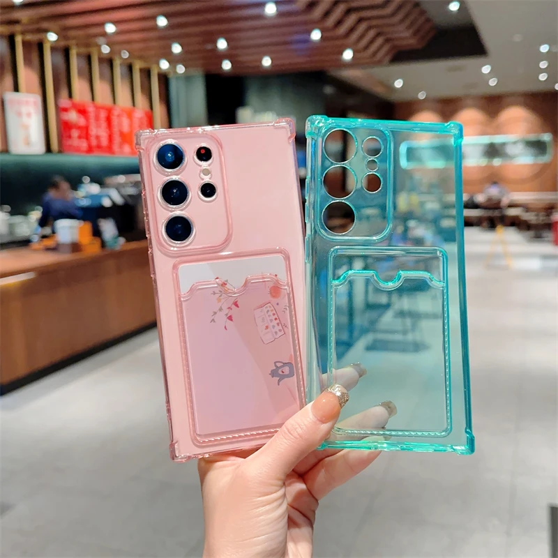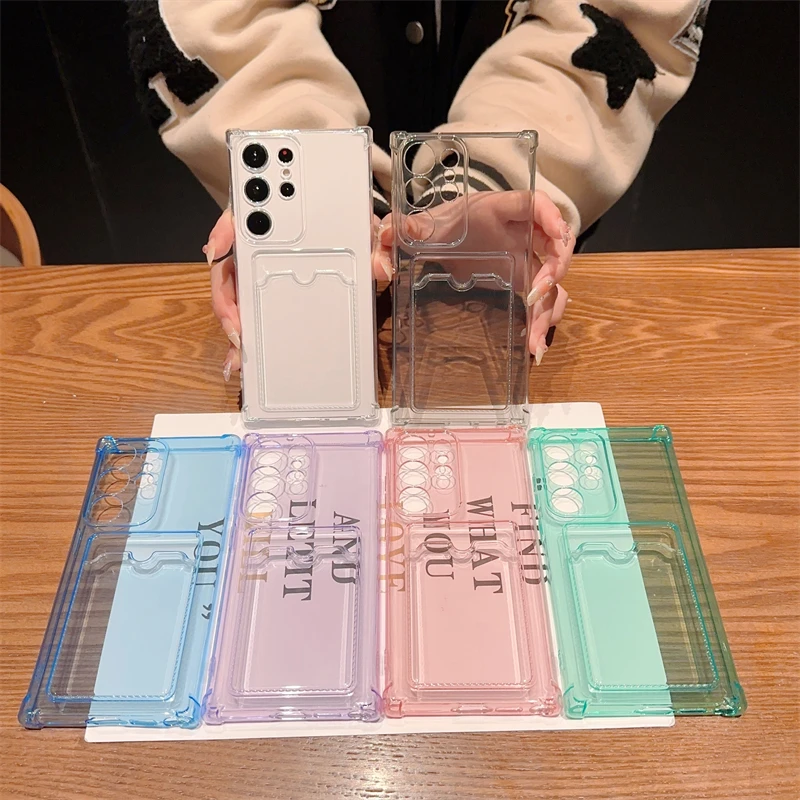 Comprar Funda transparente con tarjetero para Samsung Galaxy S25 Ultra, funda trasera Ultra para Samsung Galaxy S21 S22 S23 FE S24 S25 Plus