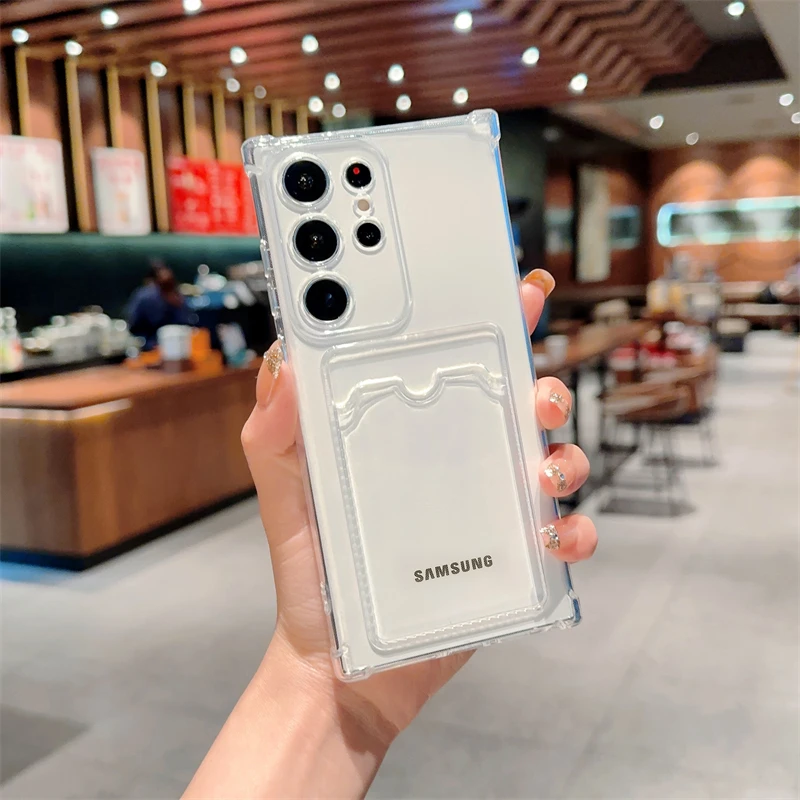 Comprar Funda transparente con tarjetero para Samsung Galaxy S25 Ultra, funda trasera Ultra para Samsung Galaxy S21 S22 S23 FE S24 S25 Plus