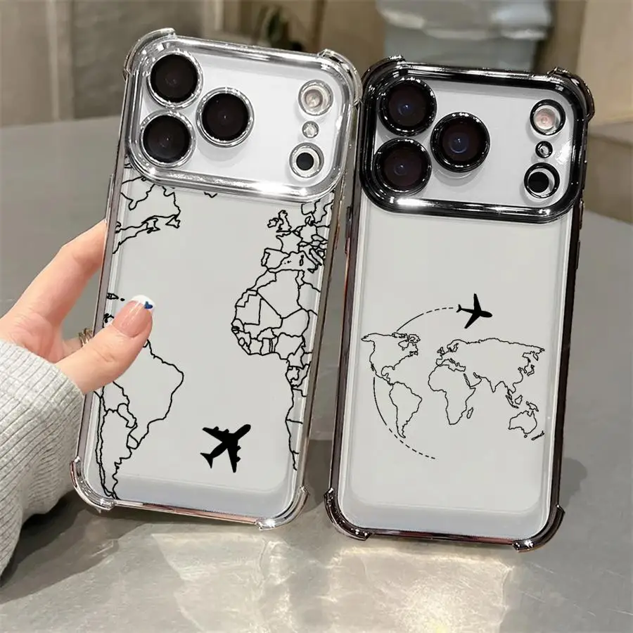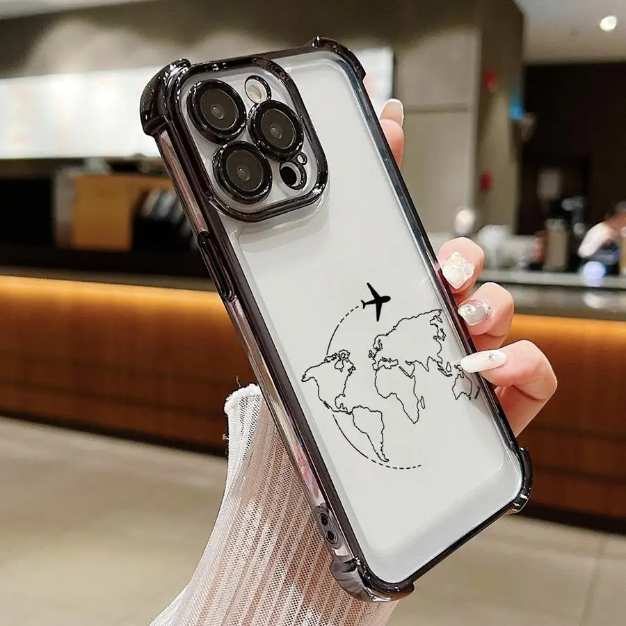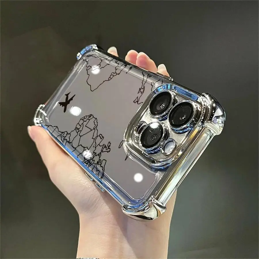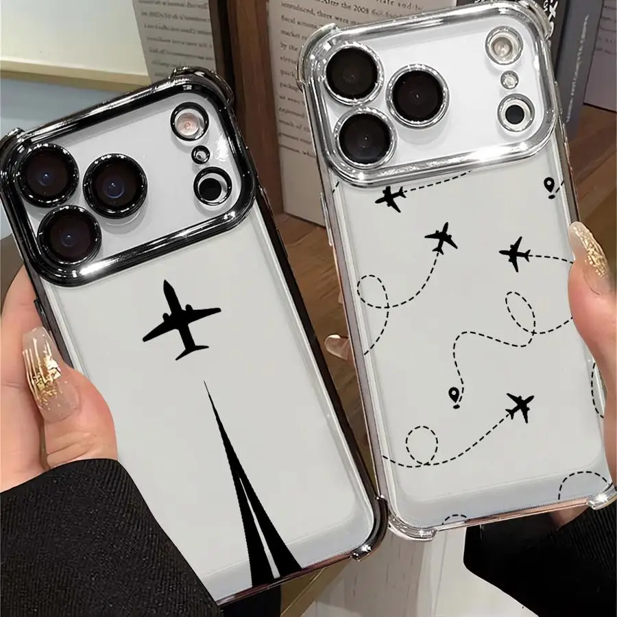Comprar Funda transparente para teléfono Apple iPhone 16e 16 15 14 Plus 17 Air 13 12 11 Pro Max patrón de trayectoria de aviones