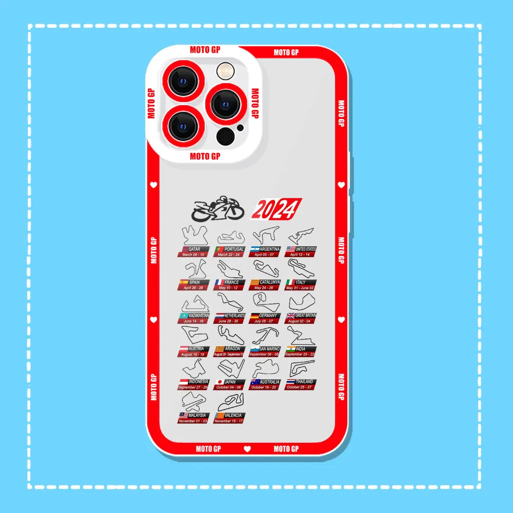 Calendario de Moto GP 2024Funda transparente para Apple iPhone 11 12 13 Mini 14 15 Pro Max 7 8 Plus SE X XR XS 14 15ProMax, funda transparente de silicona suave