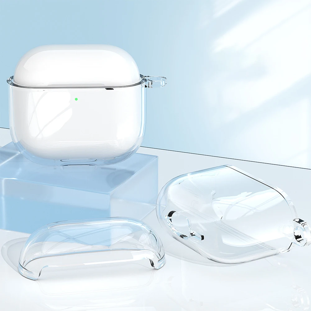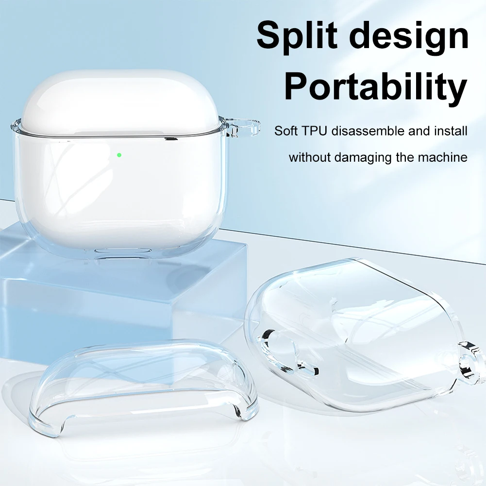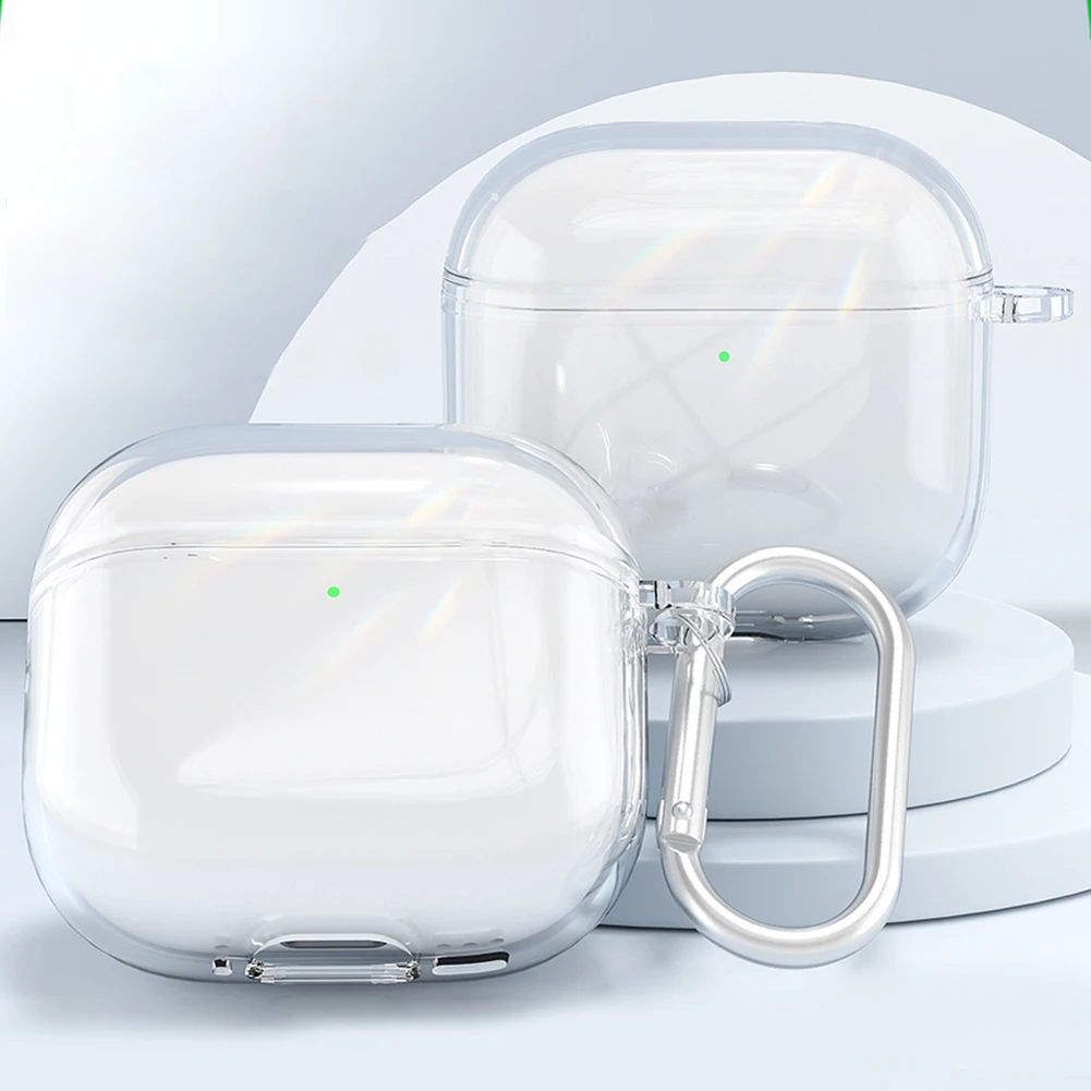 Funda protectora transparente a prueba de golpes TPU funda para auriculares inalámbricos con mosquetón funda protectora piel anticaídaCompatible conFunda de carga para Apple AirPods 4 (2024)