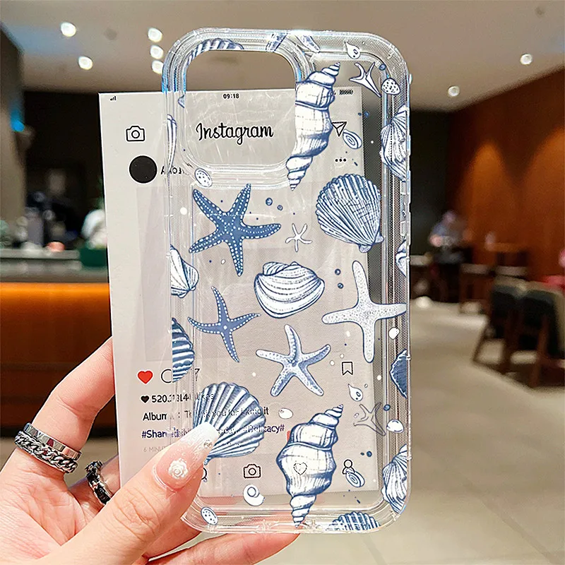 Funda de TPU transparente con elementos marinos de verano para Samsung Galaxy S25 Ultra S24 S23 S22 S21 FE Plus A35 A15 A55 A52