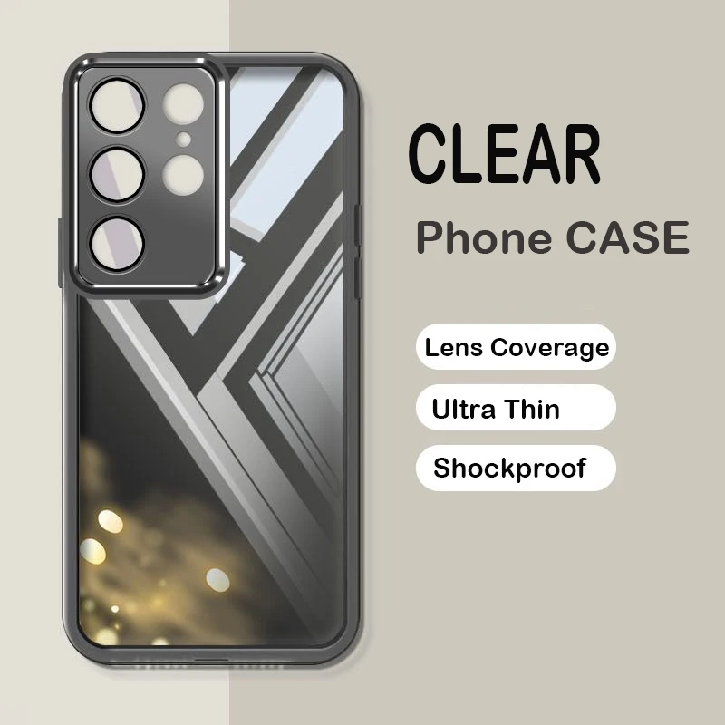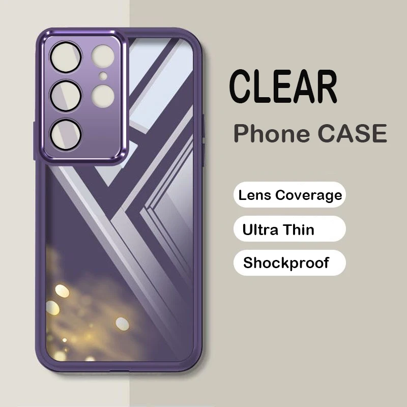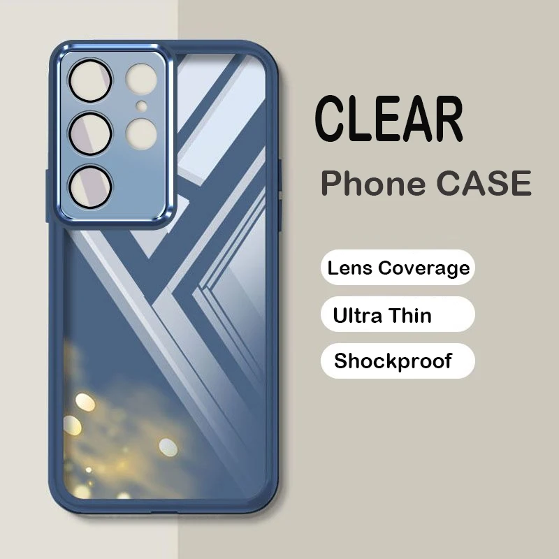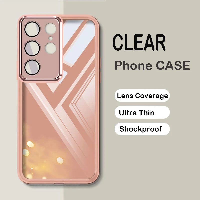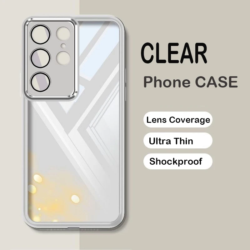 Comprar Funda transparente ultrafina para Samsung S25 S24 S23 FE Ultra Plus, protección de cámara de lente completa transparente, funda trasera para teléfono