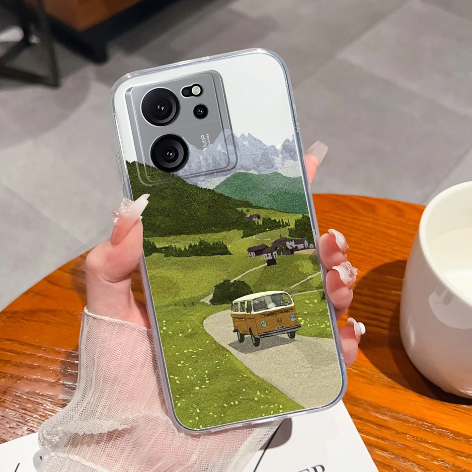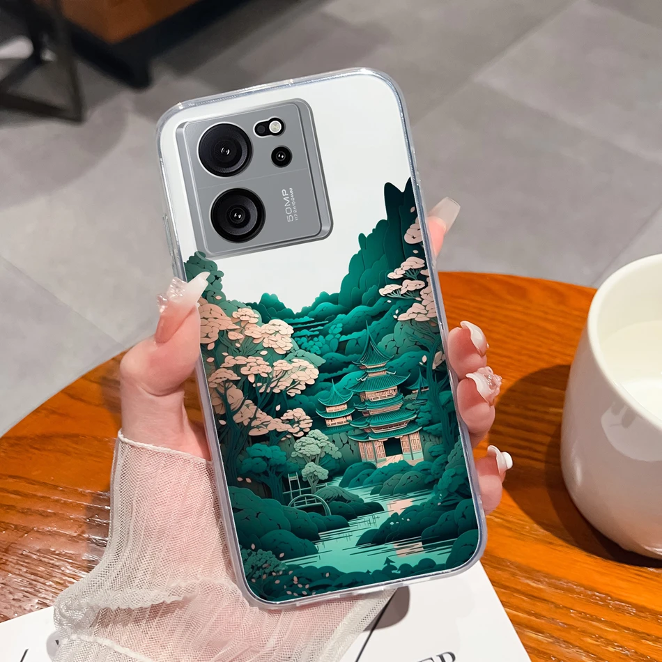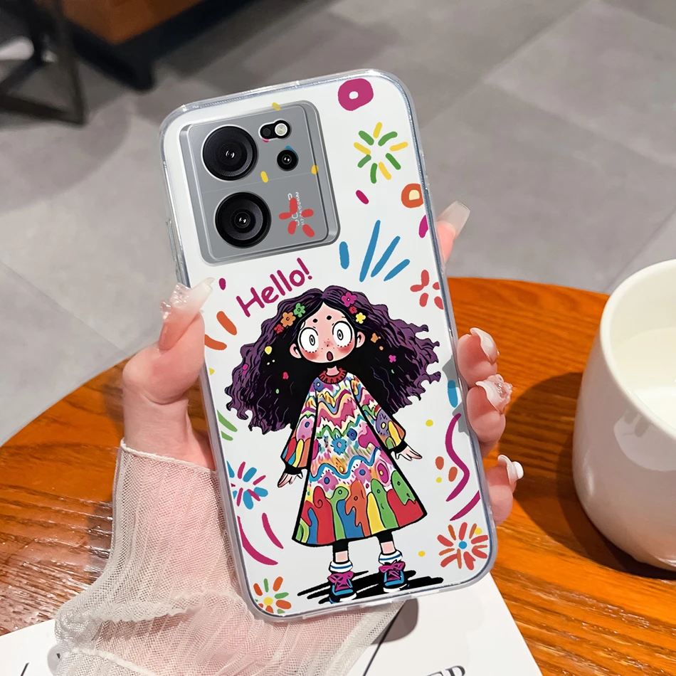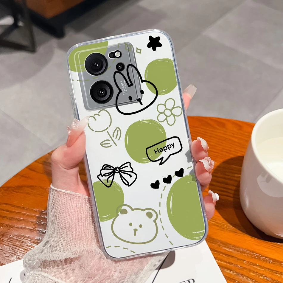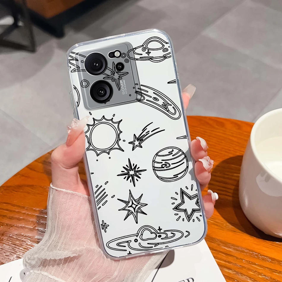 Funda transparente para Xiaomi 13T Pro, funda trasera suave de silicona TPU con bonitos dibujos para Xiaomi 13 T 13TPro, fundas ligeras anticaída para teléfono