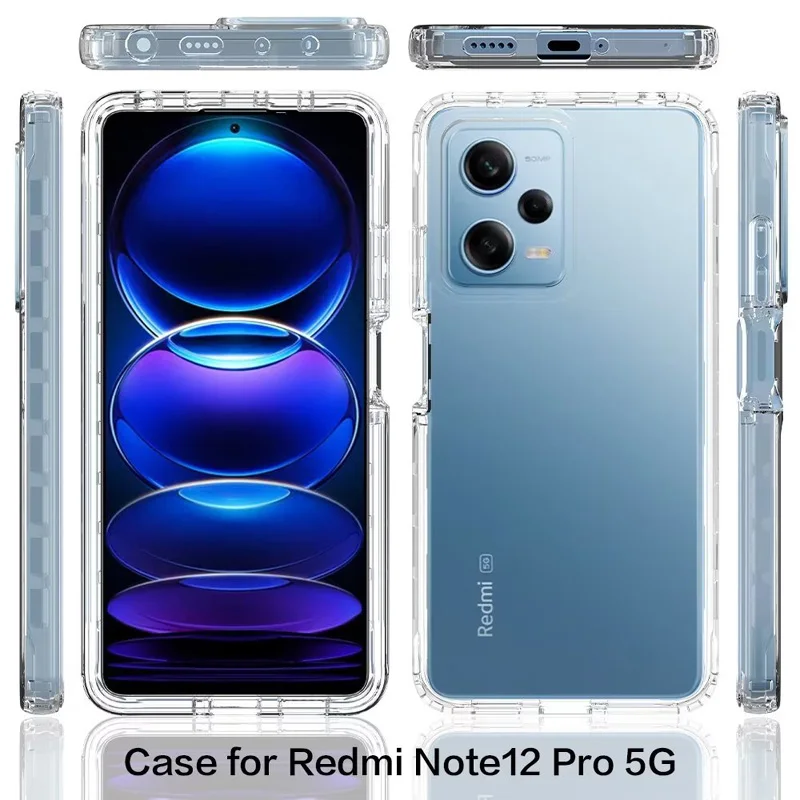 Clear Case for Xiaomi Redmi Note 12 Note12 Pro 5G Silicone Phone Back Bag PC Bumper 360 Full Hard Two Layer Hybrid Protect Cover