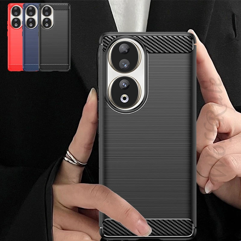Comprar Funda trasera a prueba de golpes para Honor 90, carcasa suave de fibra de carbono, TPU, Huawei Honor 80 90 Pro