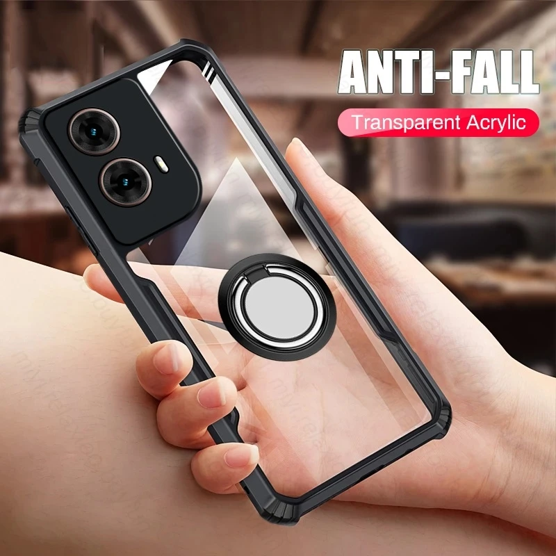 Para Motorola Moto G85 5G funda trasera de acrílico transparente MotoG85 G 85 85G 6,67 "soporte magnético anillo armadura a prueba de golpes Coque