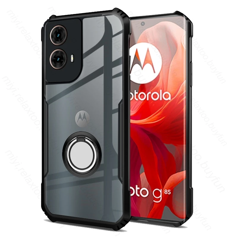Comprar Funda trasera de acrílico transparente para Motorola Moto G85 5G, cubierta trasera de MotoG85 G 85 85G XT2427-3, anillo de soporte magnético de 6,67 pulgadas, armadura a prueba de golpes