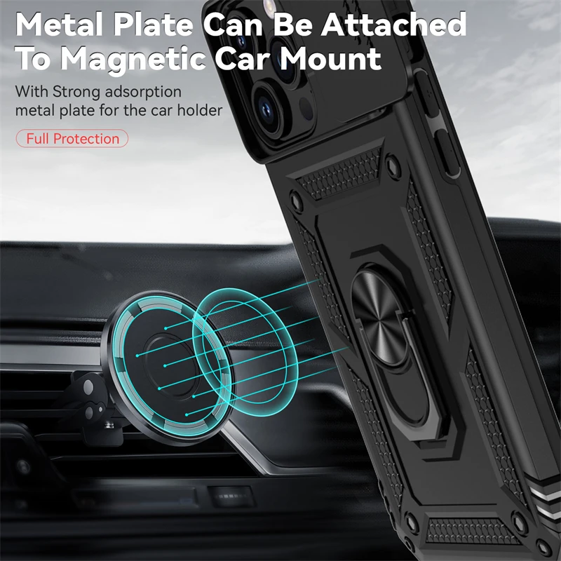 Funda trasera con anillo de soporte para iPhone, carcasa deslizante con armadura de cámara para iPhone 11, 12, 13, 14, 15 Pro Max, 15 Plus, X, XS, XR, 13, 14 Pro