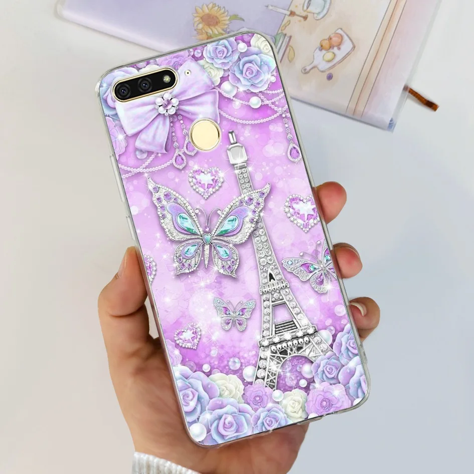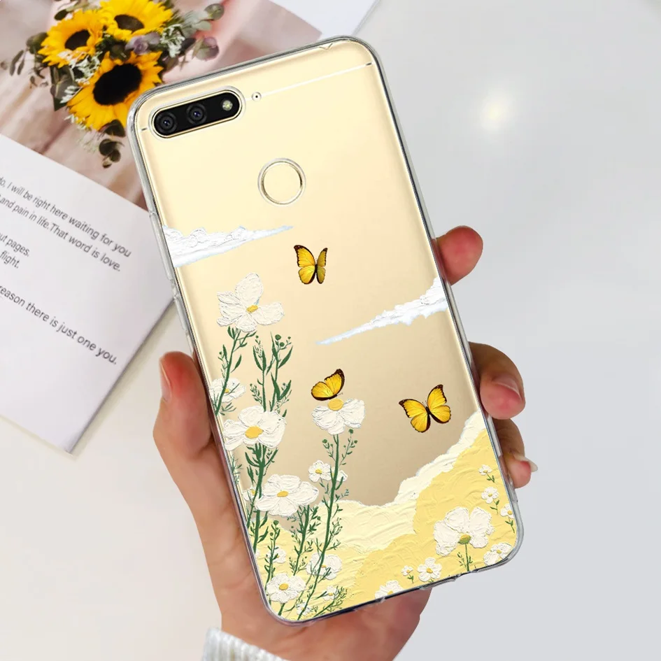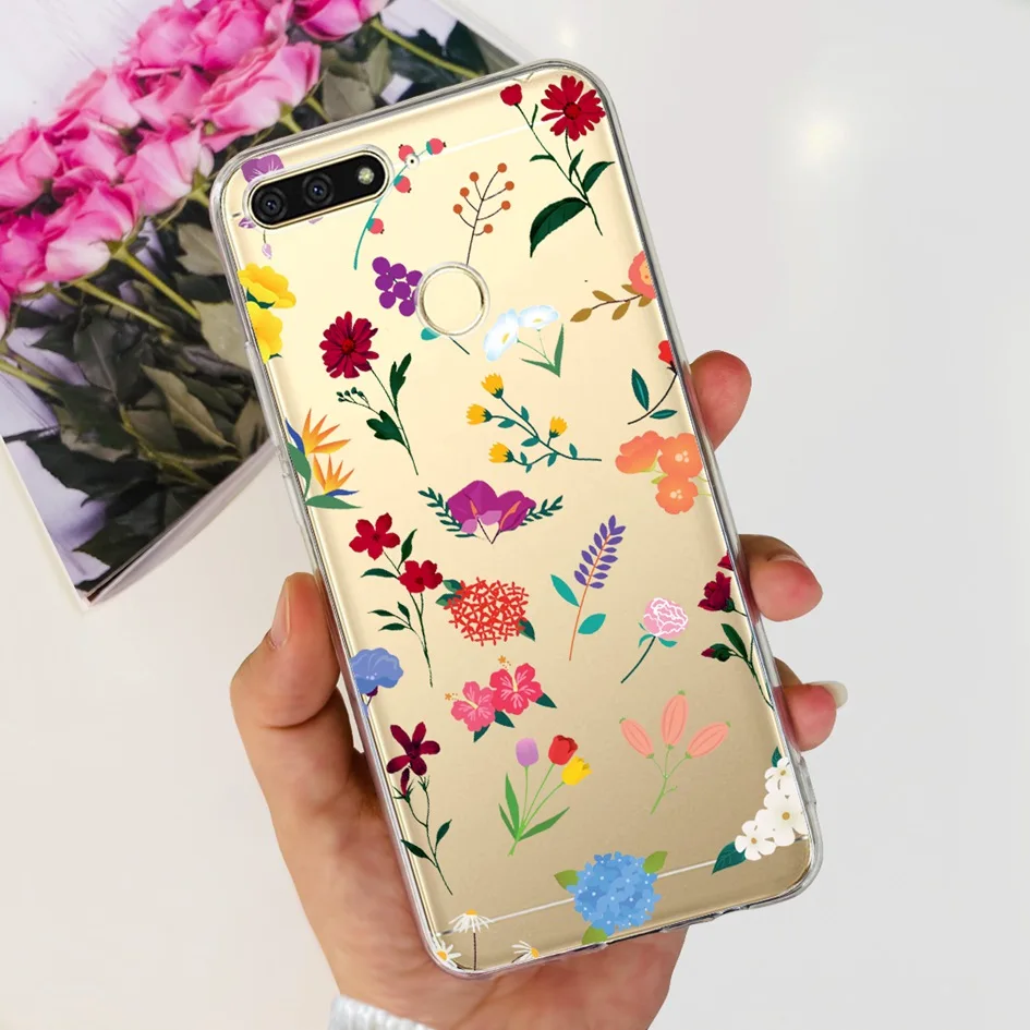 Funda para Honor 7A, funda trasera de silicona suave con parachoques de flores a la moda para Honor 7A Pro, Funda Honor7a Capa