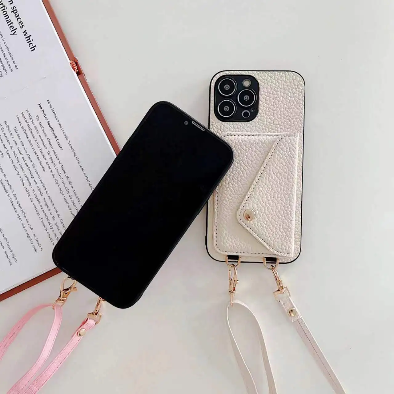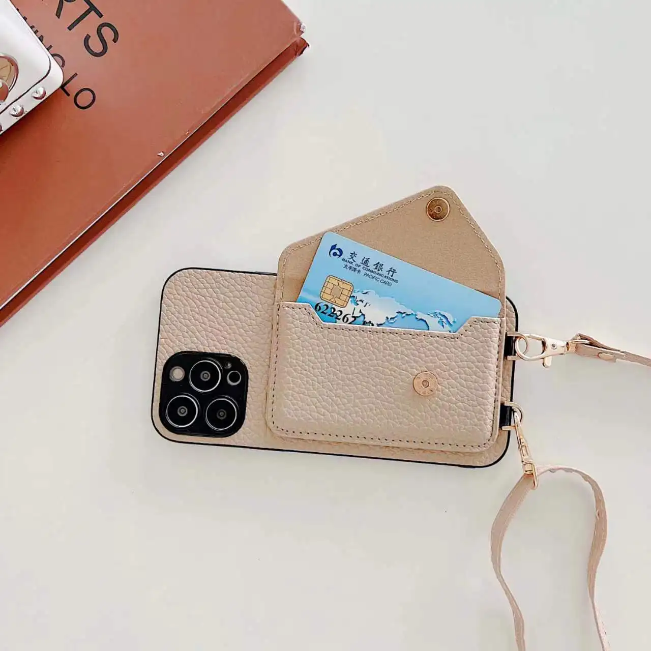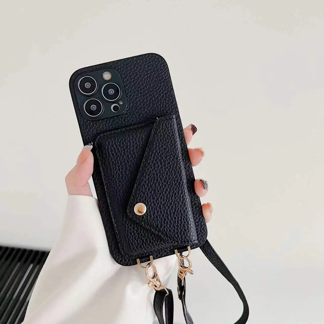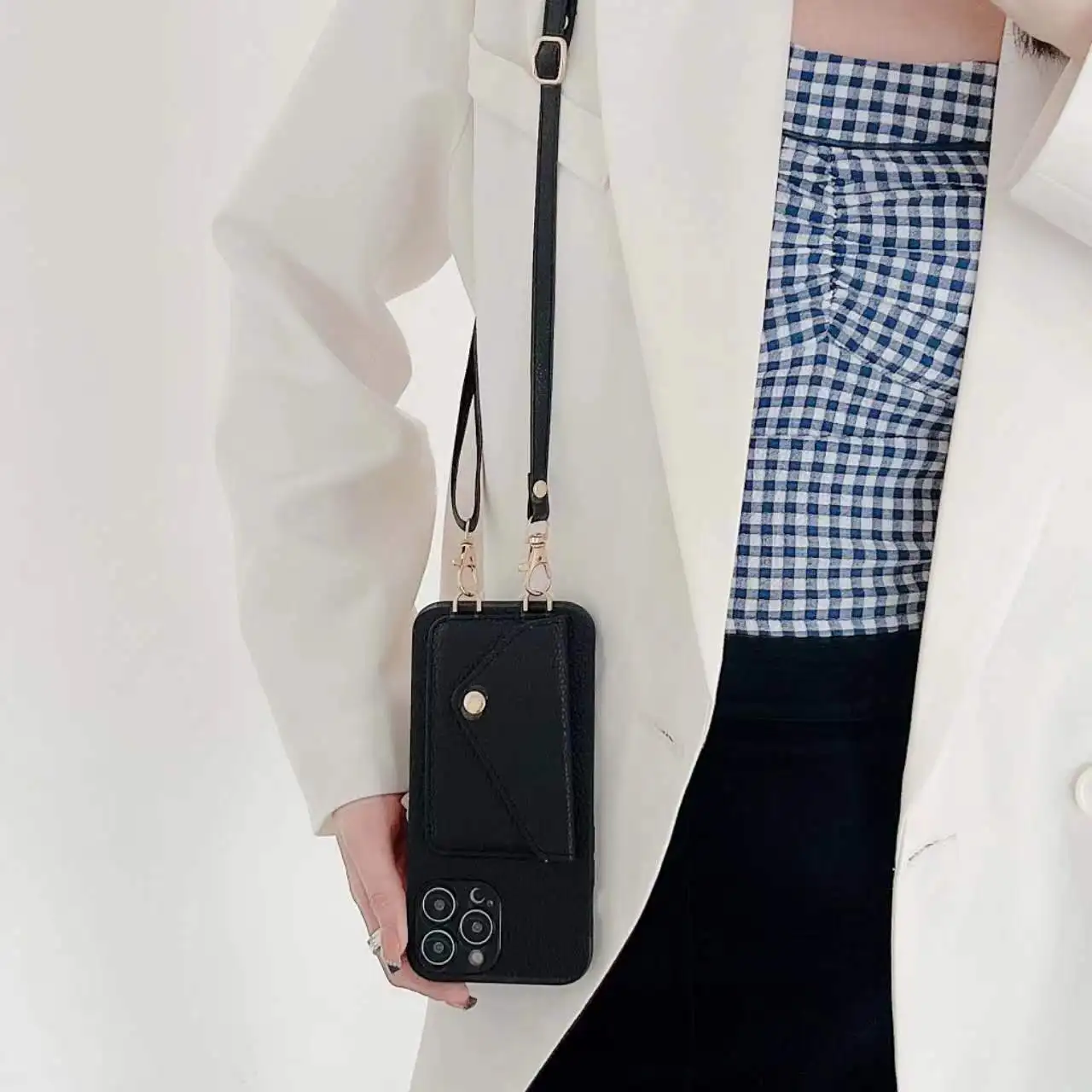 Funda trasera con correa de cuero para IPhone, carcasa cruzada con bolsillo para tarjetas, 15 Pro Max, 11, 12, 13, 14 Pro Max, X, XR, XS Max, 7, 8 Plus