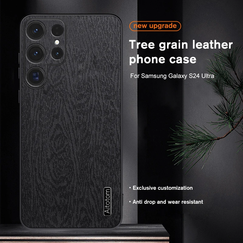 Comprar Funda trasera de cuero mate con patrón de árbol para Samsung Galaxy S24 Ultra 5G, carcasa de silicona a prueba de golpes, Coque SamsungS24 S 24 Ultra Plus