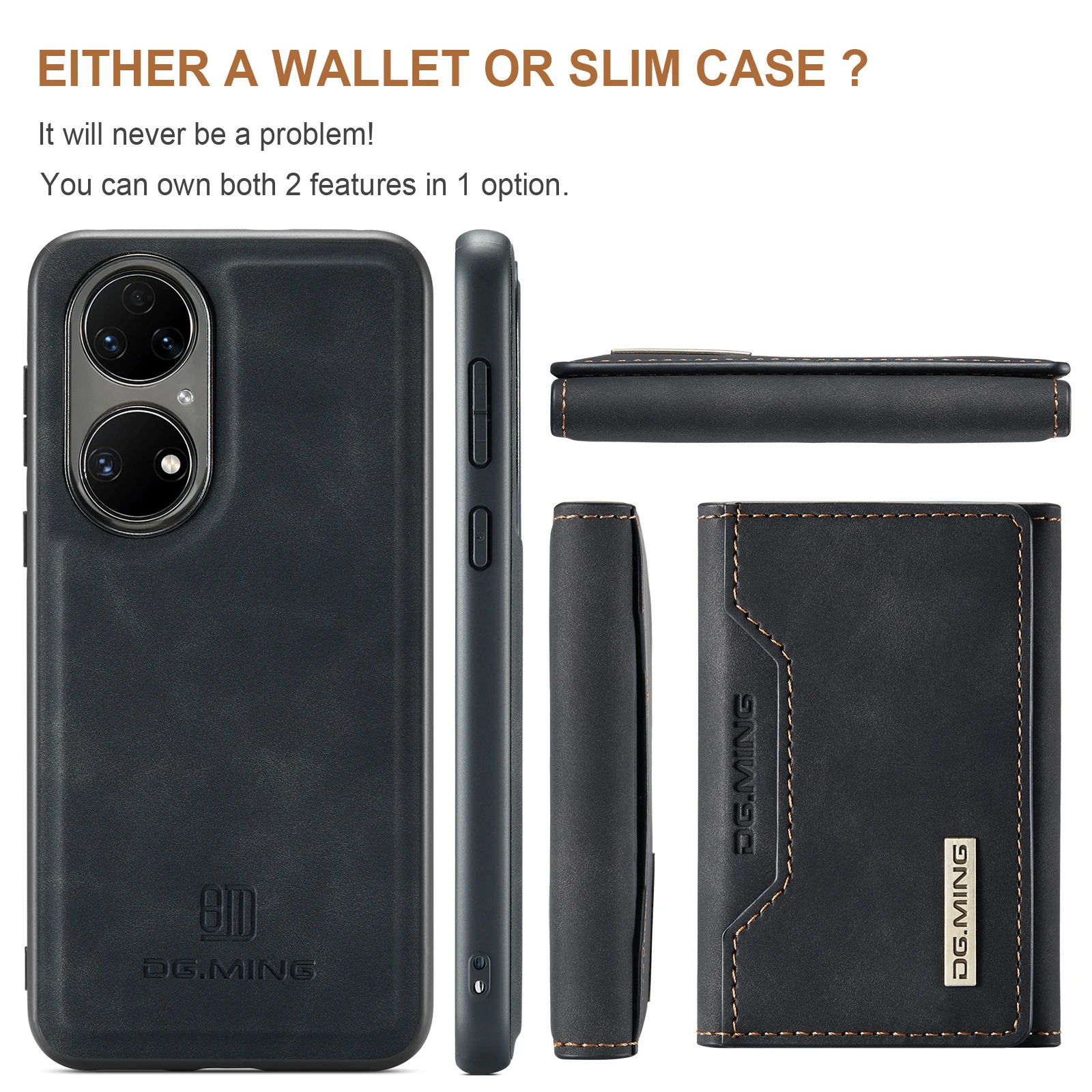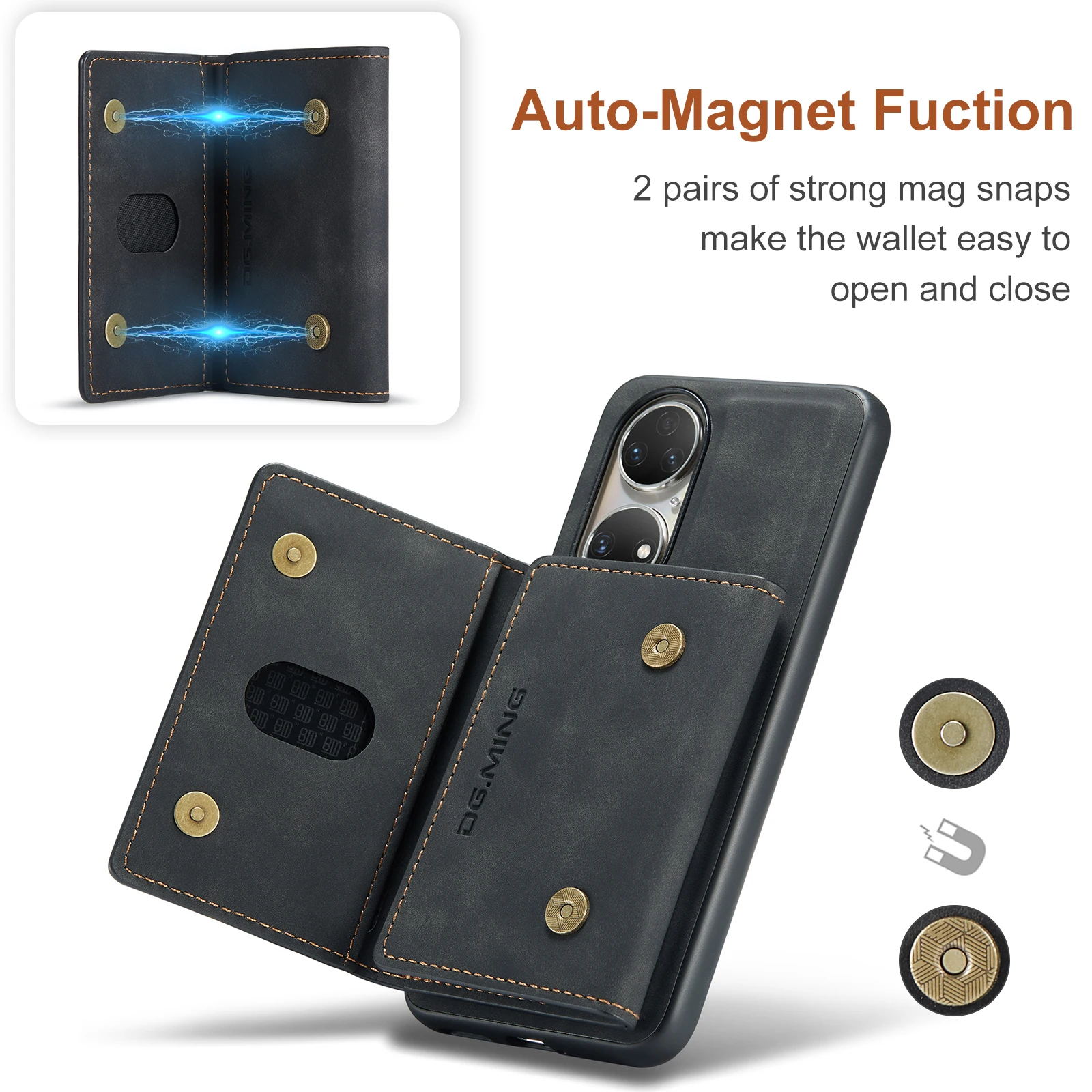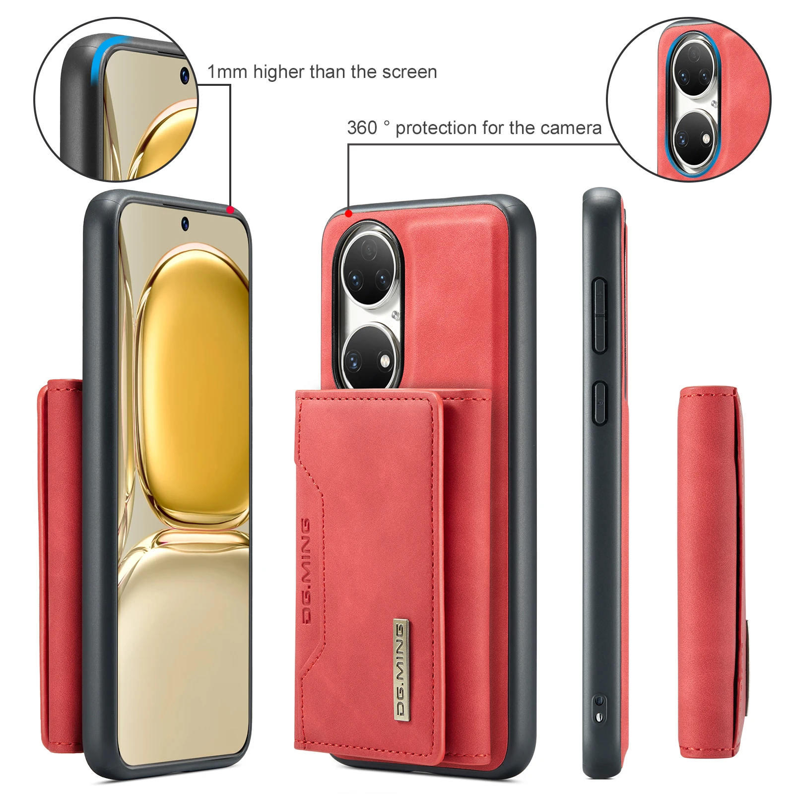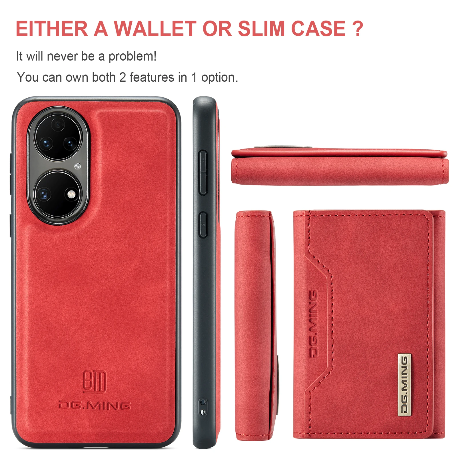 Comprar Funda trasera de cuero PU con tapa magnética para Huawei P50 Pro P50, Cartera de lujo con soporte y ranura para tarjetas, 2 en 1