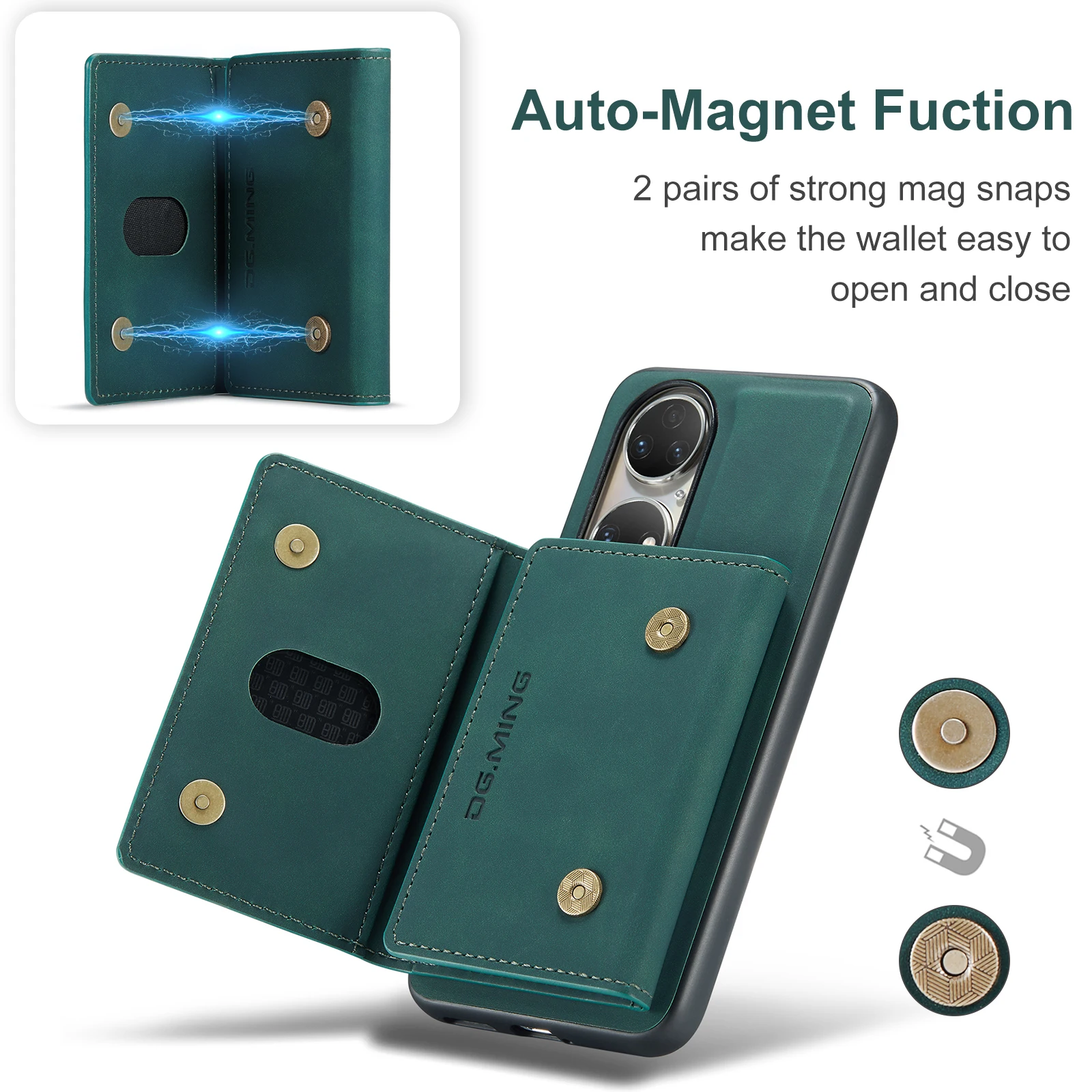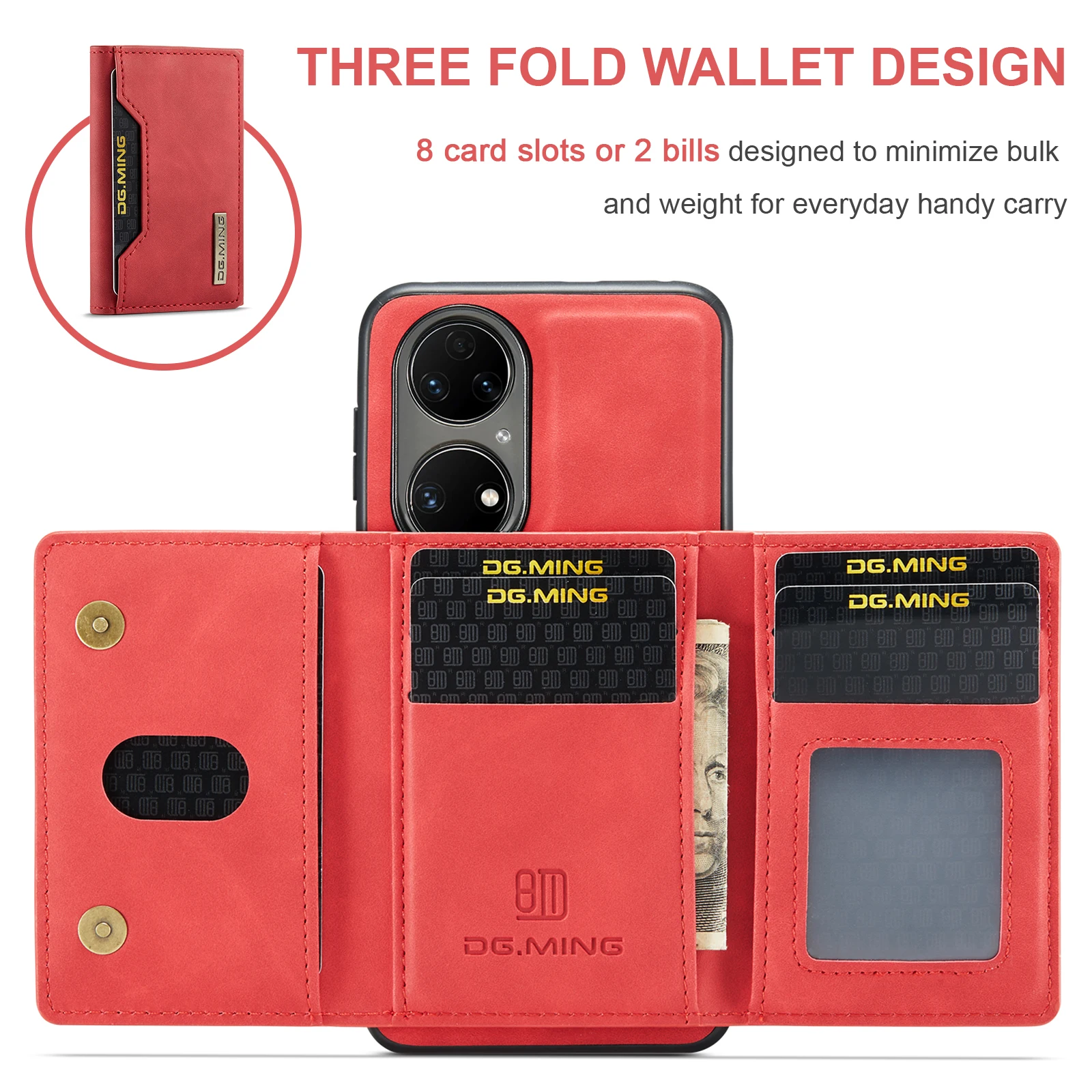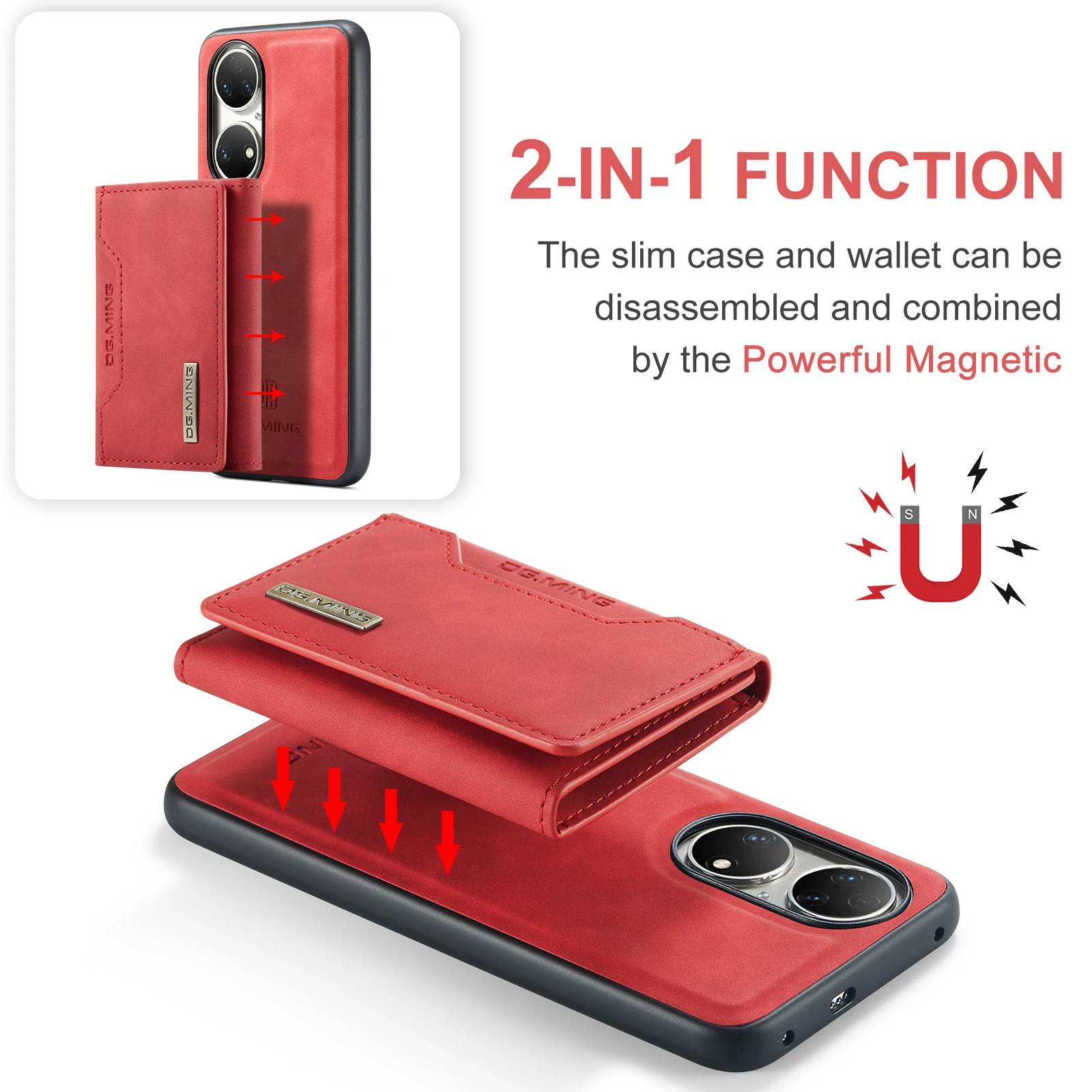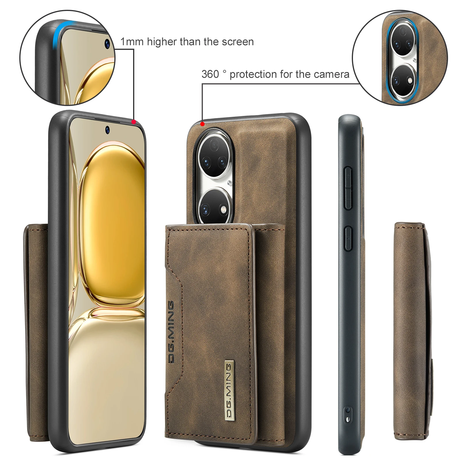 Comprar Funda trasera de cuero PU con tapa magnética para Huawei P50 Pro P50, Cartera de lujo con soporte y ranura para tarjetas, 2 en 1