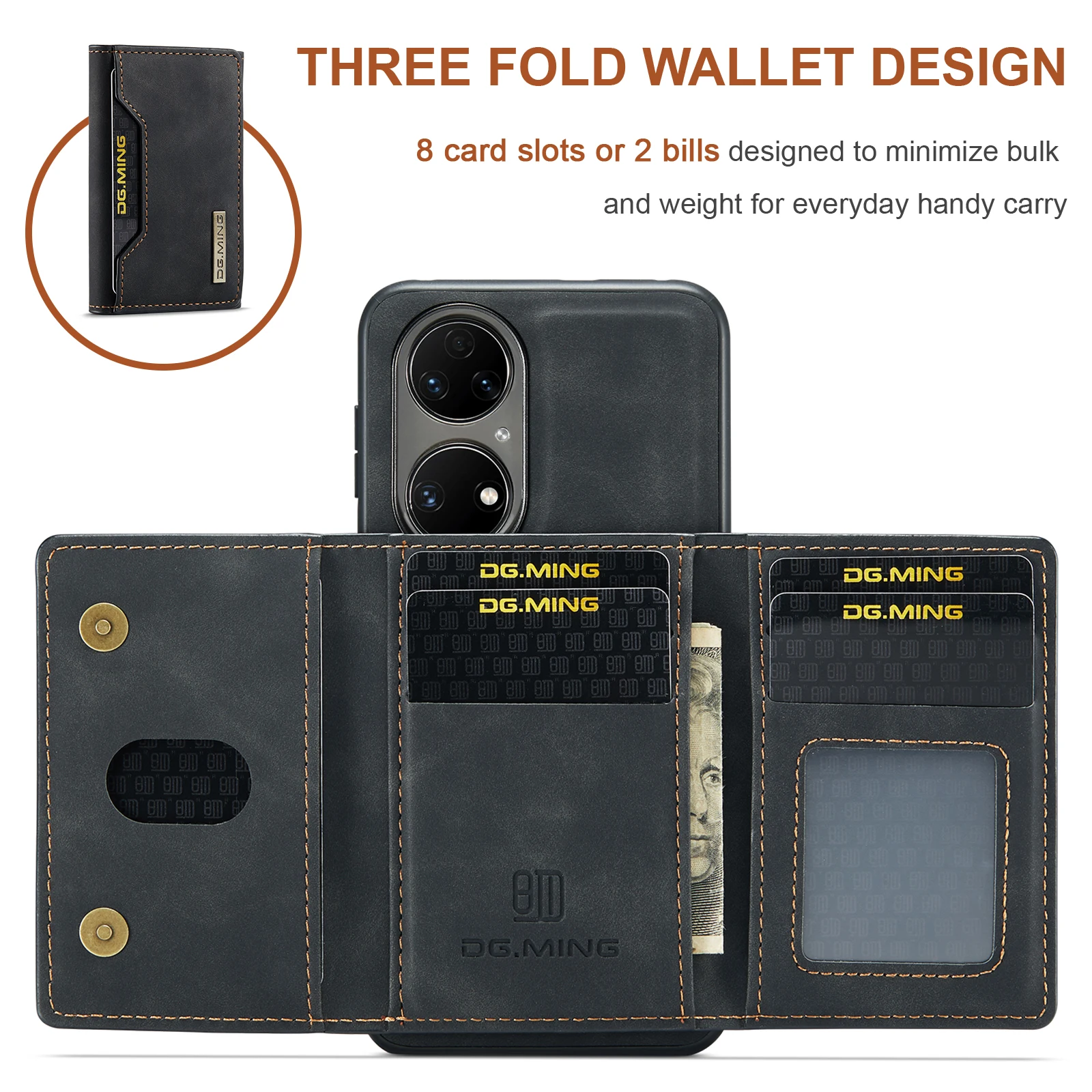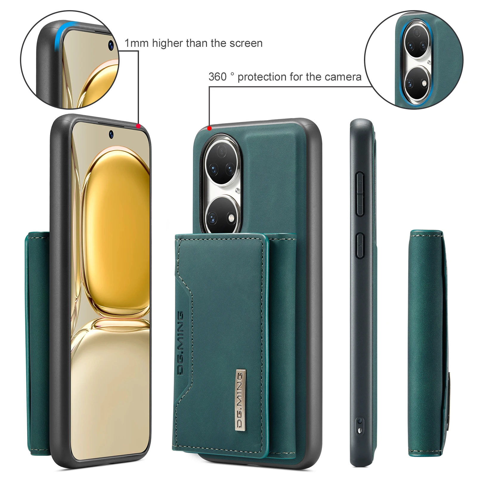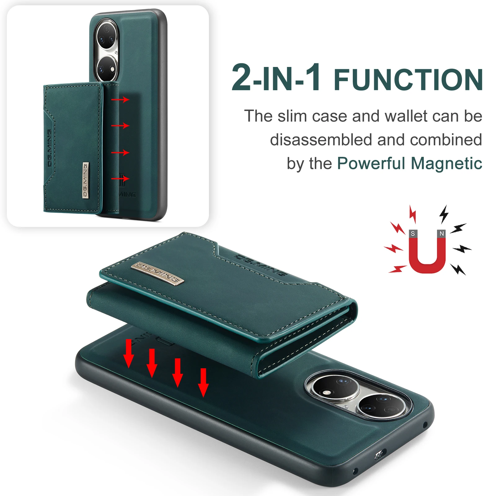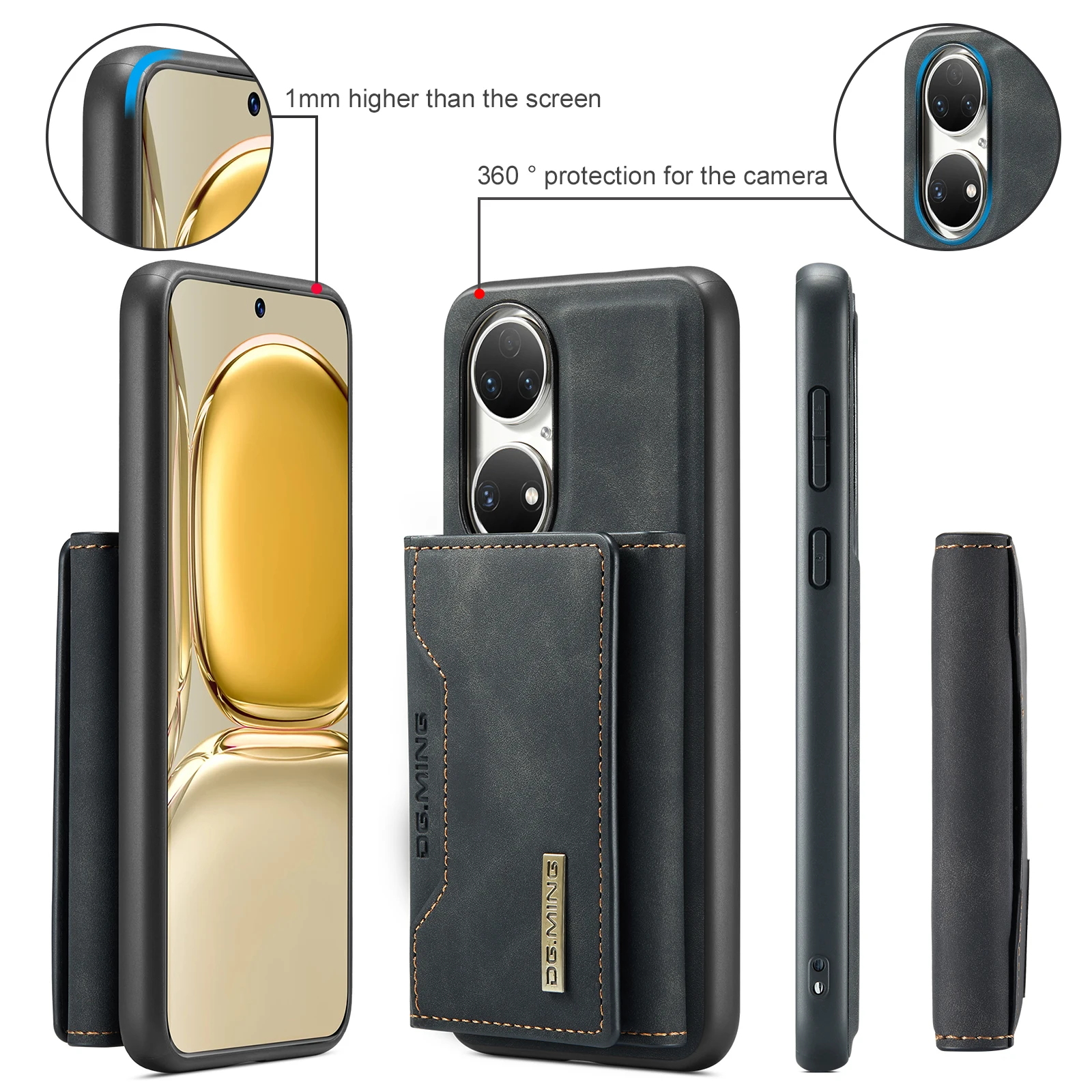 Comprar Funda trasera de cuero PU con tapa magnética para Huawei P50 Pro P50, Cartera de lujo con soporte y ranura para tarjetas, 2 en 1