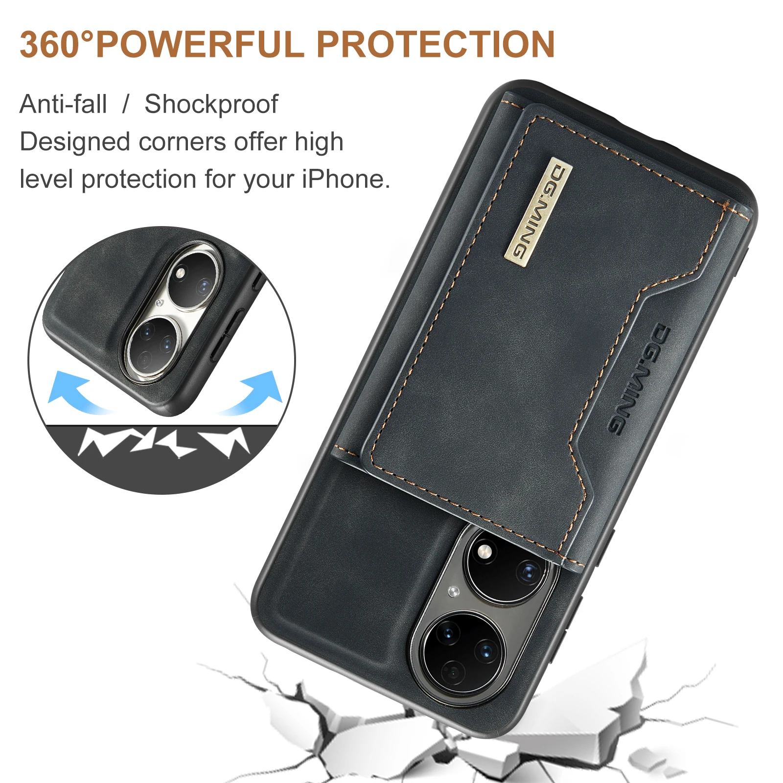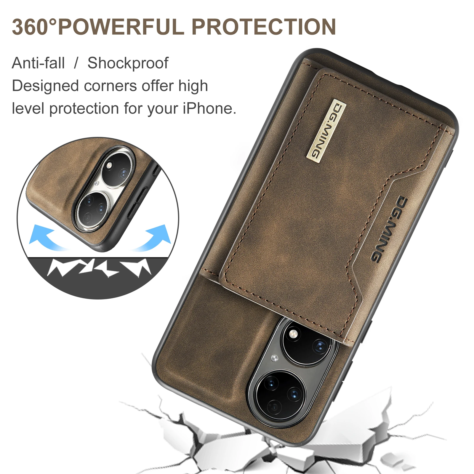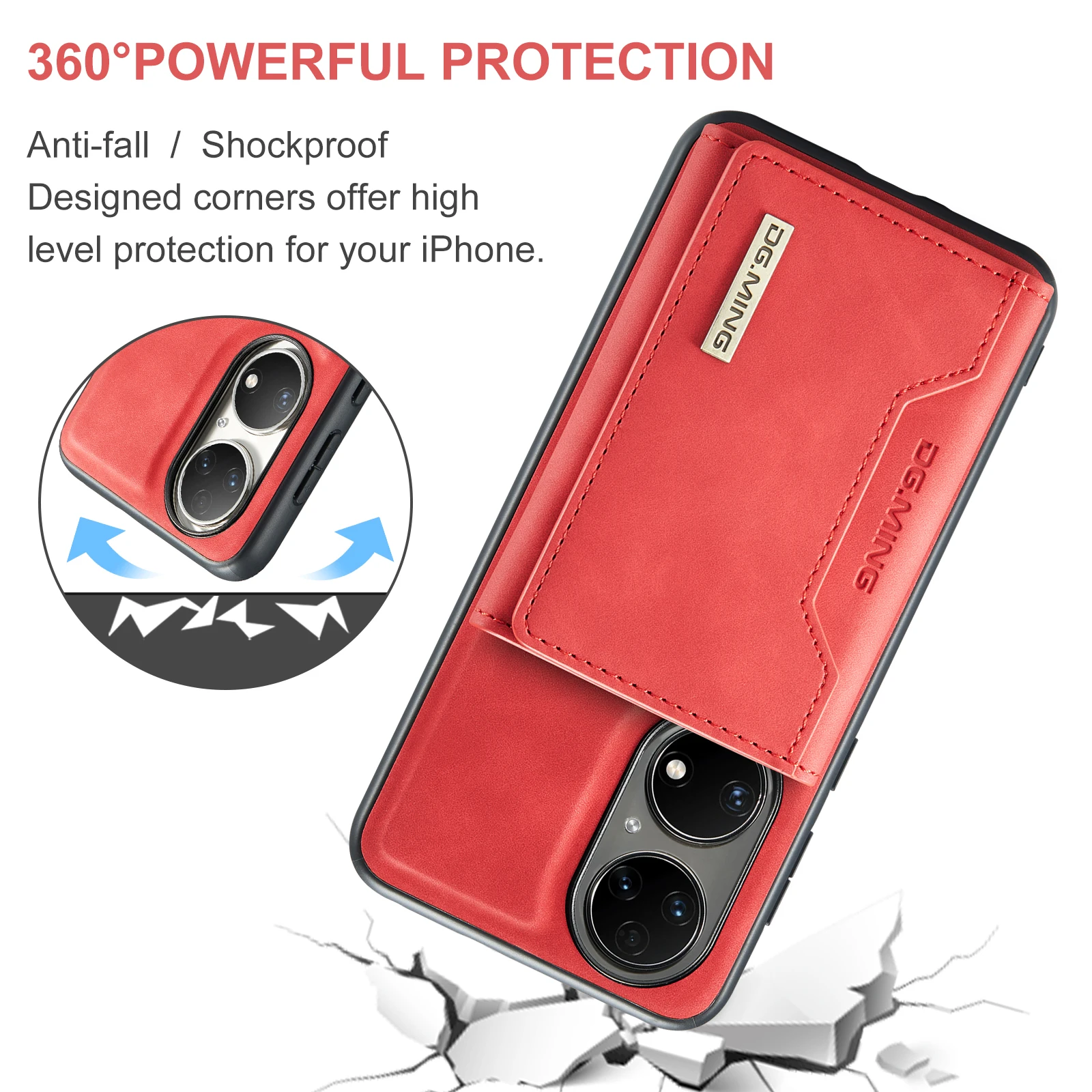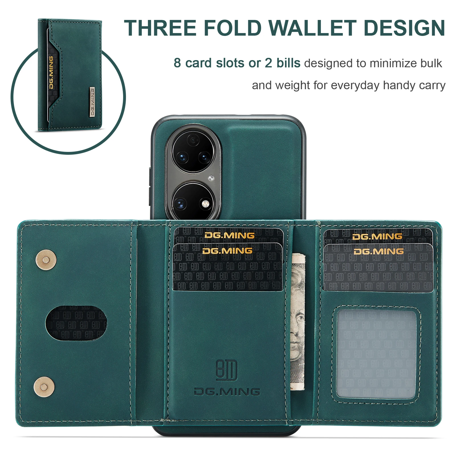 Comprar Funda trasera de cuero PU con tapa magnética para Huawei P50 Pro P50, Cartera de lujo con soporte y ranura para tarjetas, 2 en 1