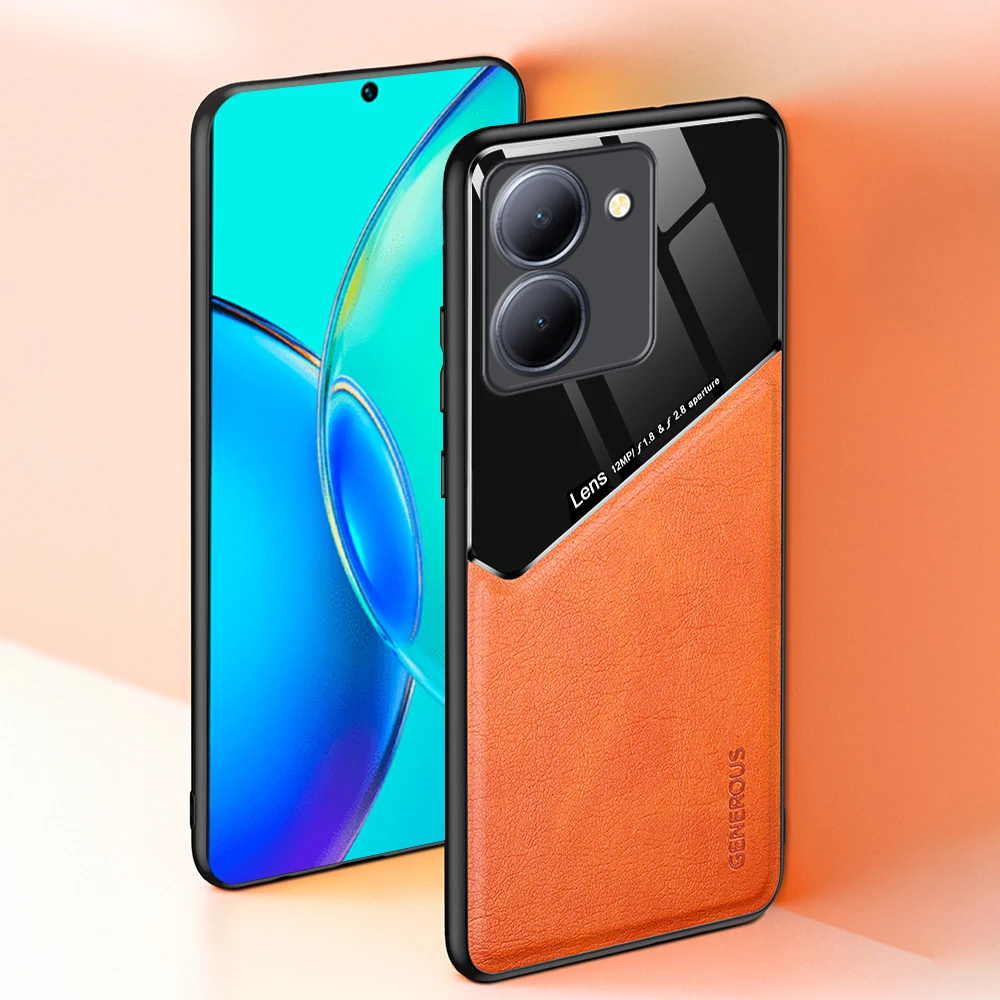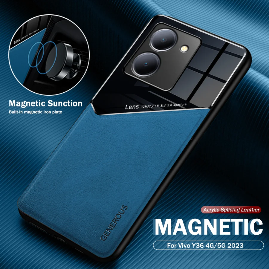 Funda trasera de cuero con soporte magnético para coche para Vivo Y36 Y 36 4G 36Y funda Vivoy36 4G 5G V2247 6,64 "Marco de silicona a prueba de golpes Coque