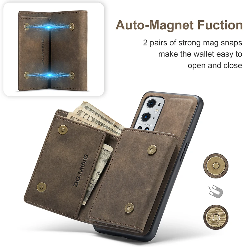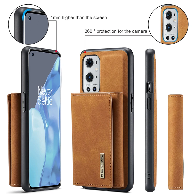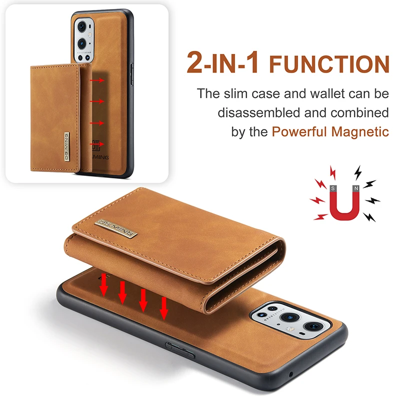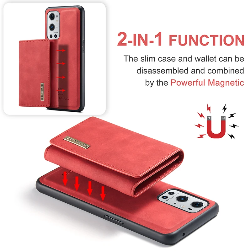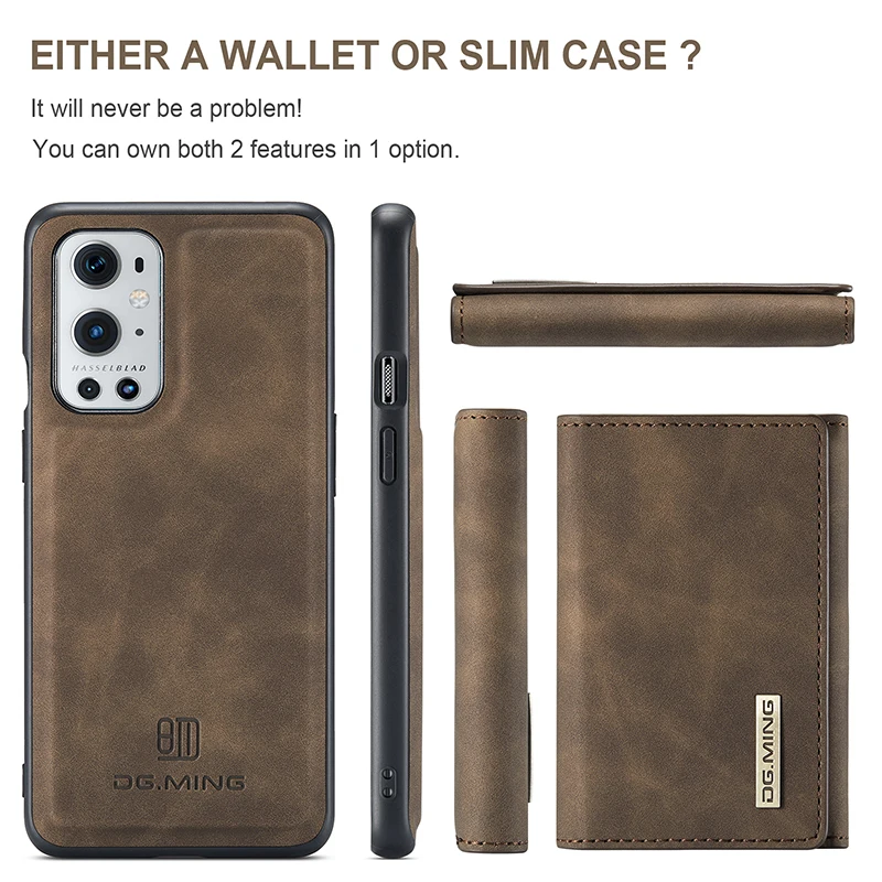 Comprar Funda trasera desmontable magnética para OnePlus 9 Pro 9R 9RT Nord N200, Cartera de cuero PU Vintage 2 en 1, con soporte para tarjetas