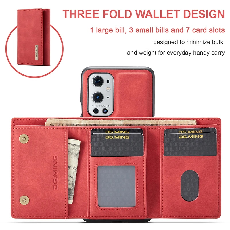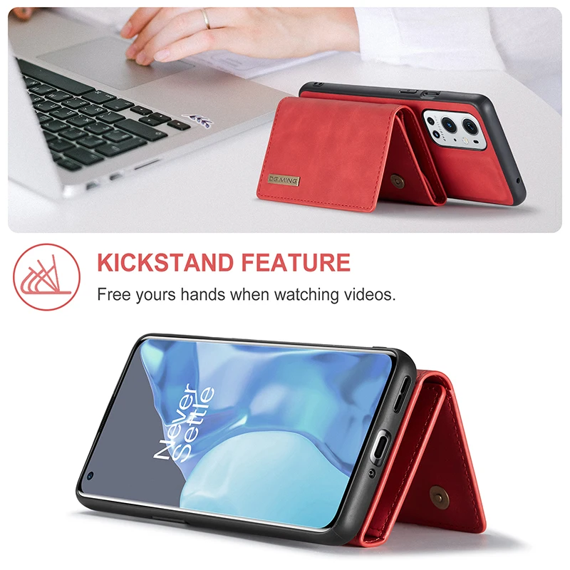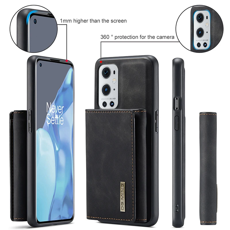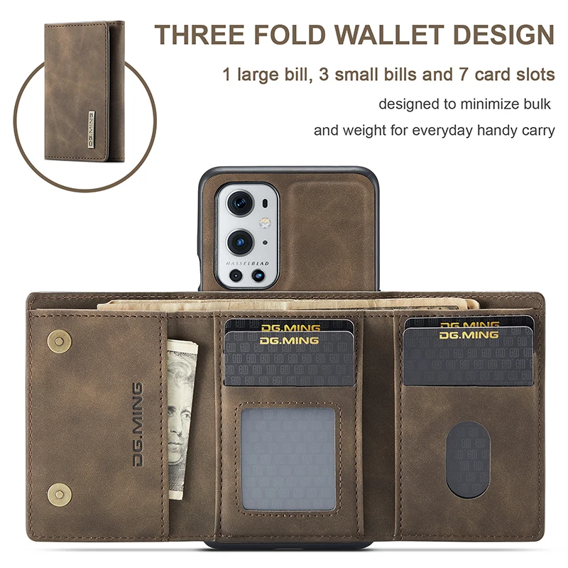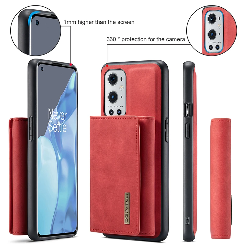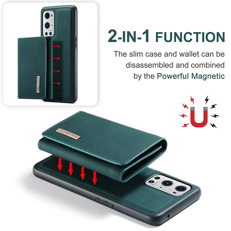 Comprar Funda trasera desmontable magnética para OnePlus 9 Pro 9R 9RT Nord N200, Cartera de cuero PU Vintage 2 en 1, con soporte para tarjetas