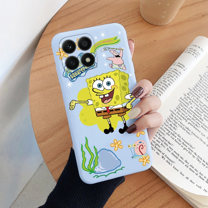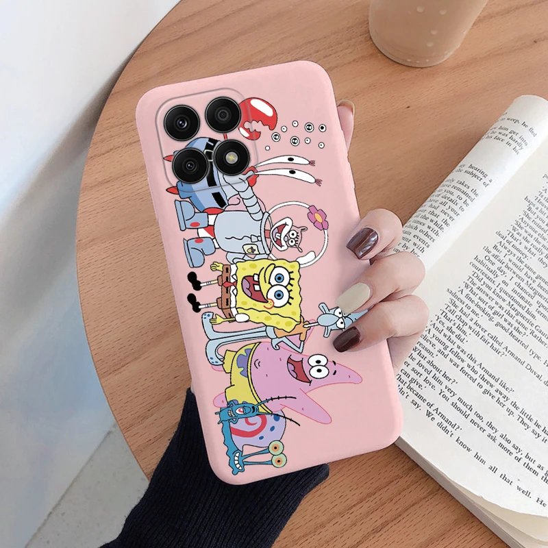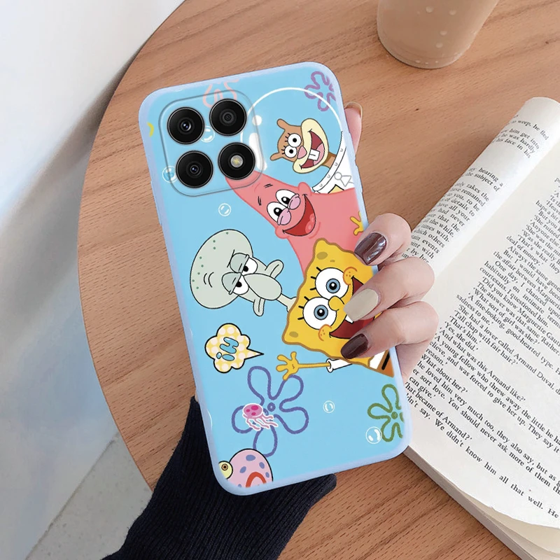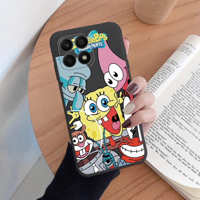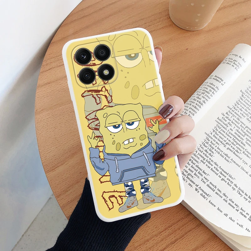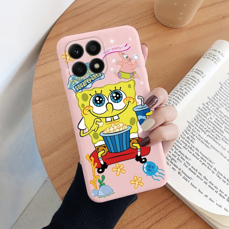 Bob de esponja de dibujos animados para Honor X6b 5G X8b cubierta cuadrada pantalones Patrick estrellas Anime funda trasera divertida Funda suave para HonorX8b Capa
