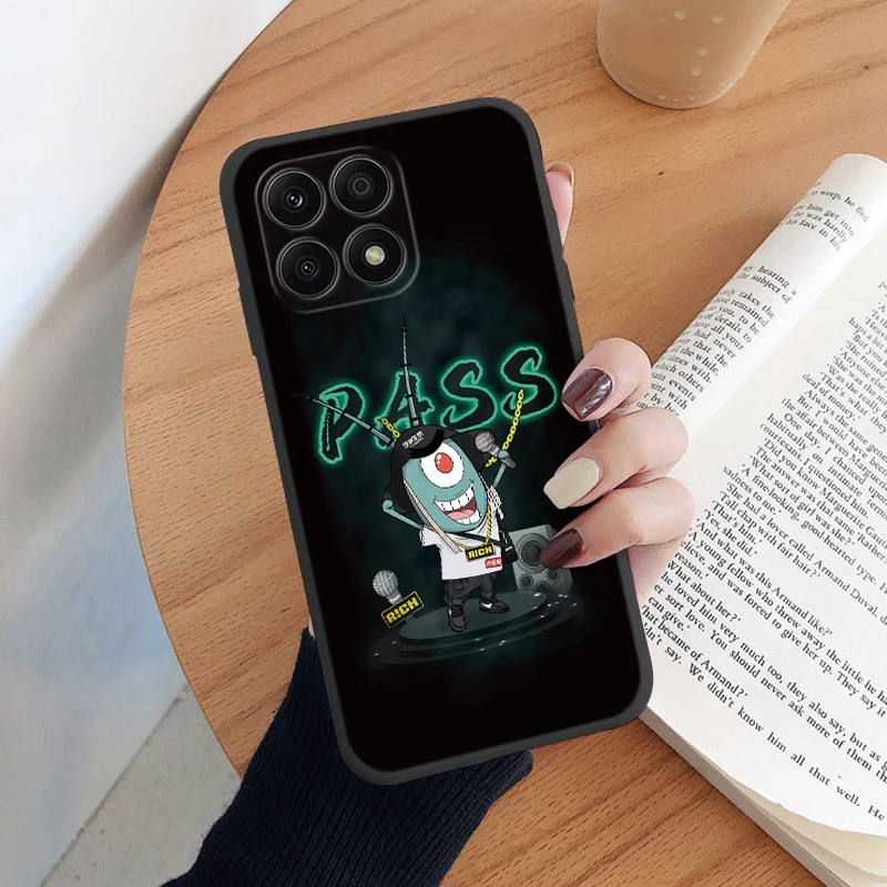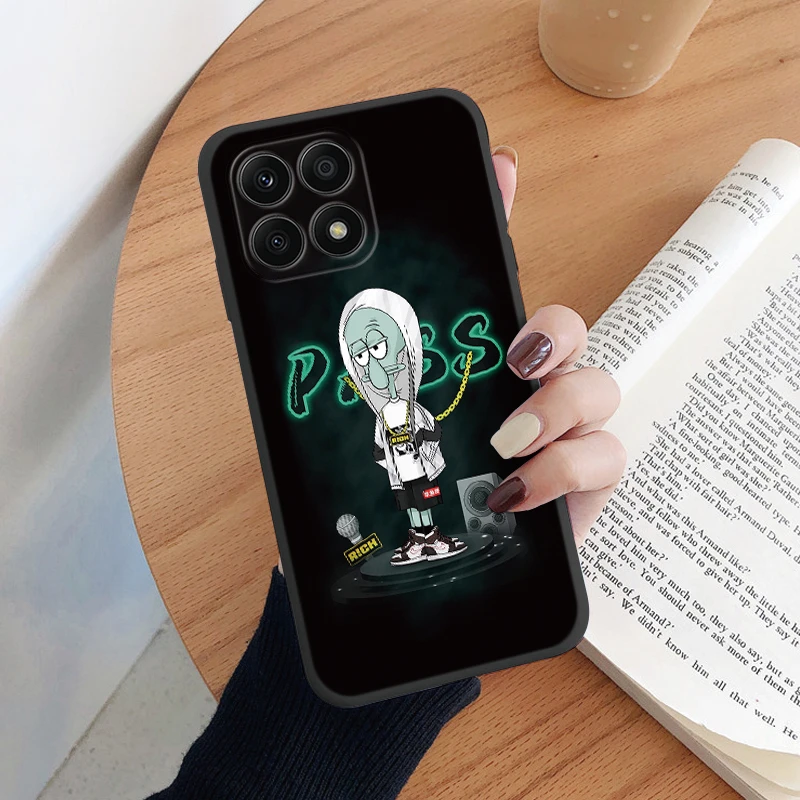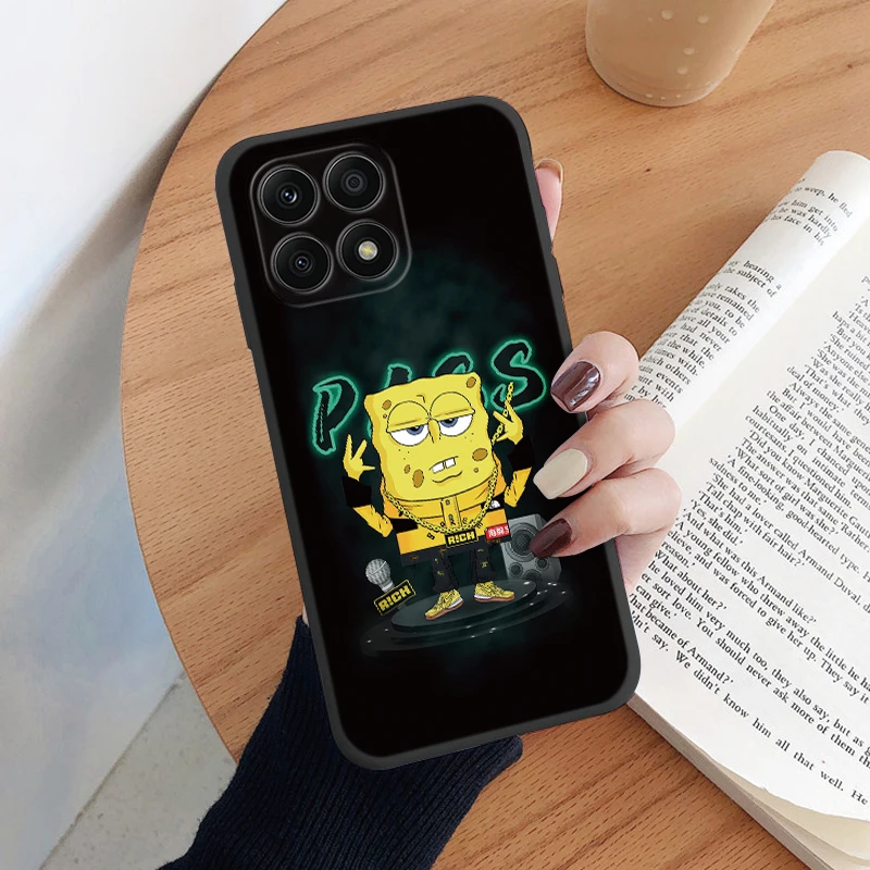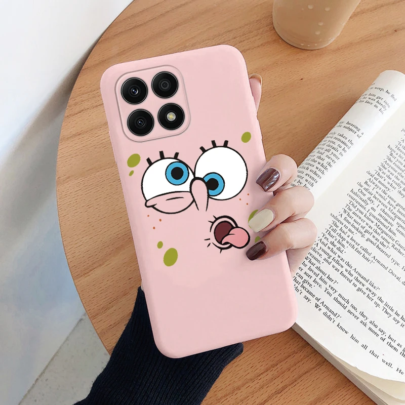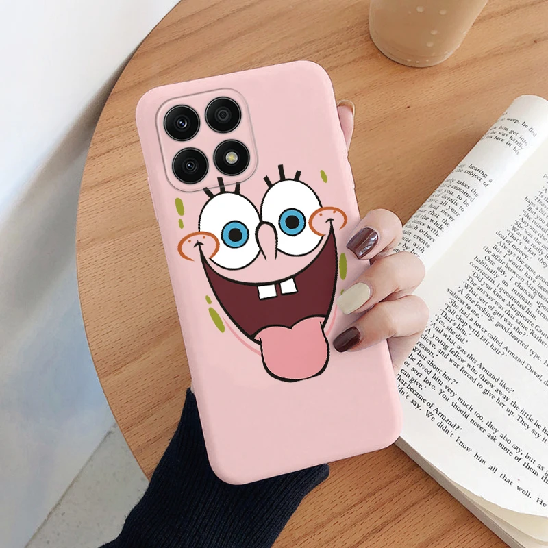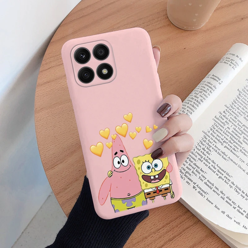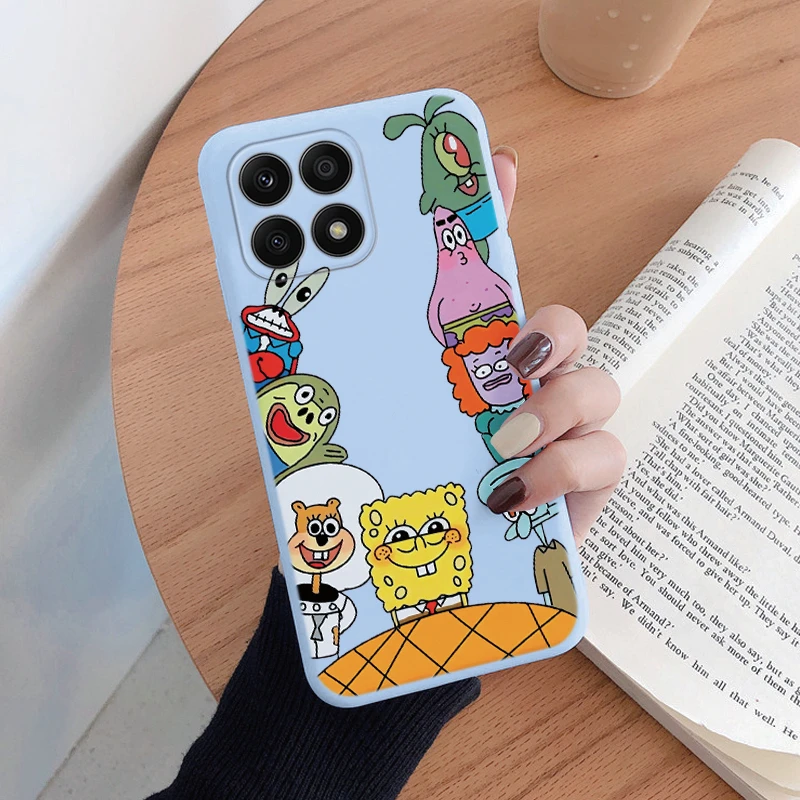 Bob de esponja de dibujos animados para Honor X6b 5G X8b cubierta cuadrada pantalones Patrick estrellas Anime funda trasera divertida Funda suave para HonorX8b Capa