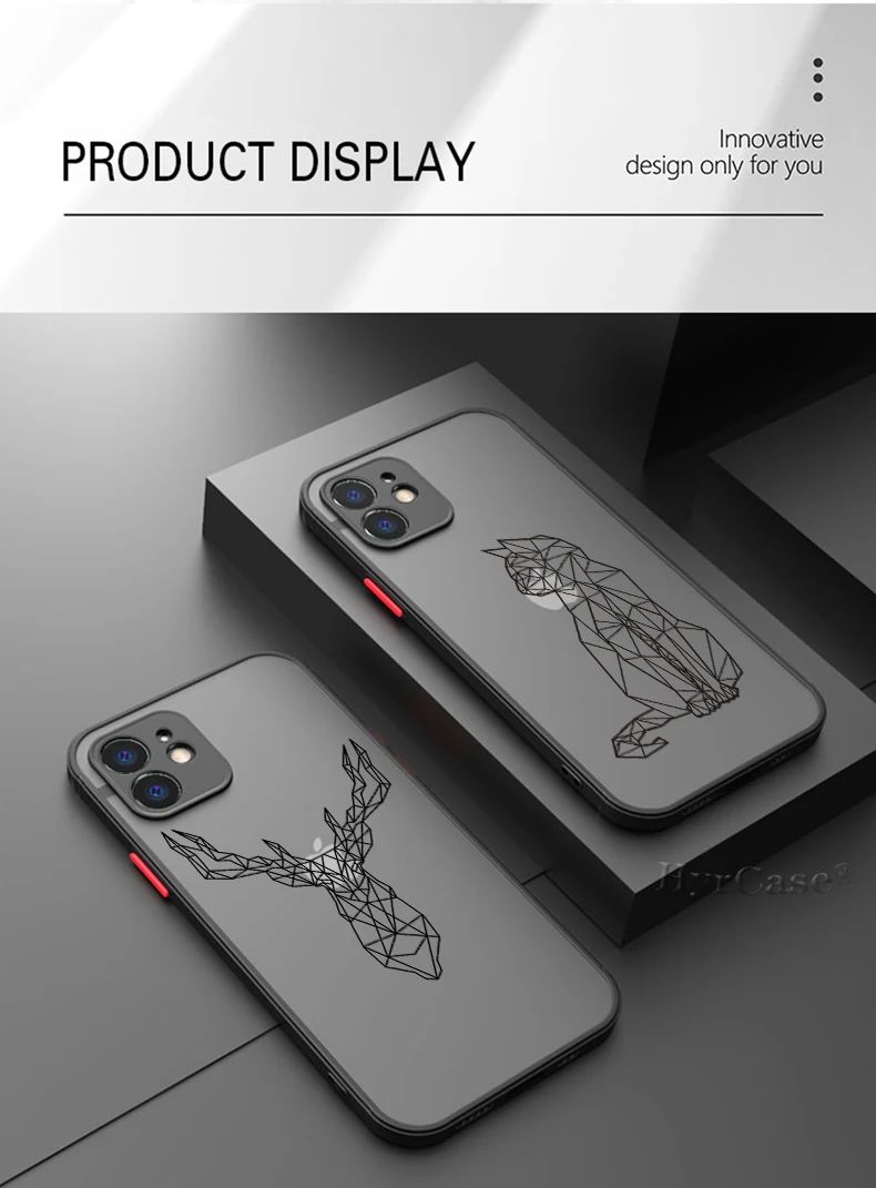 Para iPhone 13 12 11 14 Pro Max Mini XS XR 14Plus funda líneas arte lindo gato ciervo jirafa Animal parachoques suave mate funda trasera dura