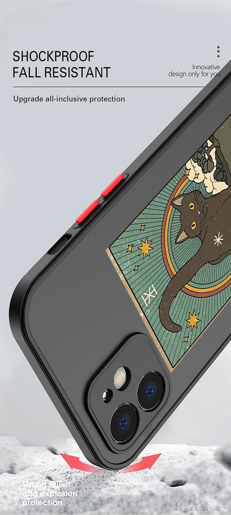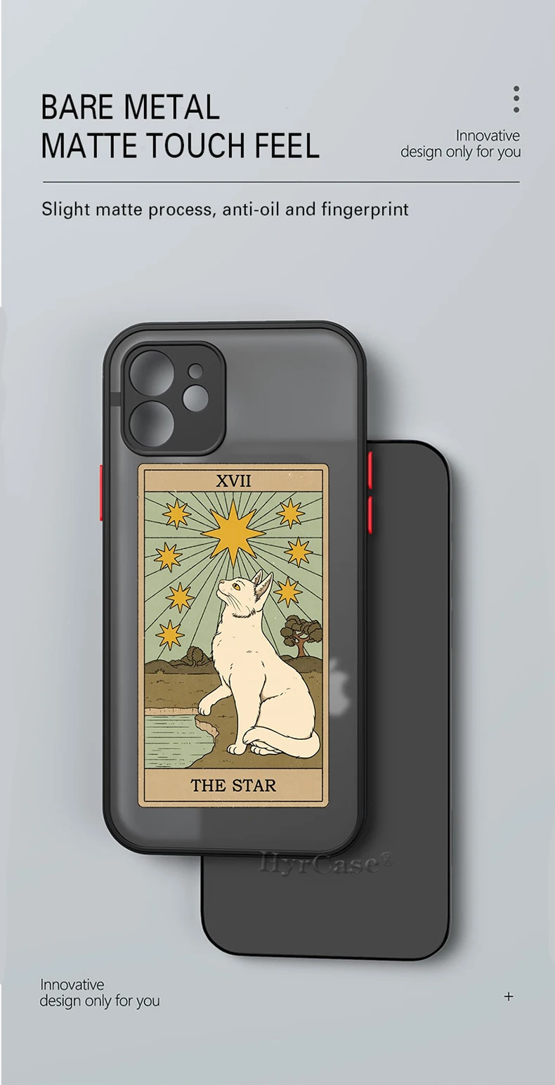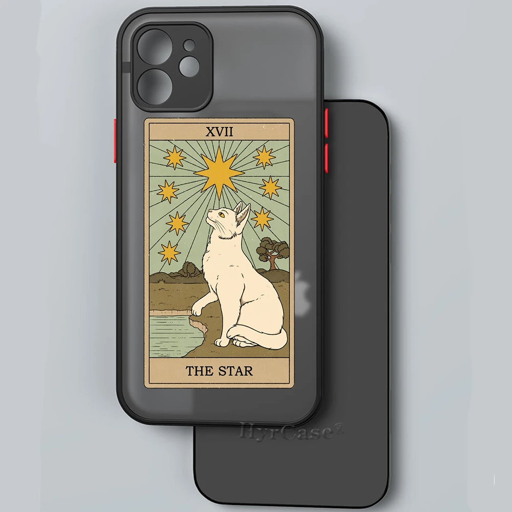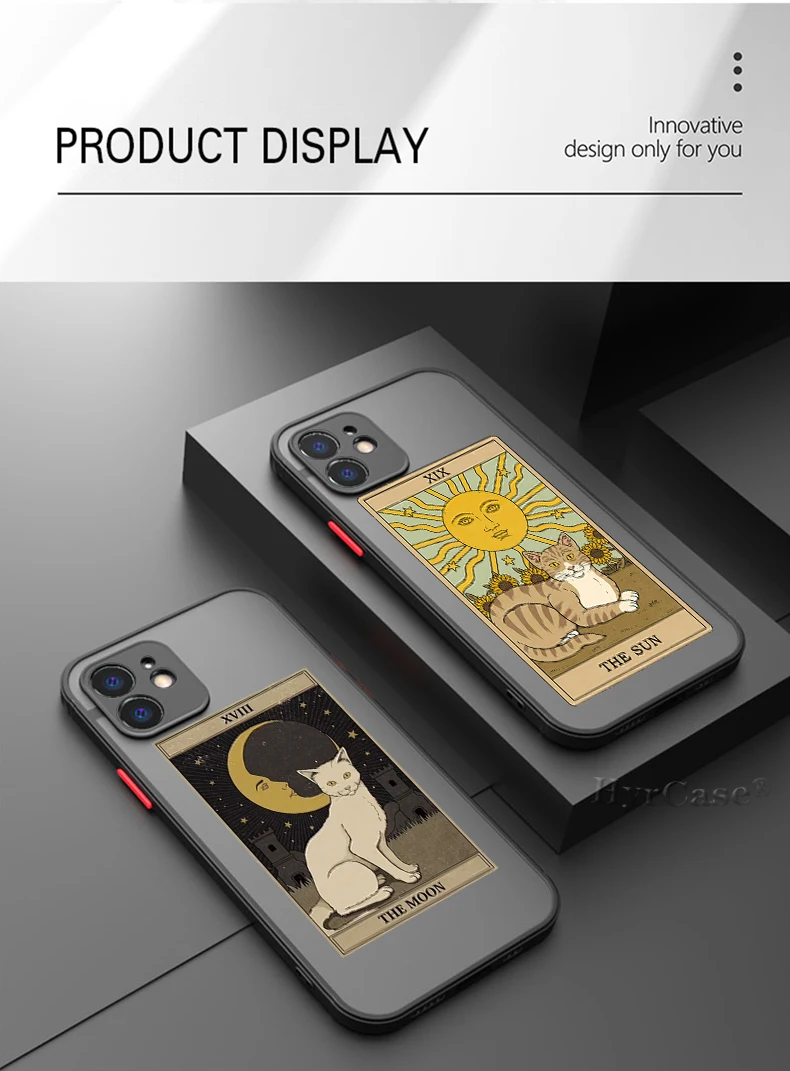 Comprar Funda trasera dura mate para iPhone 13, 12, 11, 14 Pro Max Mini, 15 Plus, 15PROMAX, Brujas, Luna, Tarot, tótem misterioso, gato, parachoques suave