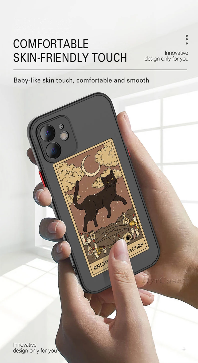 Comprar Funda trasera dura mate para iPhone 13, 12, 11, 14 Pro Max, Mini, XS, XR, 14Plus, Brujas, Luna, Tarot, tótem misterioso, gato, parachoques suave