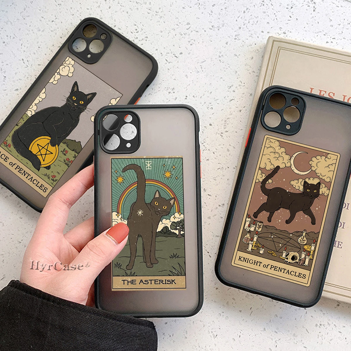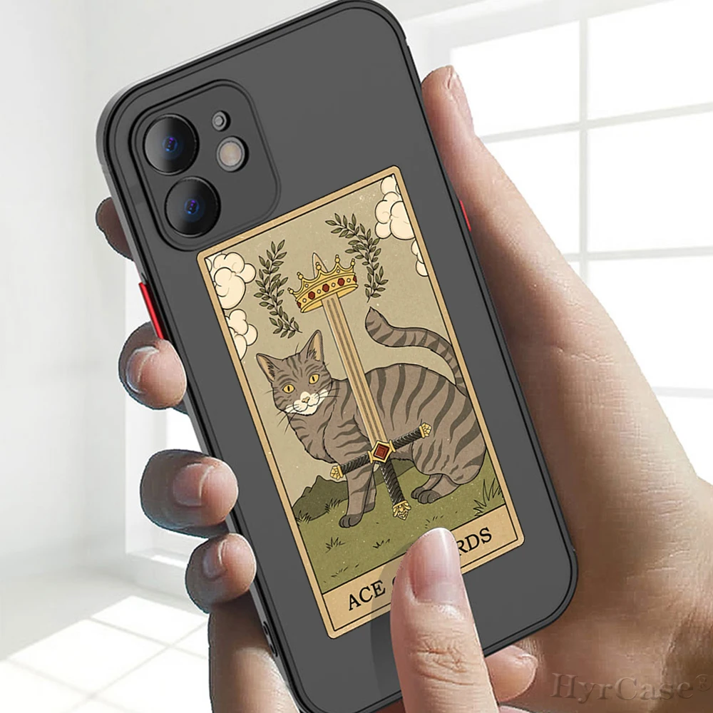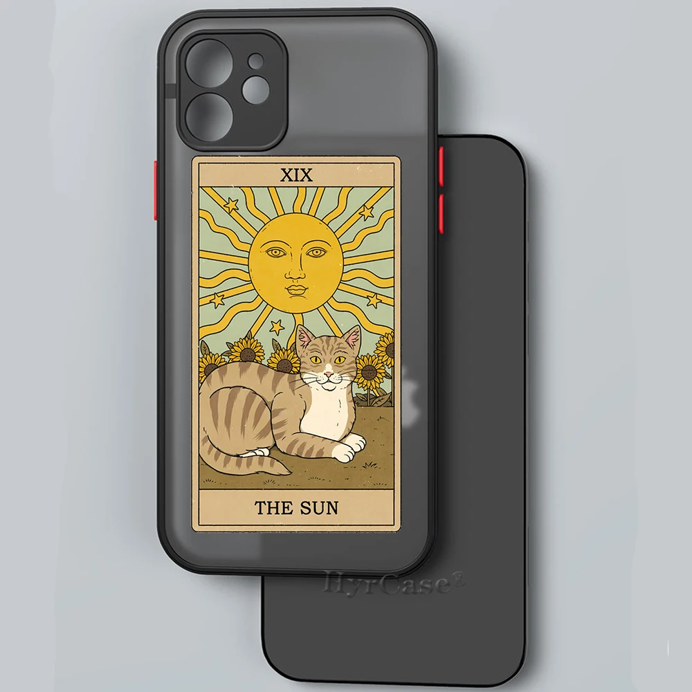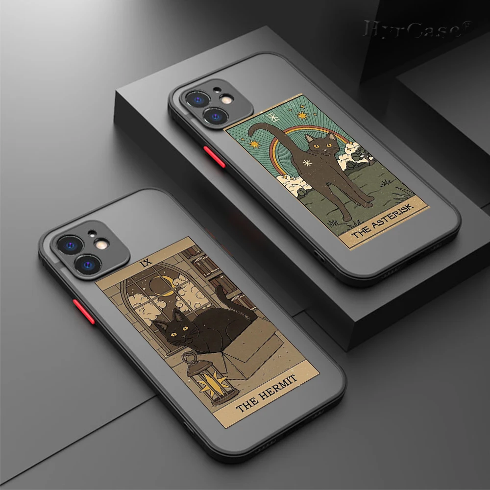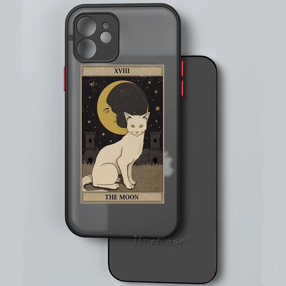 Comprar Funda trasera dura mate para iPhone 13, 12, 11, 14 Pro Max, Mini, XS, XR, 14Plus, Brujas, Luna, Tarot, tótem misterioso, gato, parachoques suave