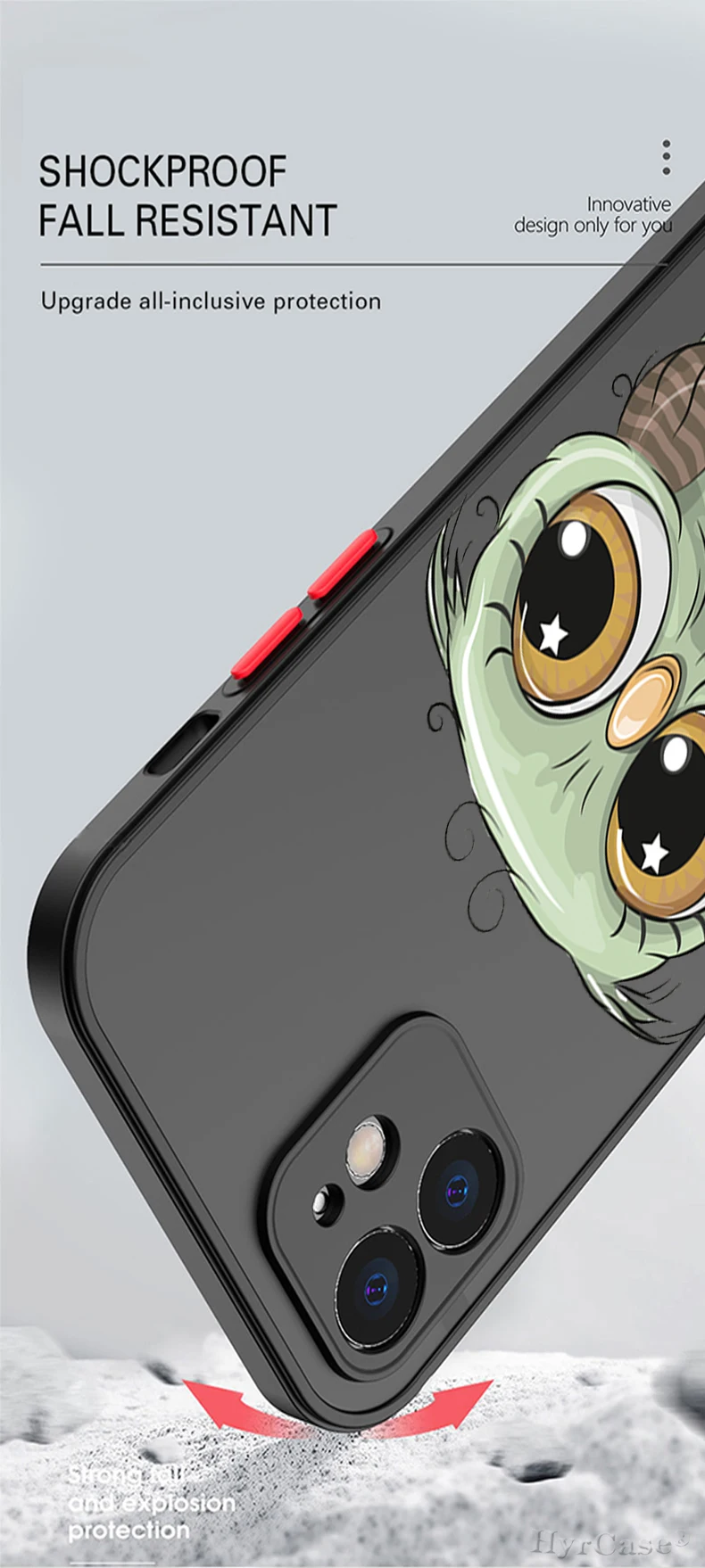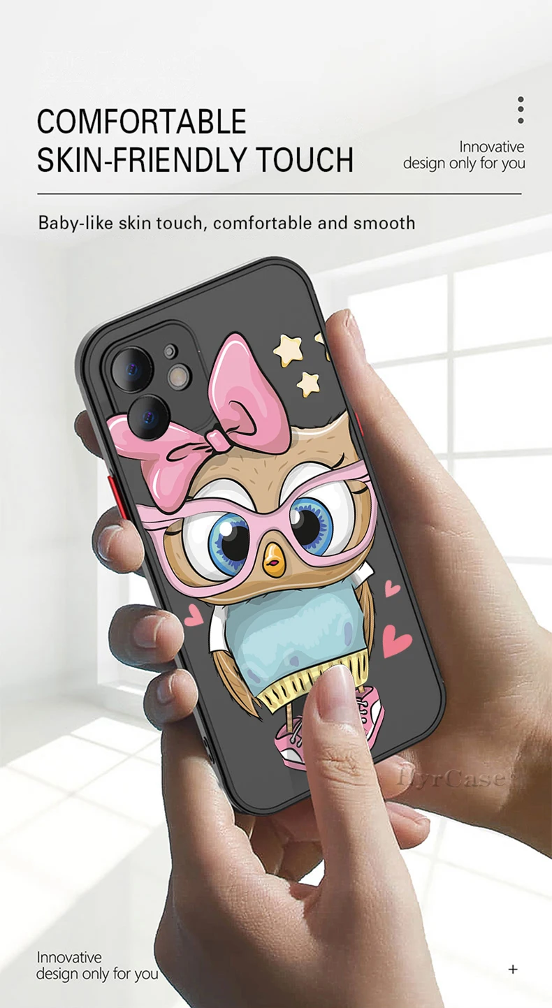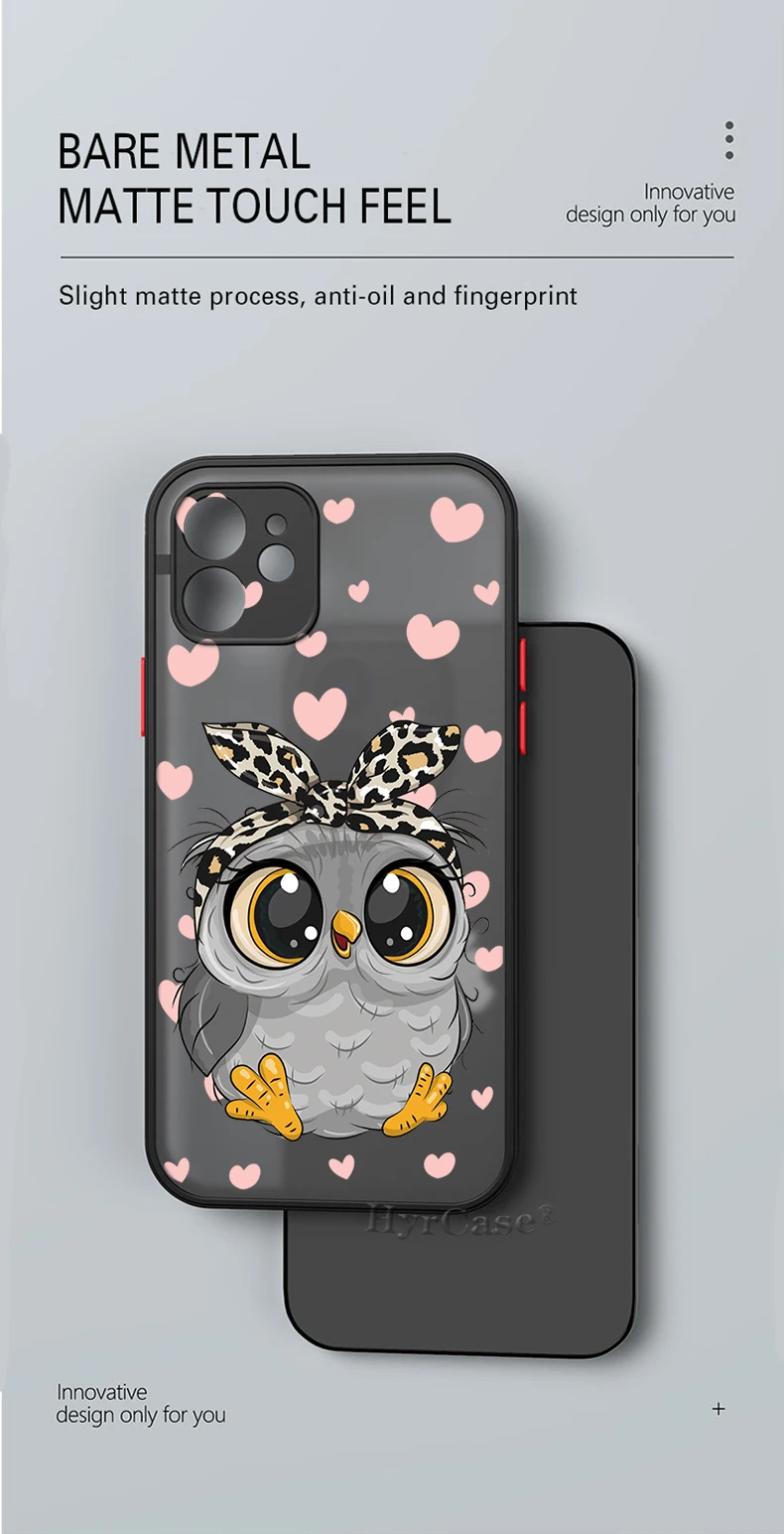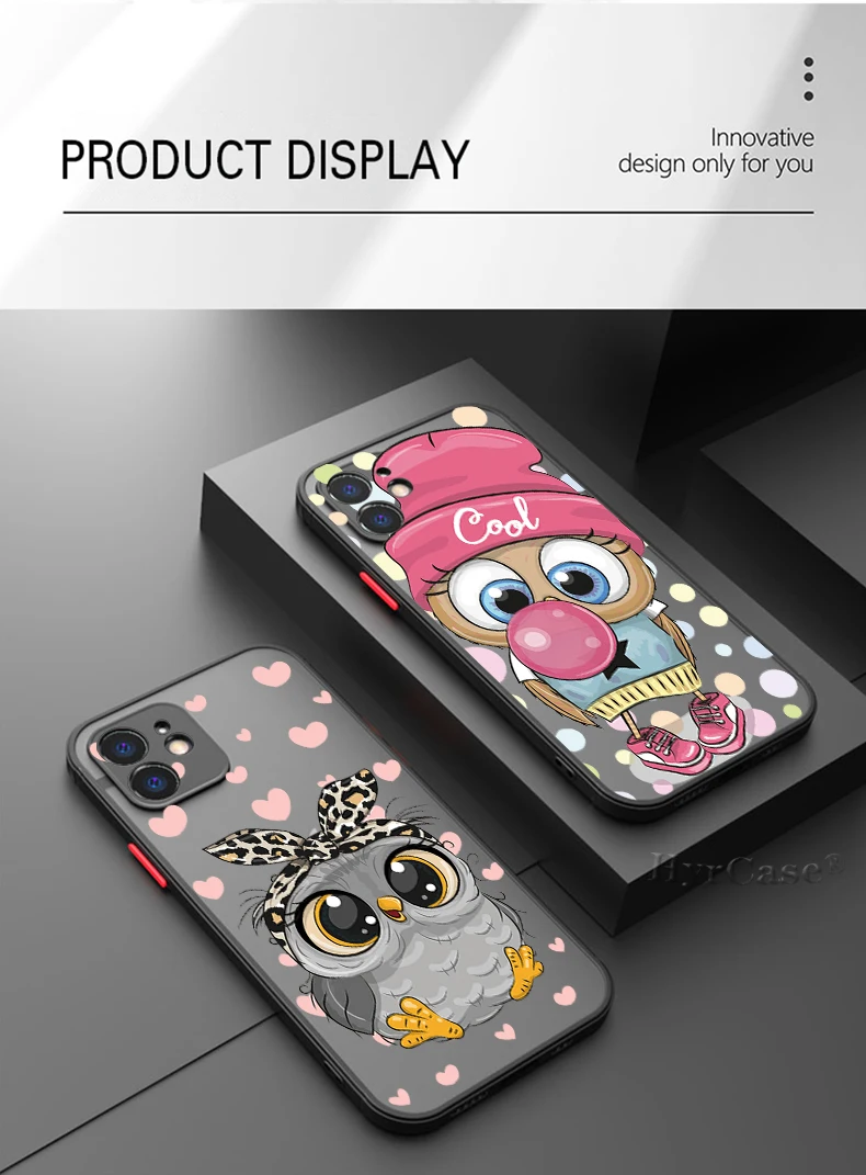 Comprar Funda trasera dura mate para iPhone 13, 12, 11, 14 Pro Max, Mini, 15 Plus, 15Pro Max, regalos para chicas de dibujos animados, Bumper suave para amantes del búho