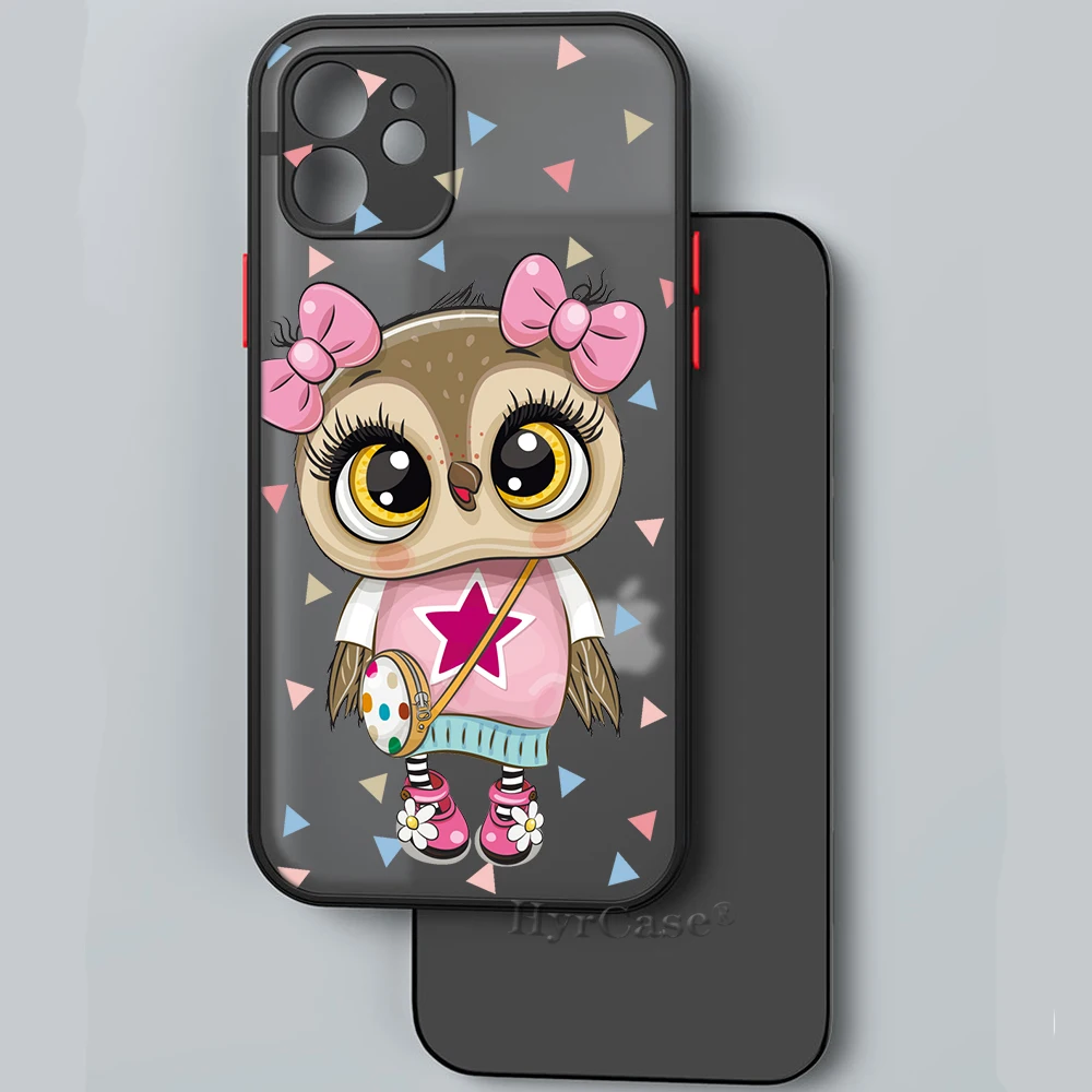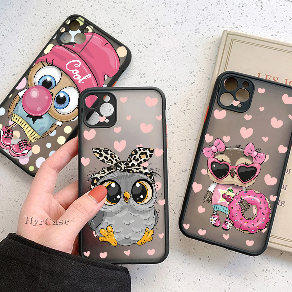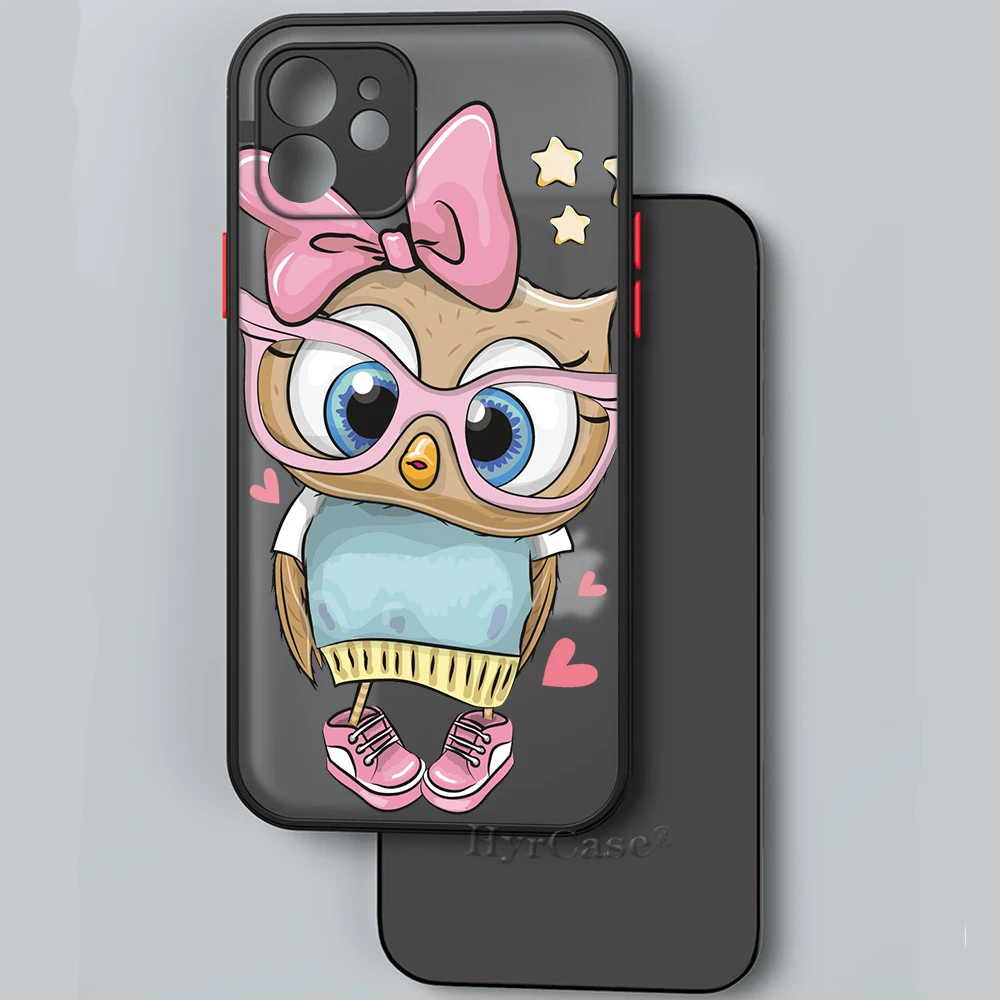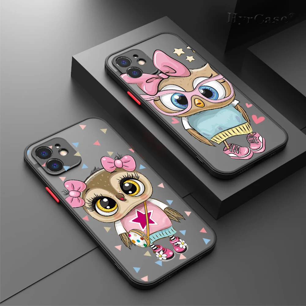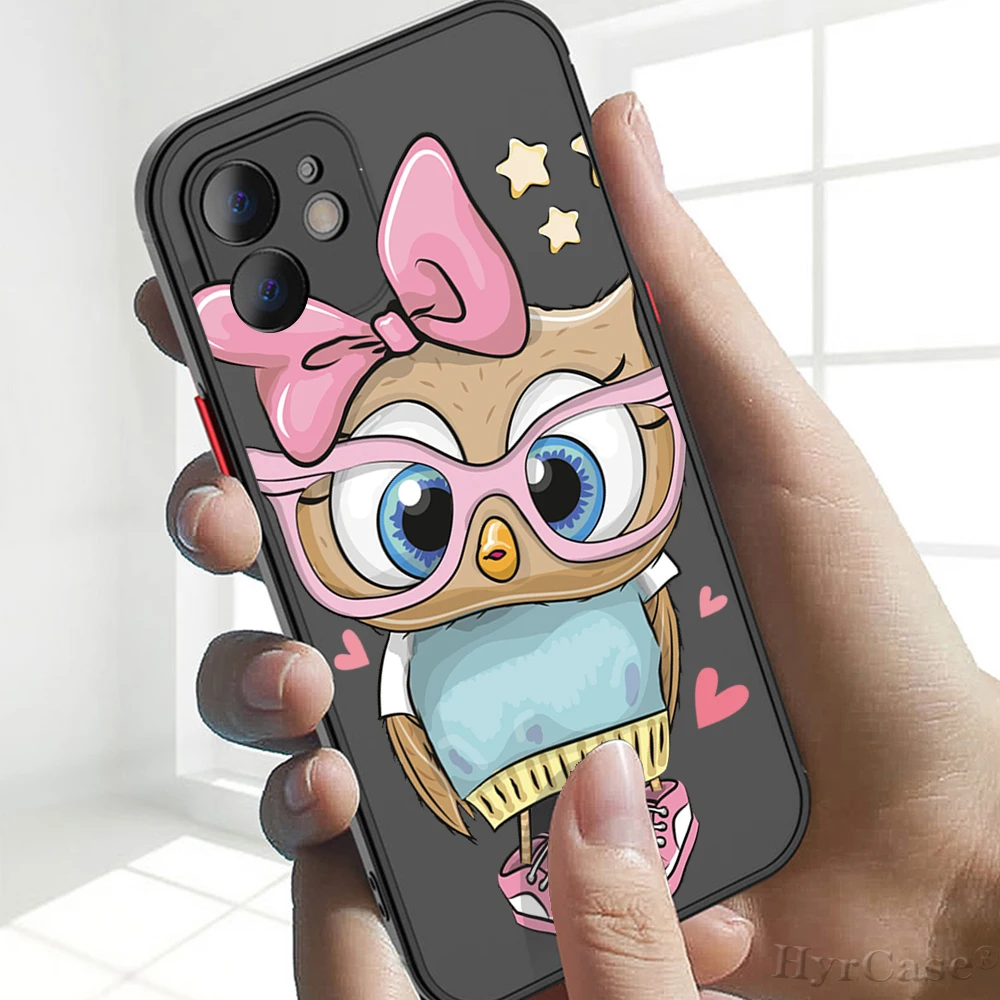 Comprar Funda trasera dura mate para iPhone 13, 12, 11, 14 Pro Max, Mini, 15 Plus, 15Pro Max, regalos para chicas de dibujos animados, Bumper suave para amantes del búho