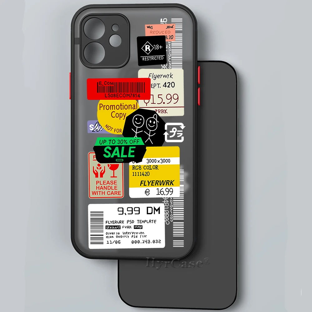 Comprar Funda trasera dura mate para iPhone 13, 12, 11, 14 Pro Max Mini, 15 Plus, 15Pro Max, etiqueta de código de barras Retro, arte Popular, parachoques suave
