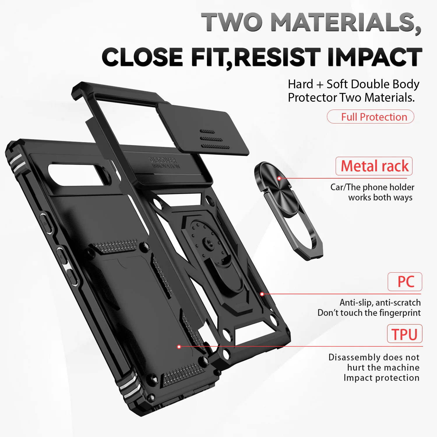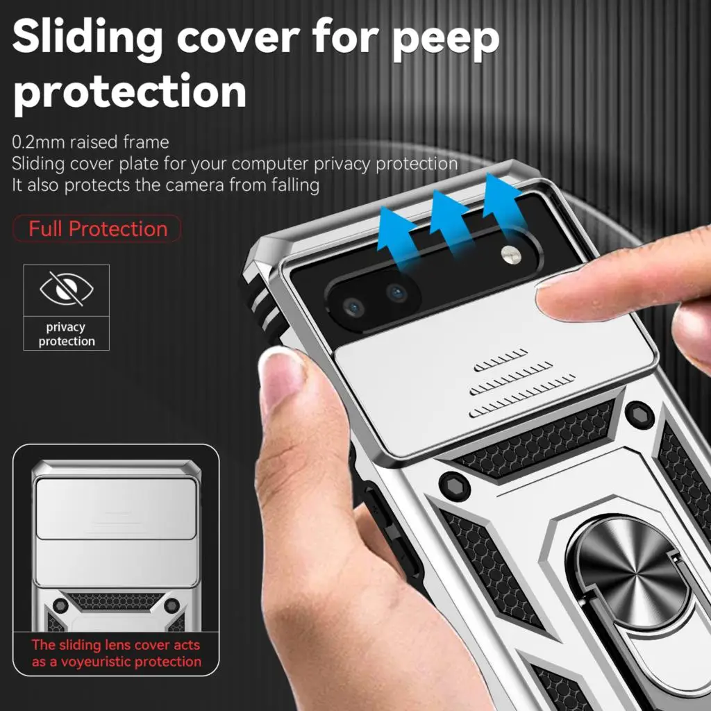 Comprar Funda trasera para Google Pixel 6A, soporte de anillo magnético, lente deslizante