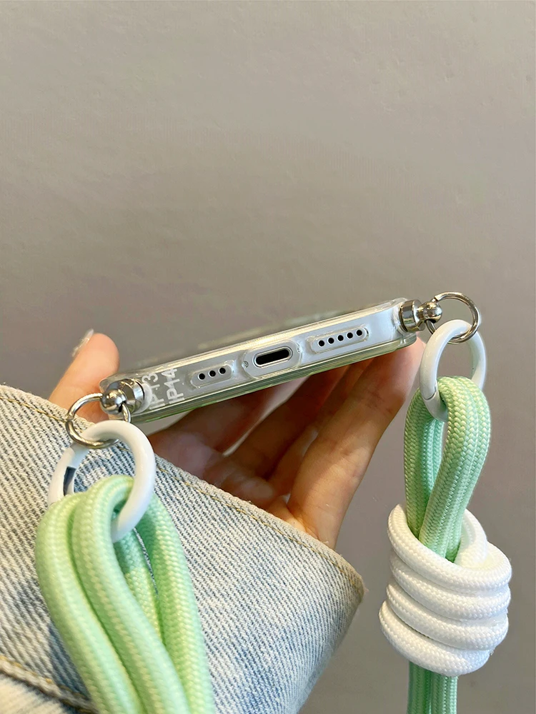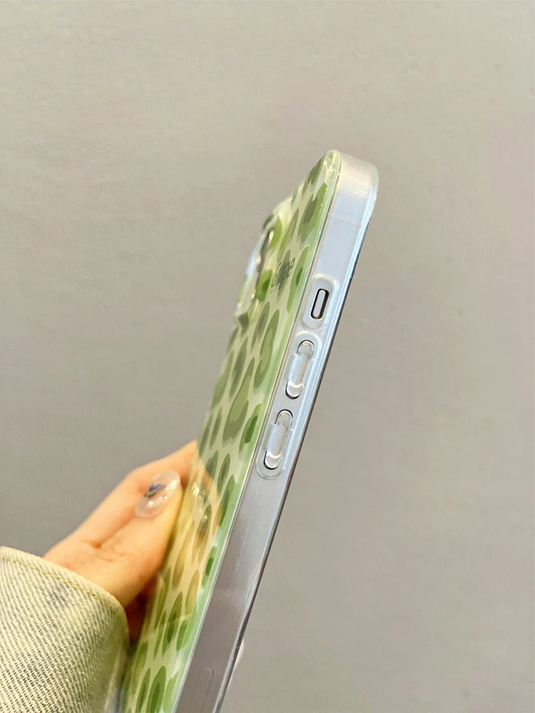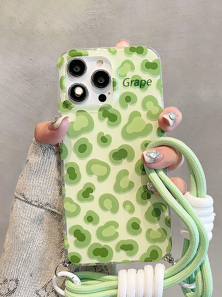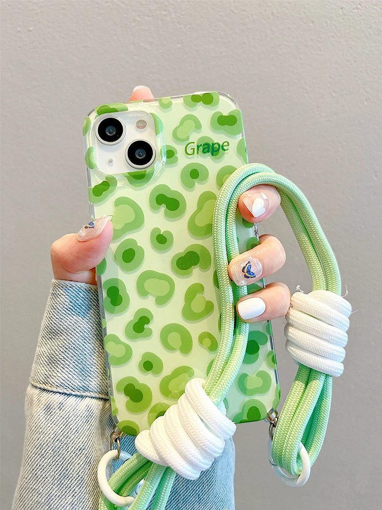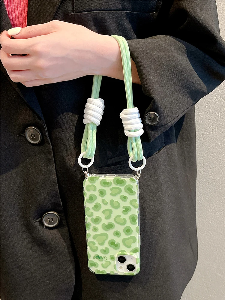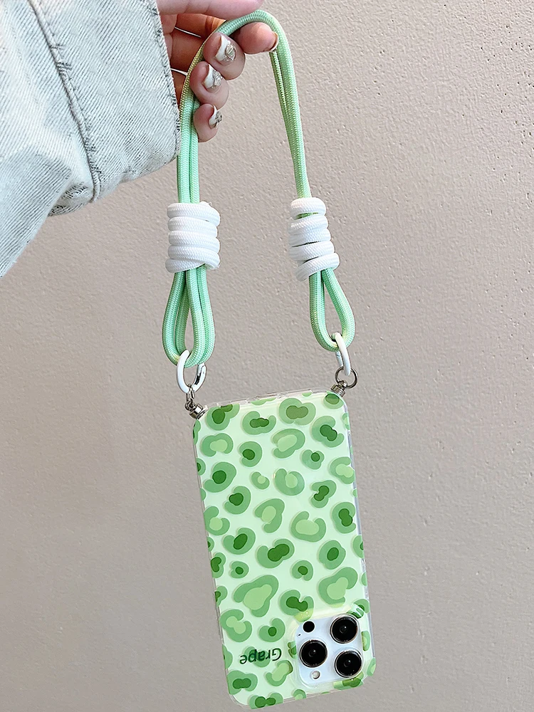 Funda trasera de leopardo rosa y verde con correa de mano para iPhone 14 13 11 12 Pro Max, Funda para chica con cadena de muñeca encantadora, Funda