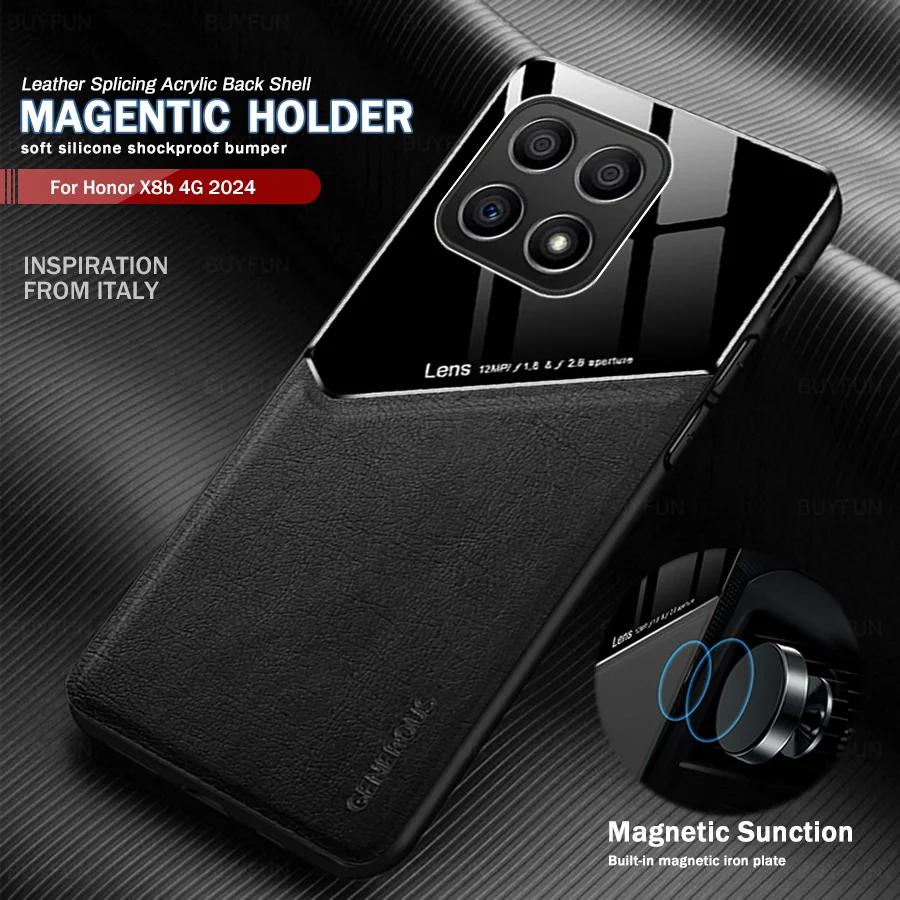 Funda trasera magnética de cuero de lujo para Honor X8b 4G funda TPU parachoques suave a prueba de golpes Coque en HonorX8b Honar X 8B 4G 6,7"