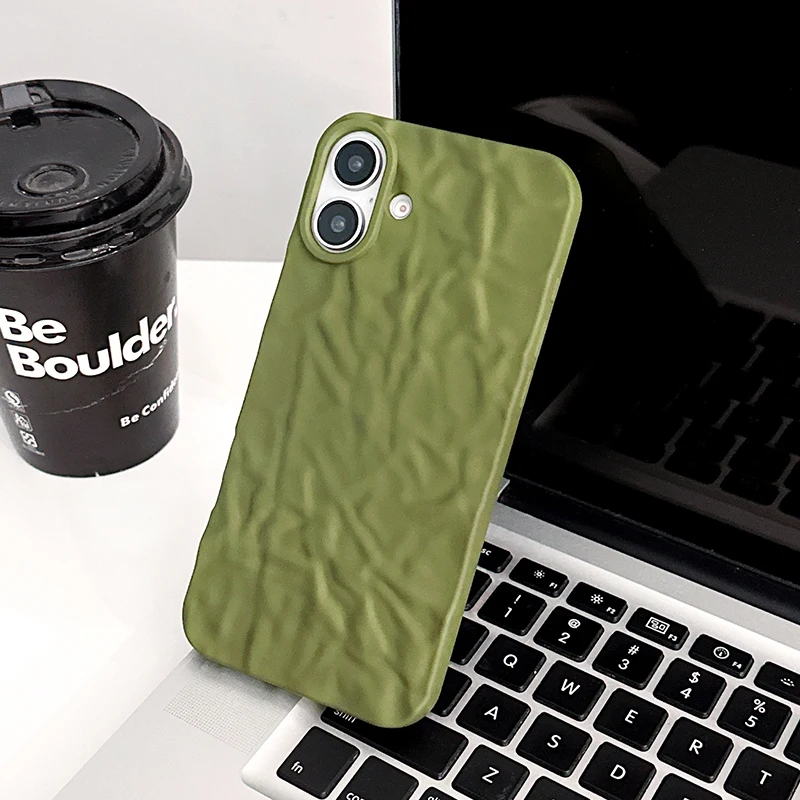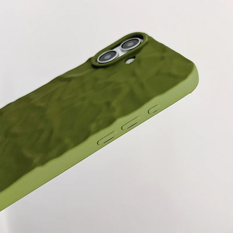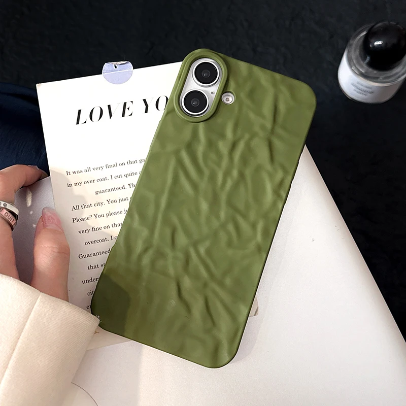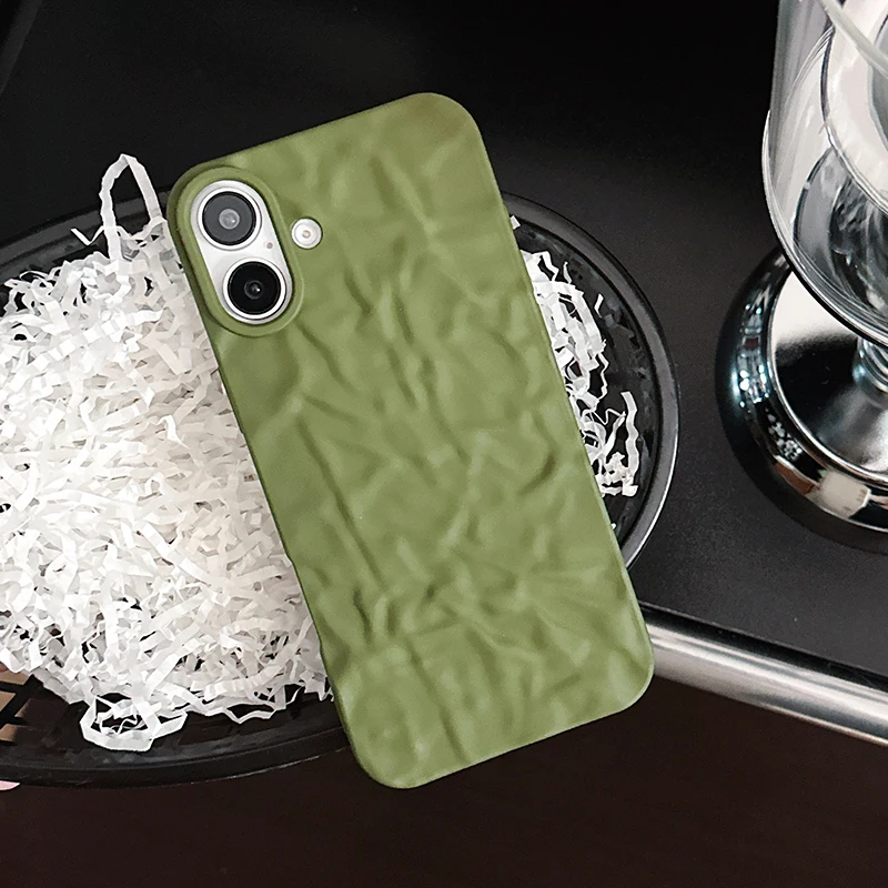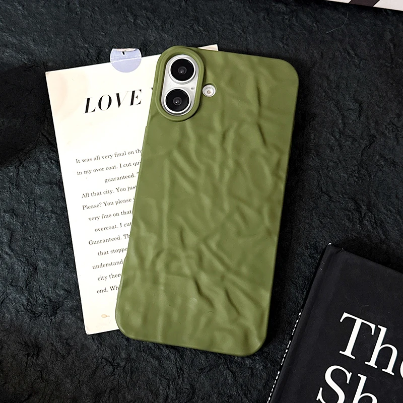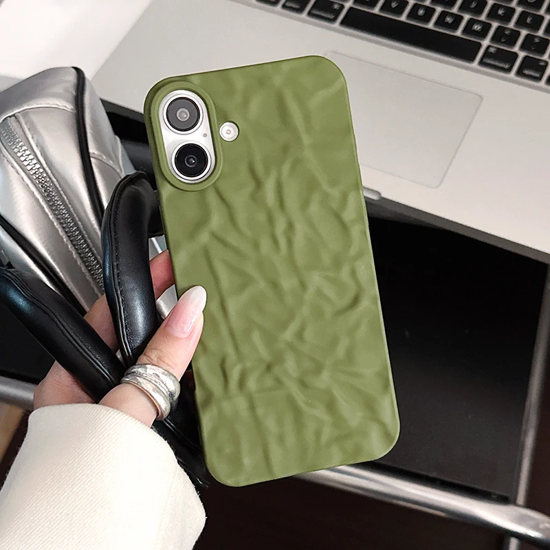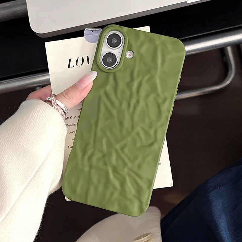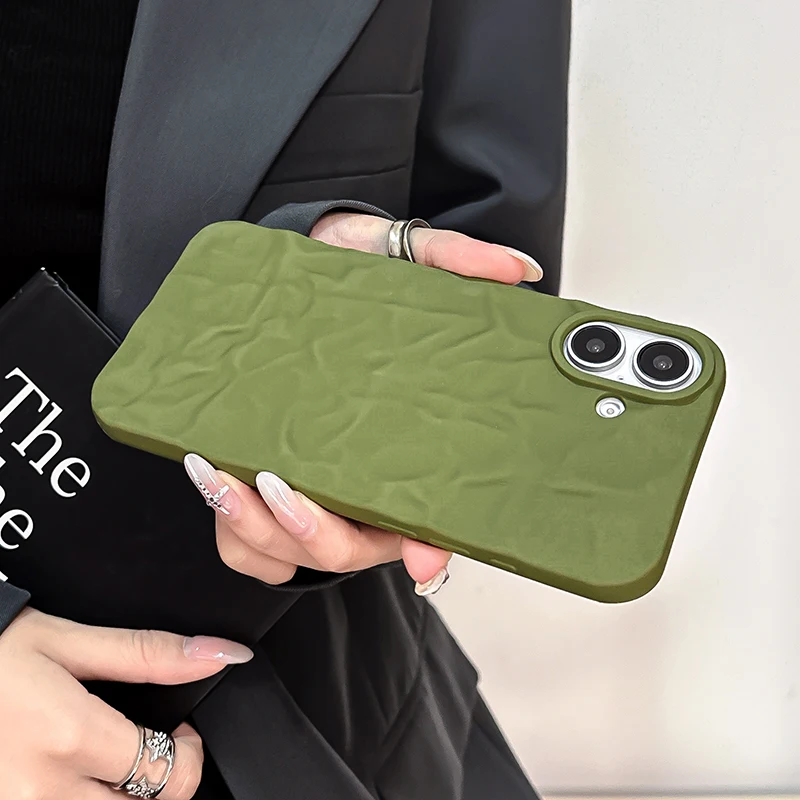 Comprar Funda trasera mate con patrón arrugado verde militar para iPhone 17 Air 16 15 14 13 12 11 Pro Max 16 Plus, funda de teléfono suave de TPU a prueba de golpes