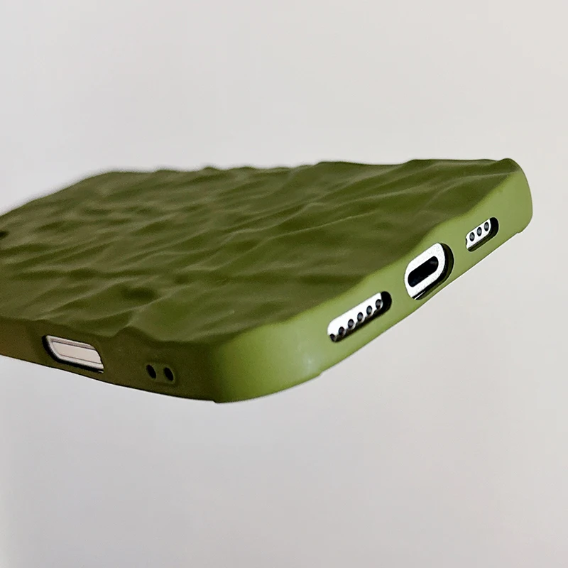 Army Green Wrinkled Pattern Matte Back Case For iPhone 16 15 14 13 12 11 Pro Max 16 Plus Soft TPU Shockproof Phone Cover