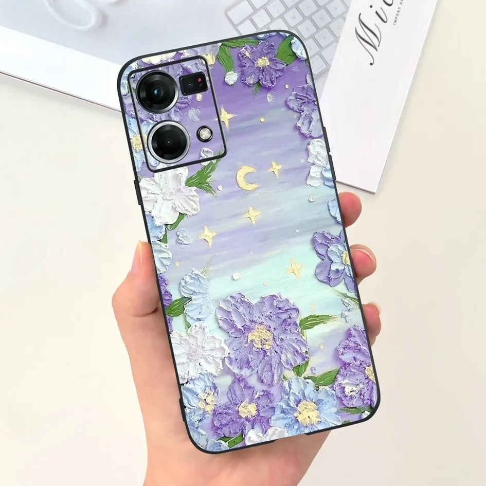 Para OPPO Reno 7 4G funda CPH2363 contraportada Popular flor suave Delgada funda de silicona para OPPO Reno 8 4G CPH2457 F21 Pro Coque