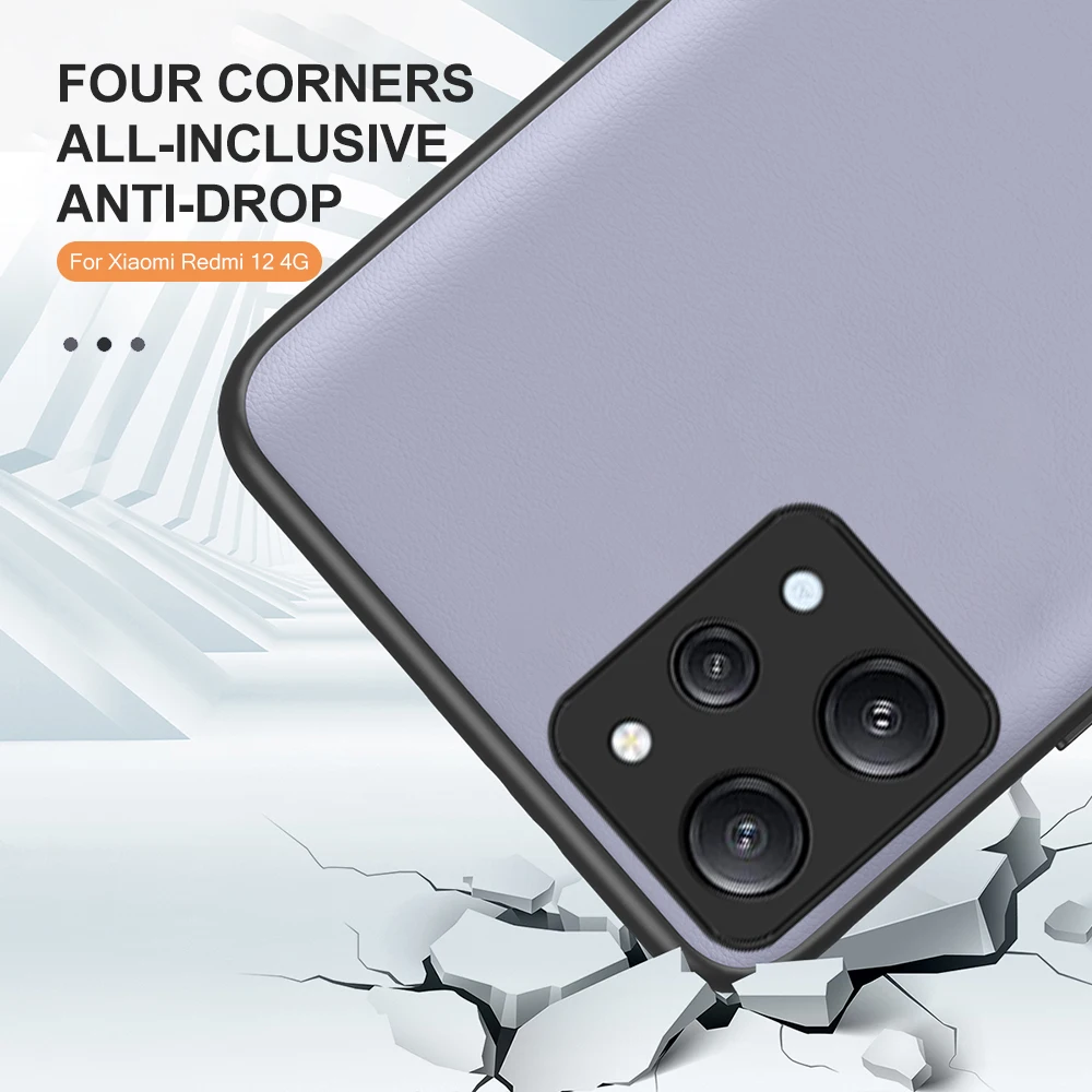 Funda trasera de cuero de piel lisa para Xiaomi Redmi 12 4G, funda de silicona suave a prueba de golpes, Coque Redmi12 Redmy Readmi 12 4G, Fundas