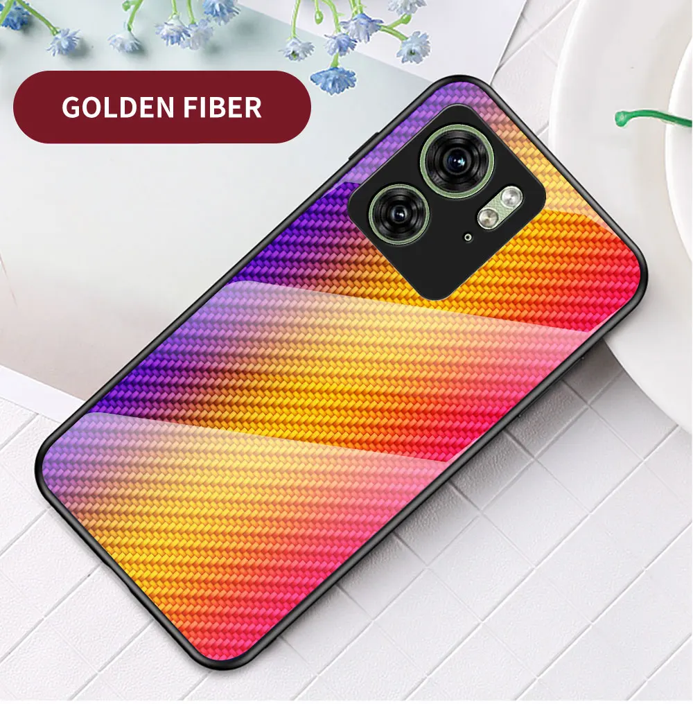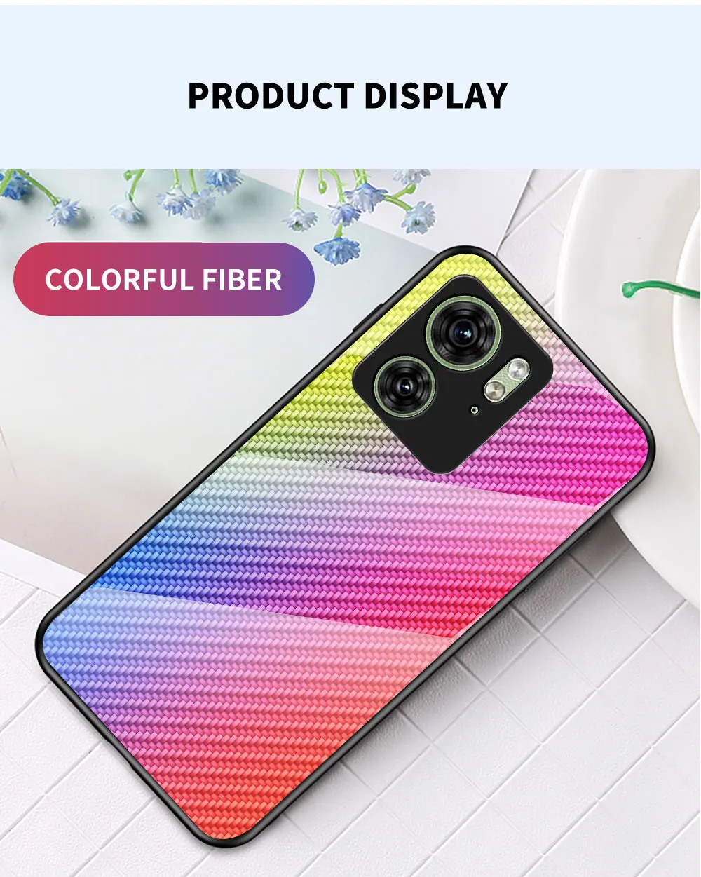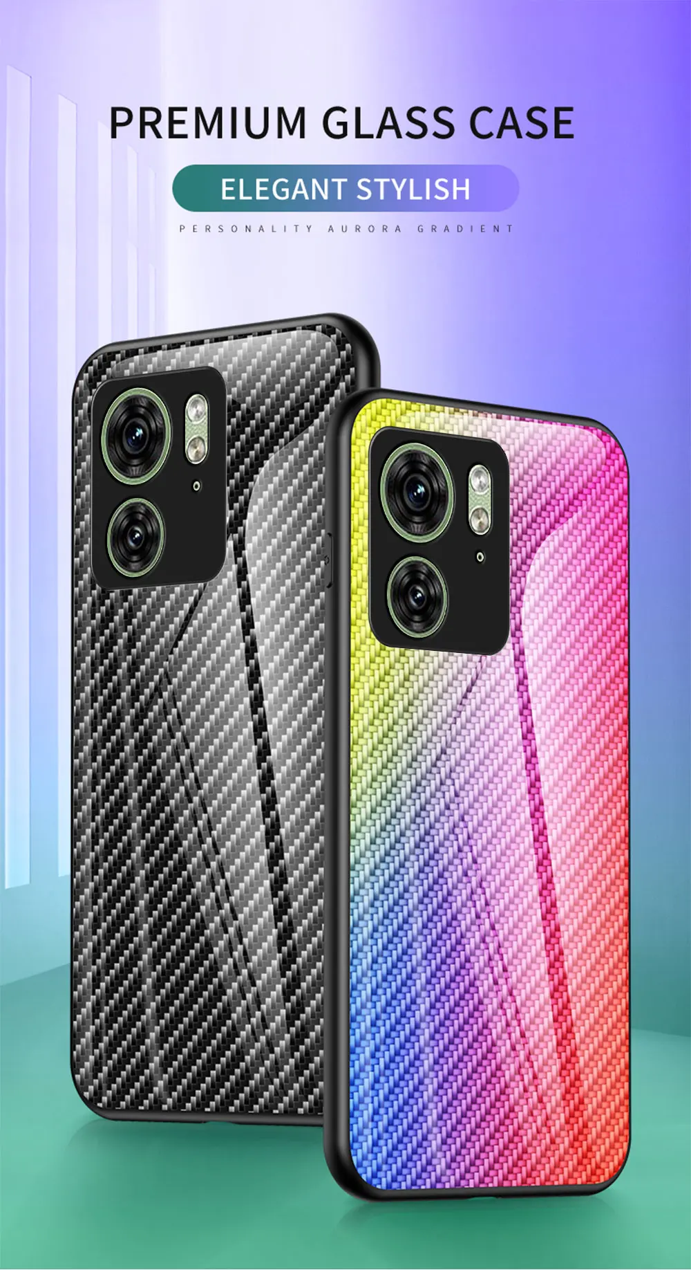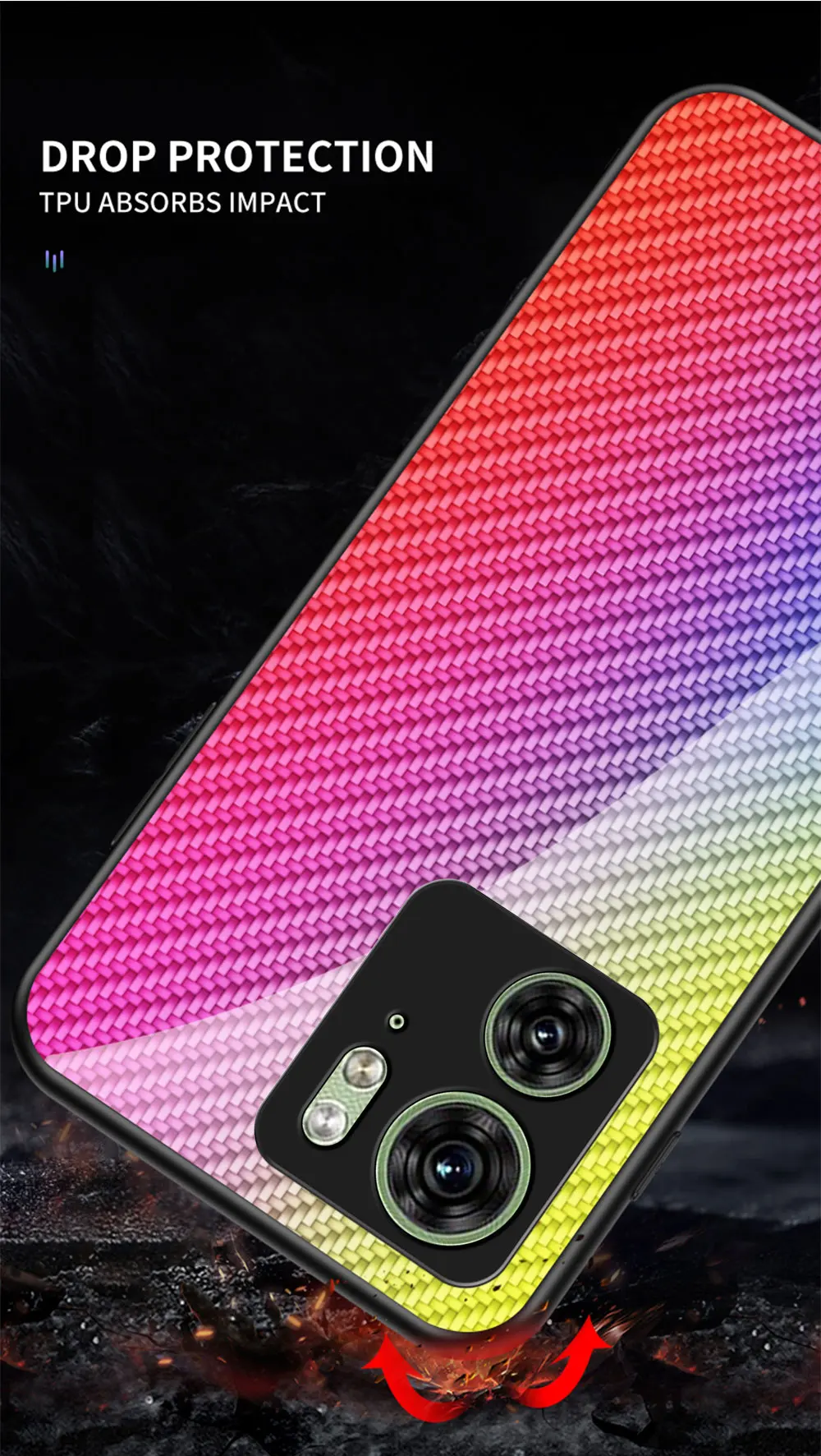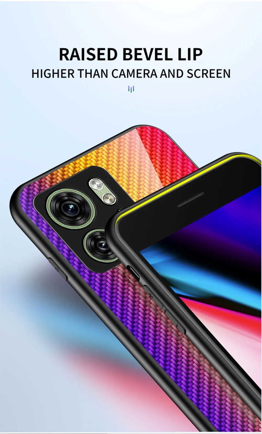 Para Motorola Moto Edge 40 Neo 30 20 funda dura de vidrio templado gradiente de fibra de carbono funda protectora trasera para Moto Edge 30 Ultra