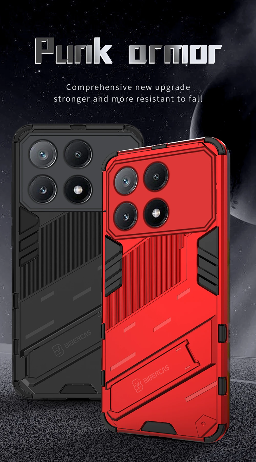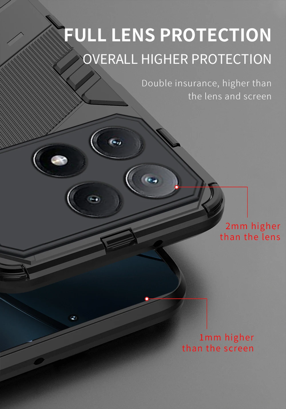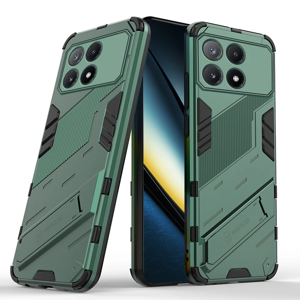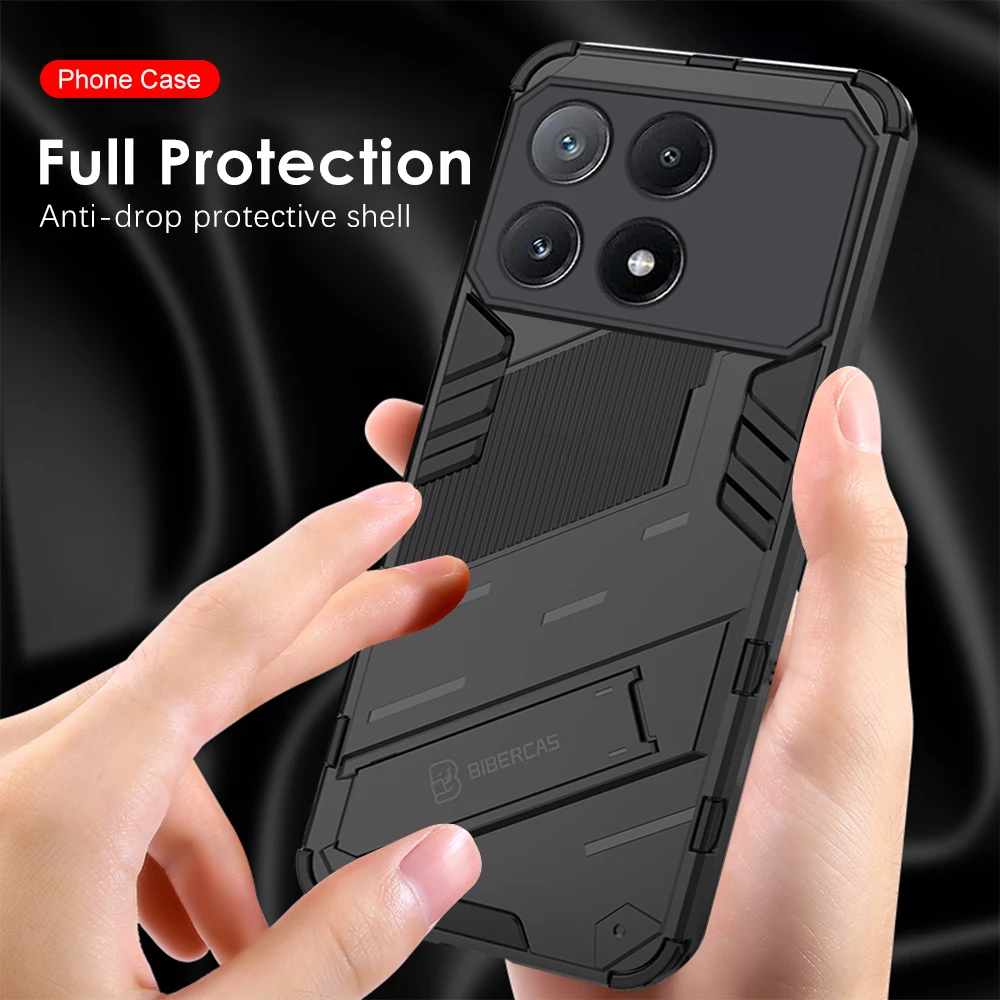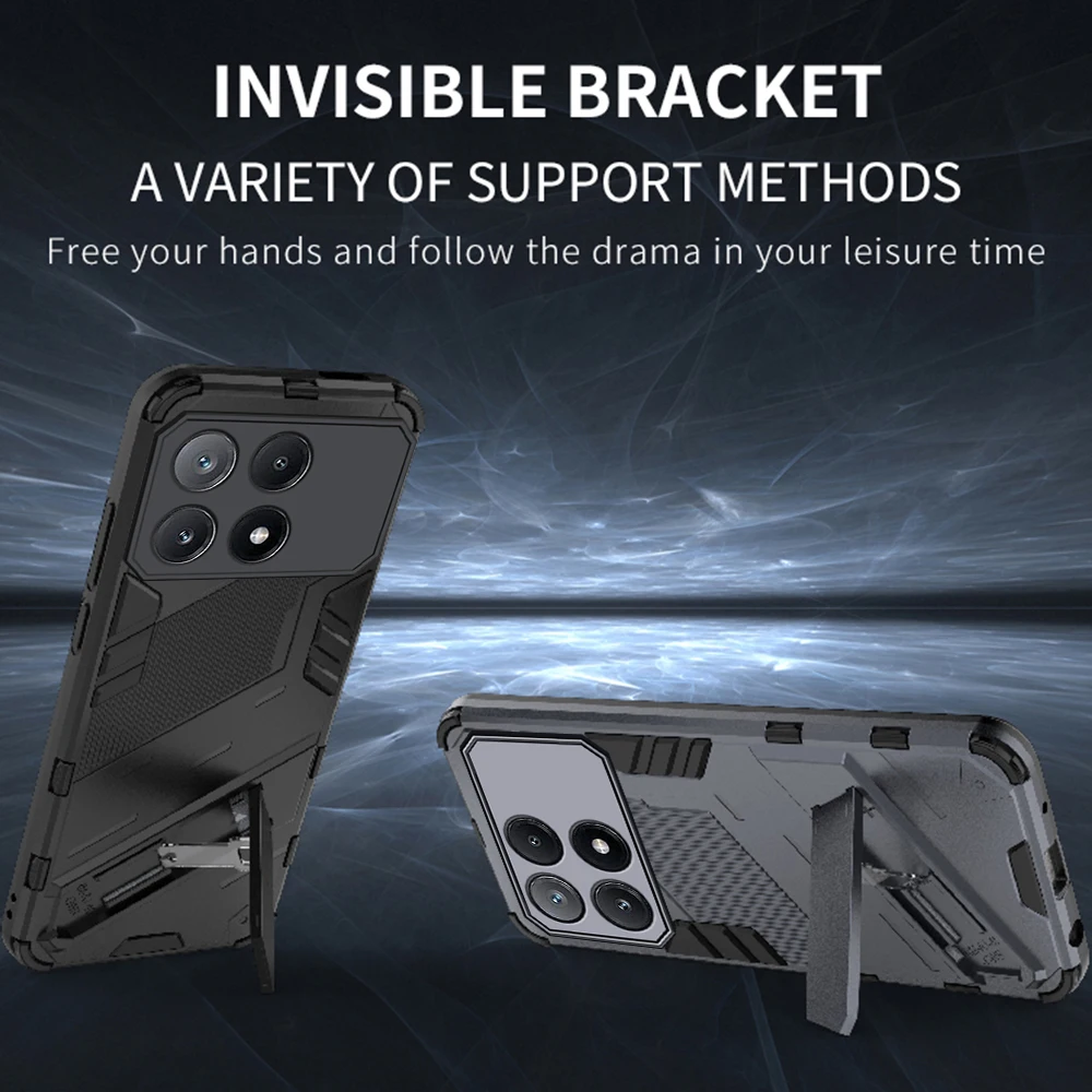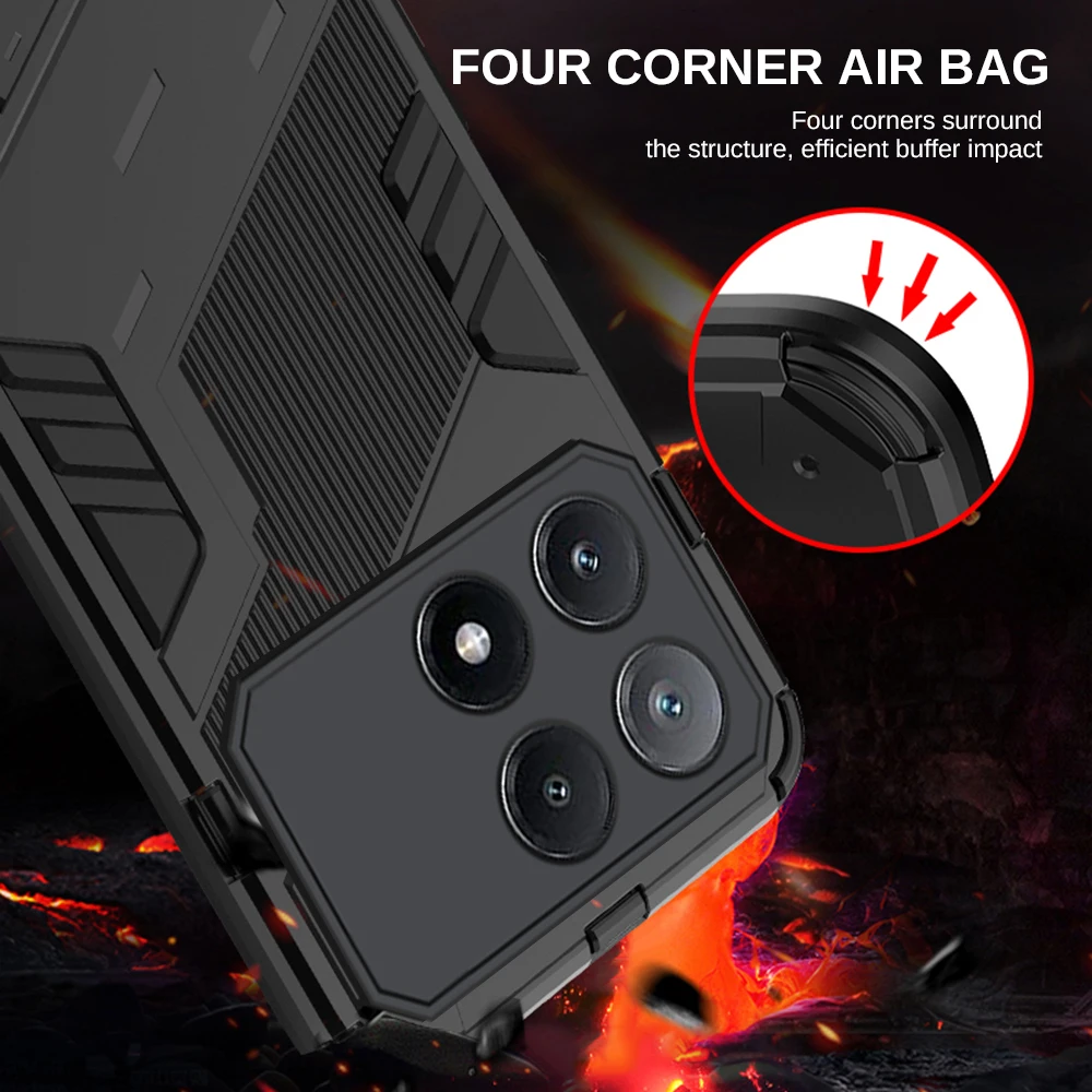 Funda trasera Punk Armor a prueba de golpes para Xiaomi Poco F6 Pro Little Poko X6 X6Pro F6Pro PocoF6 PocoX6 5G soporte oculto PC cubierta Capas
