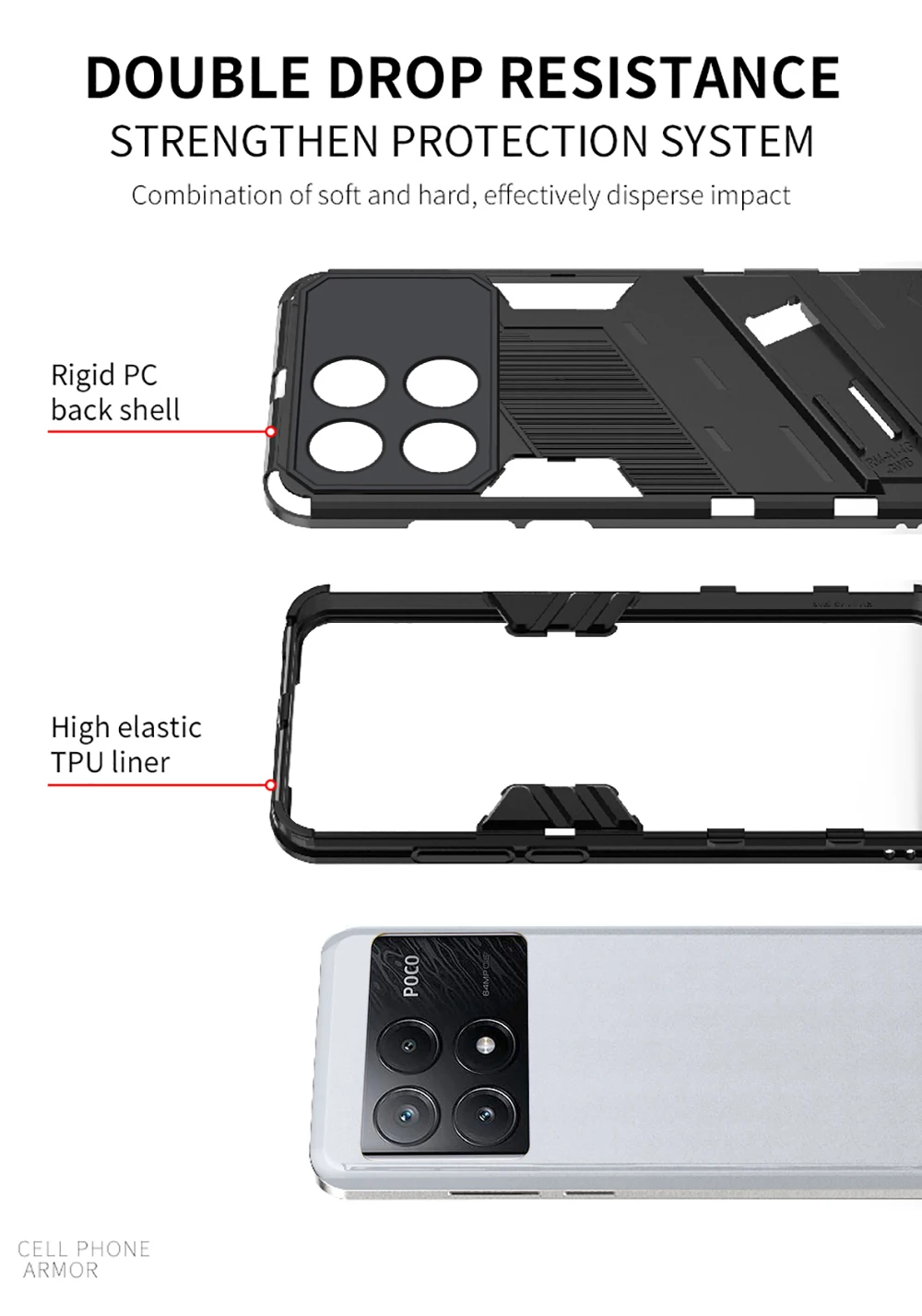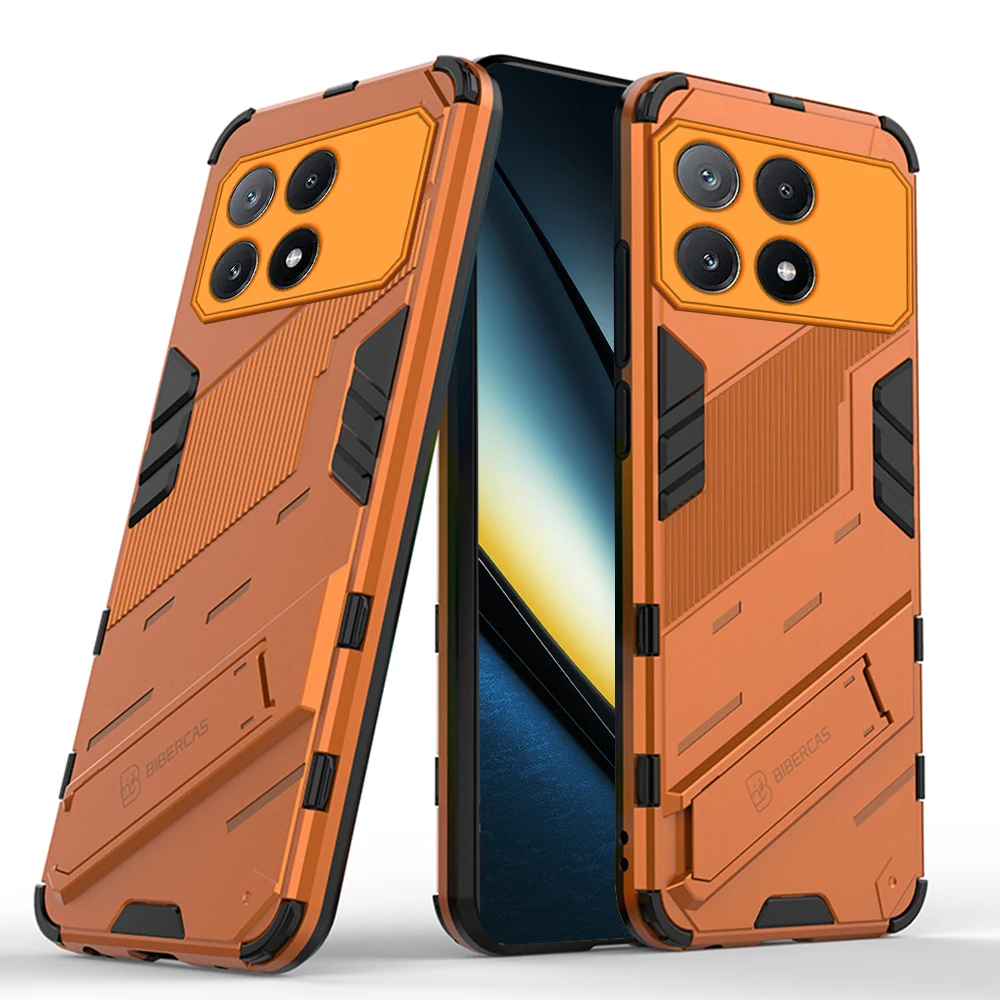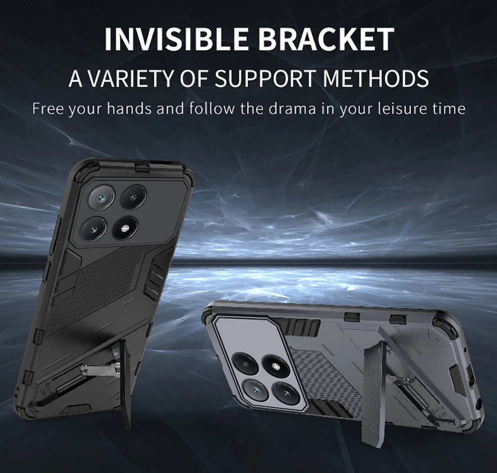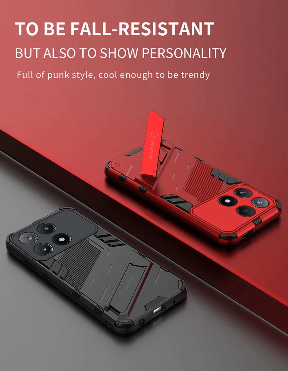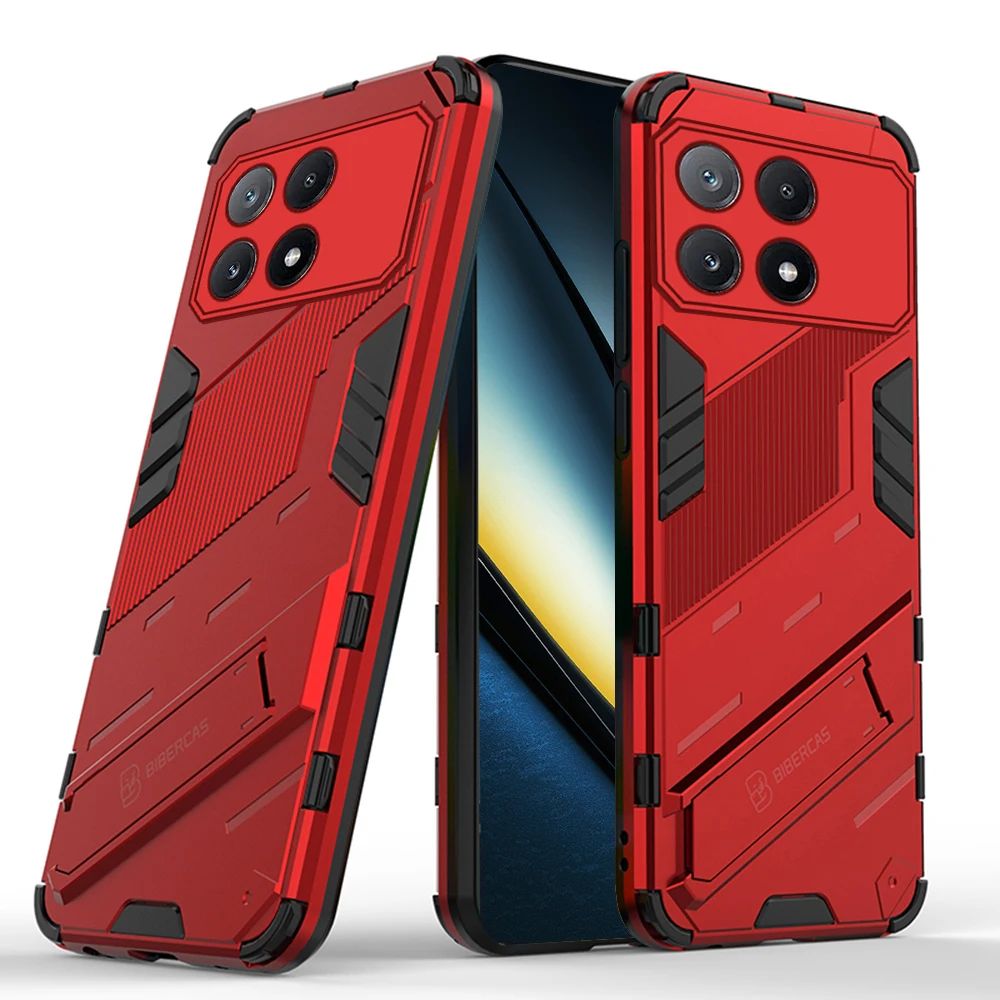 Funda trasera Punk Armor a prueba de golpes para Xiaomi Poco F6 Pro Little Poko X6 X6Pro F6Pro PocoF6 PocoX6 5G soporte oculto PC cubierta Capas