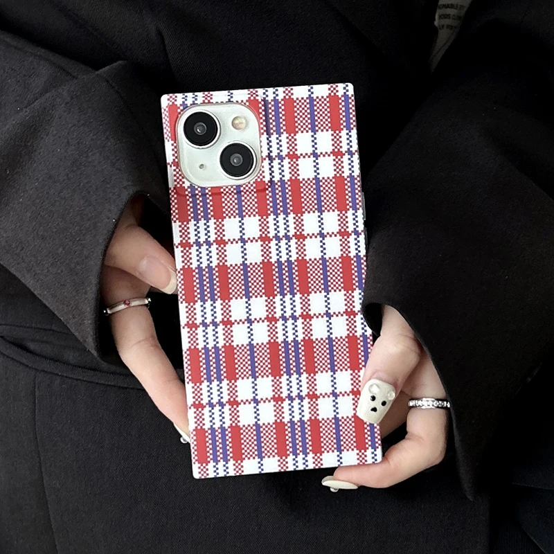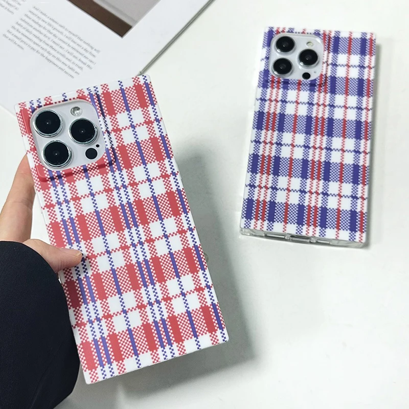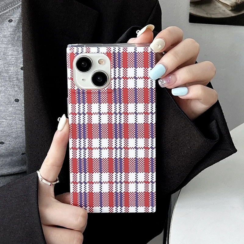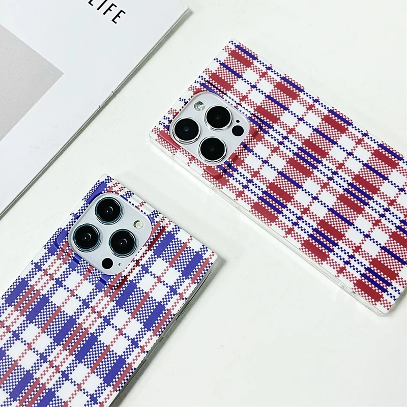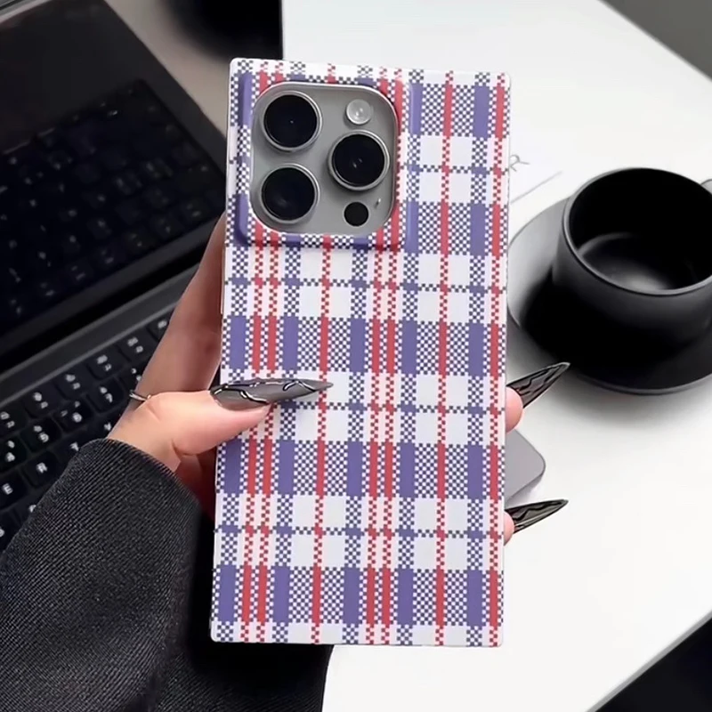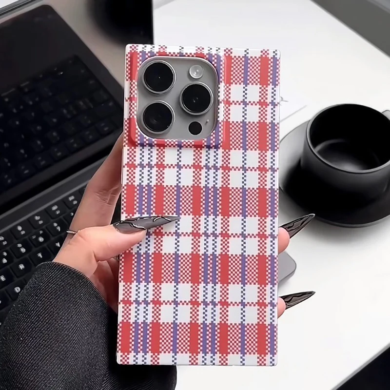 Fashion Woven Bag Grid Pattern Rectangle Back Case For iPhone 16 Pro Max 15 14 13 12 Pro Max Phone Cover