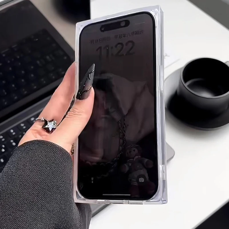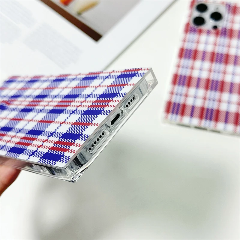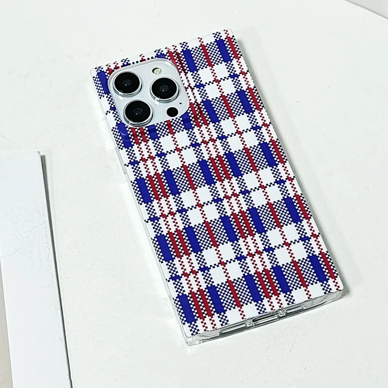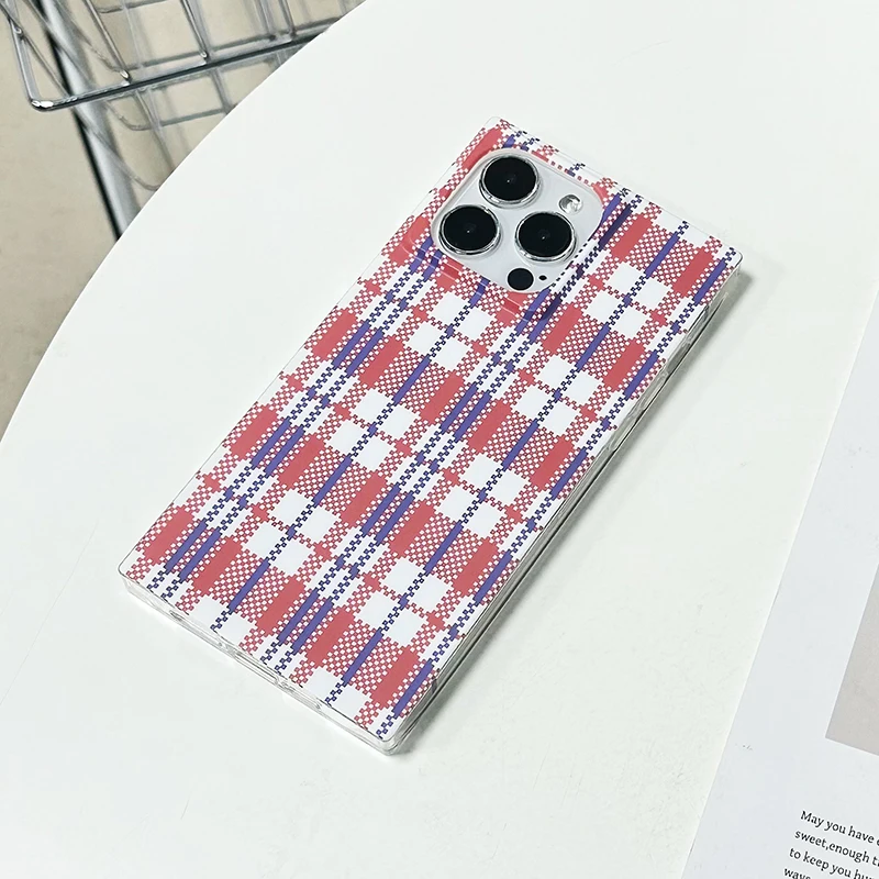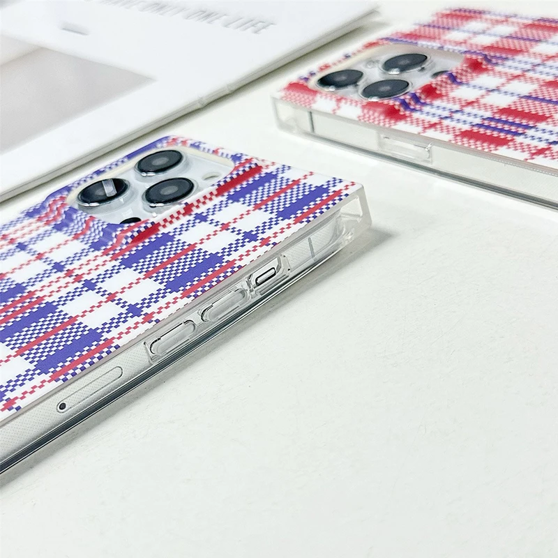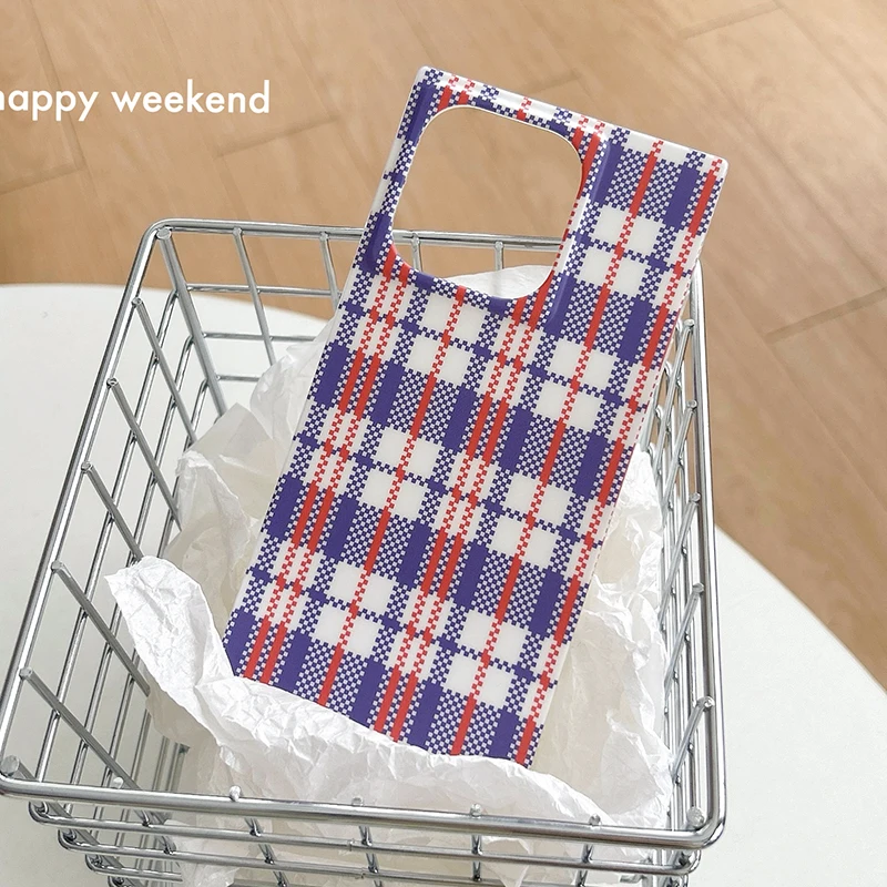 Comprar Funda trasera rectangular con patrón de rejilla y bolsa tejida a la moda para iPhone 16 Pro Max 15 14 13 12 Pro Max