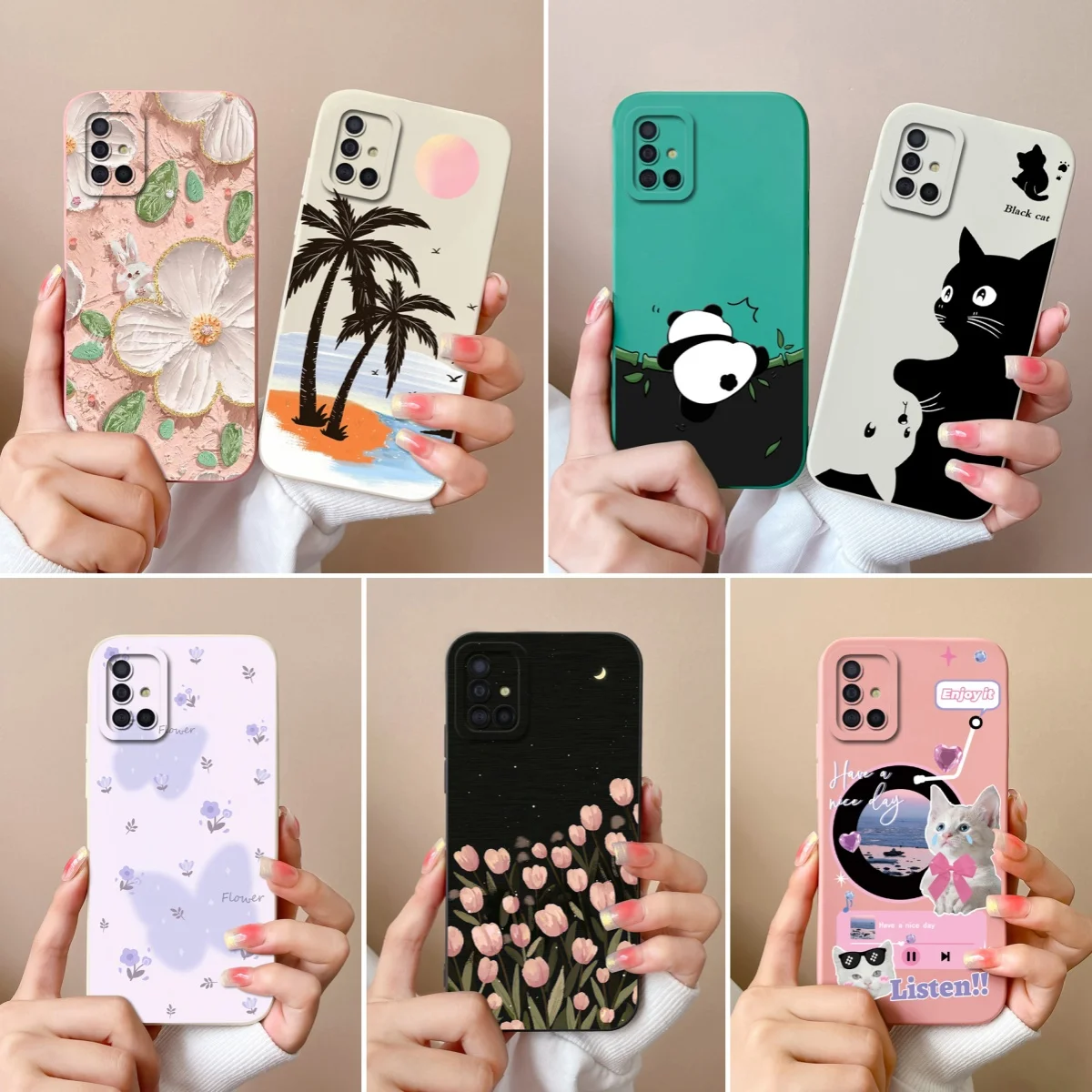 Comprar Funda trasera para Samsung A51, A71, A31, protección de cámara, silicona suave, Gato Negro