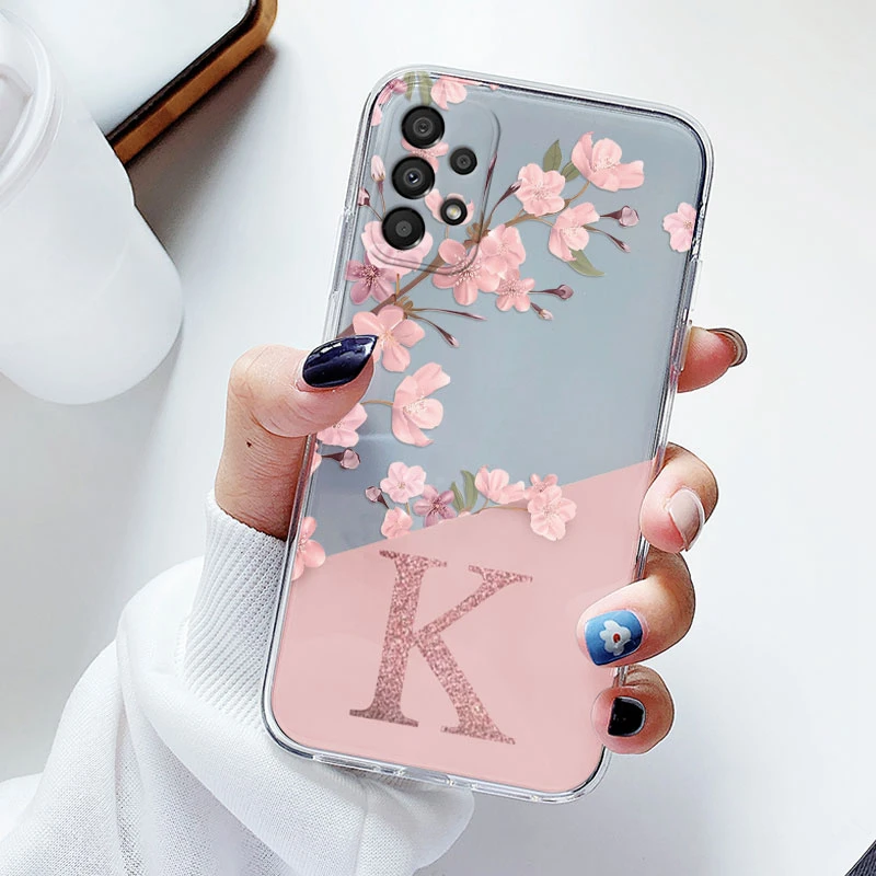Comprar Funda trasera para Samsung A53 A33, carcasa suave y delgada de lujo con letras de A-Z, a prueba de golpes, bolsas transparentes, parachoques para Samsung Galaxy A73 5G